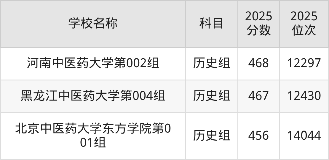 黑龙江高考历史组共有4所中医药大学在450到500分之间录取,包含江西中医药大学、河南中医药大学、黑龙江中医药大学、北京中医药大学东方学院。
