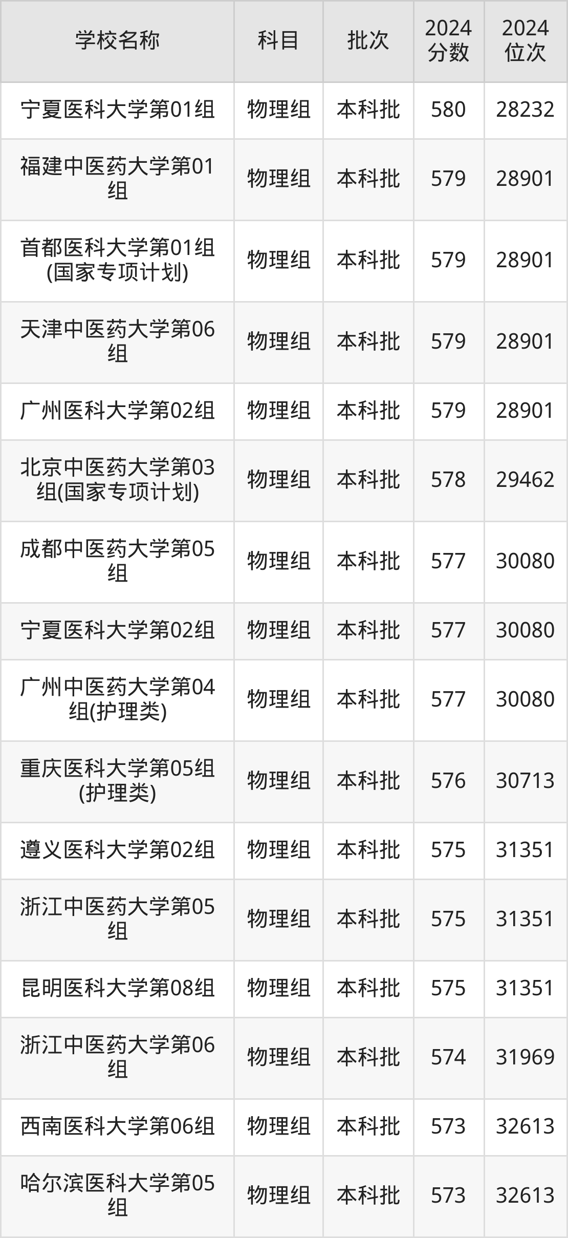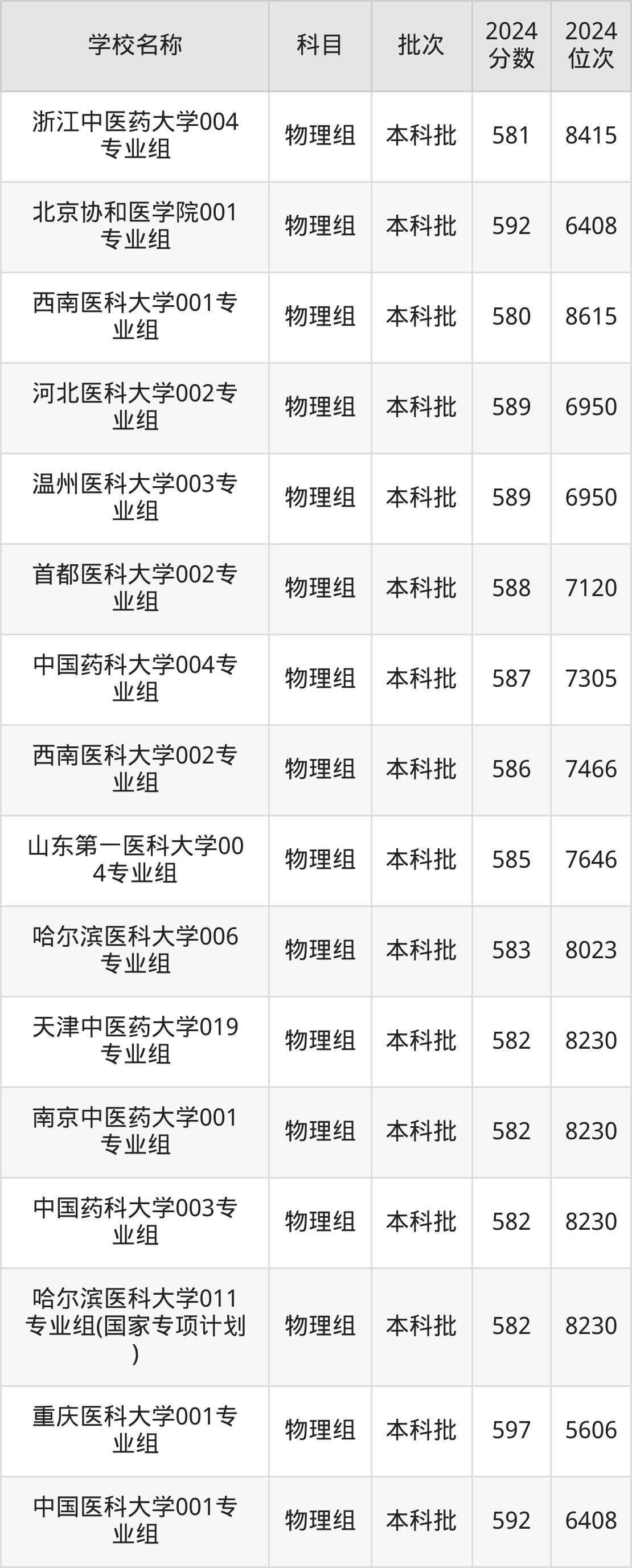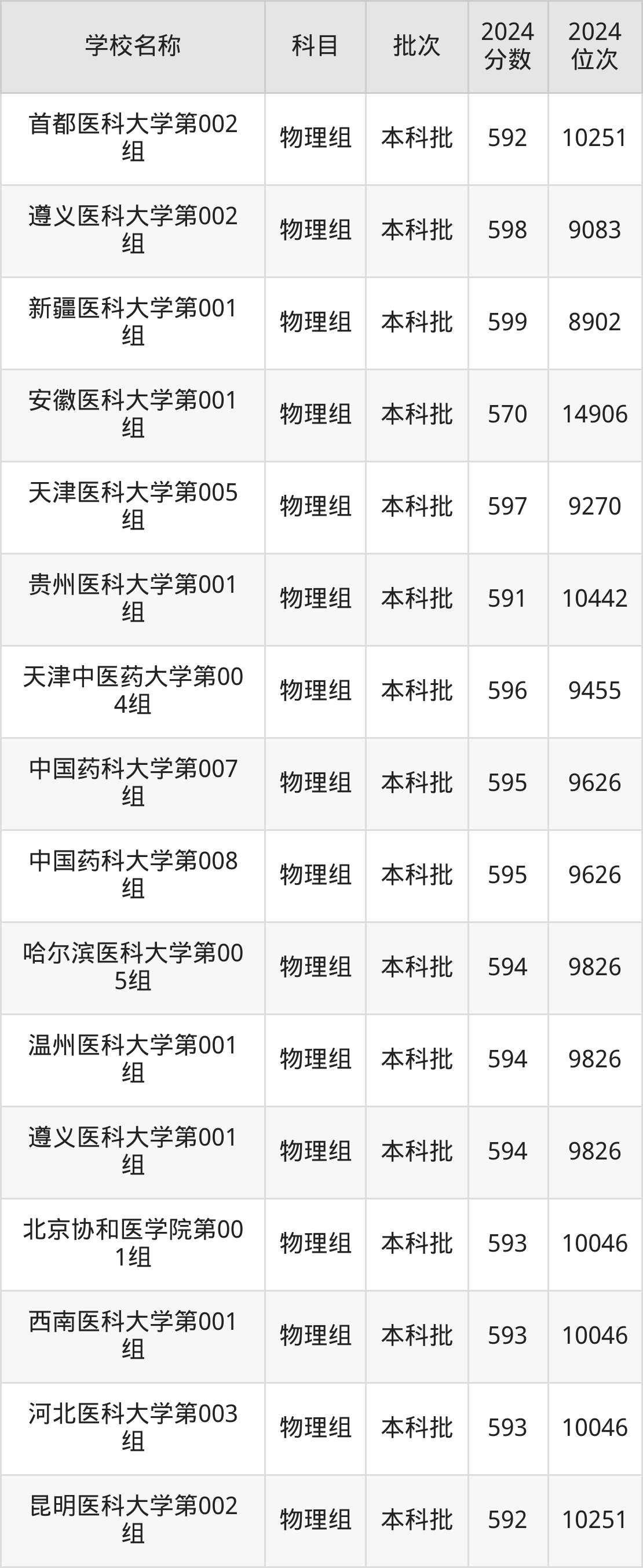 贵州高考物理组共有4所医科大学在570到600分之间录取,包含哈尔滨医科大学(国家专项计划)、中国药科大学、中国医科大学、南方医科大学。
