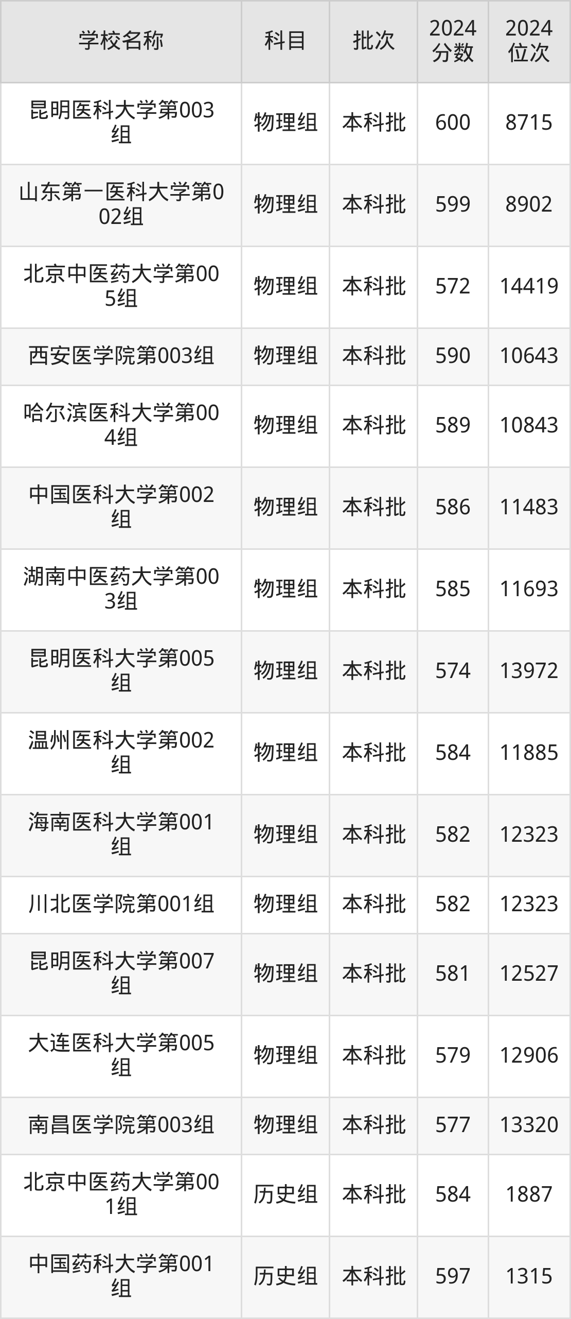 湖北高考历史组共有2所医科大学在570到600分之间录取,包含中国药科大学、北京中医药大学。