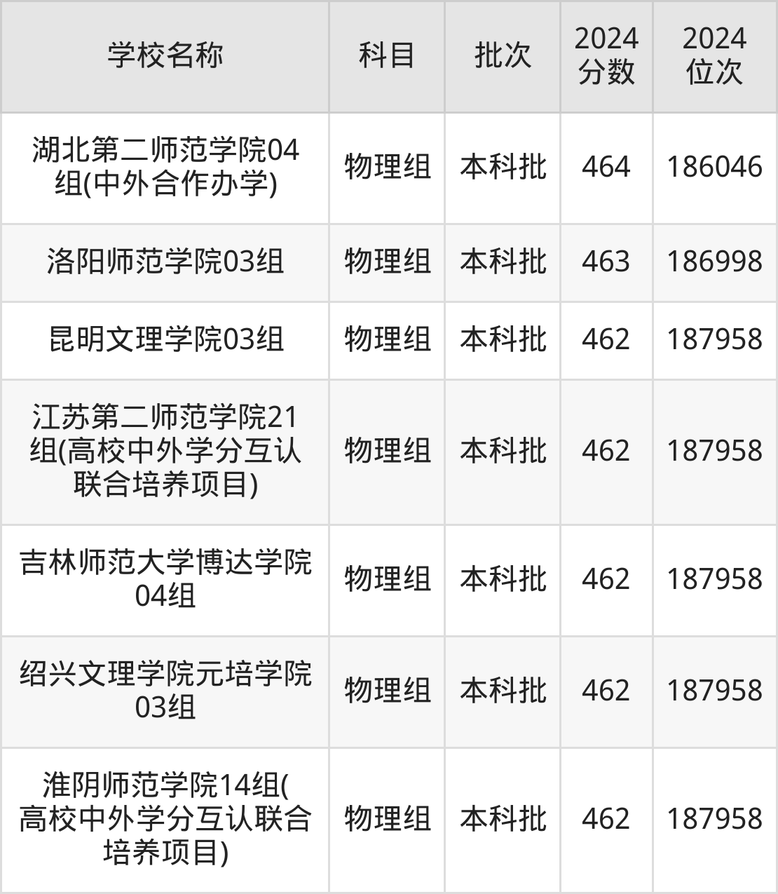 湖北高考物理组共有5所二本师范大学在430到470分之间录取,包含芜湖学院、吉林师范大学博达学院、太原师范学院、昆明文理学院、湖北师范大学文理学院。