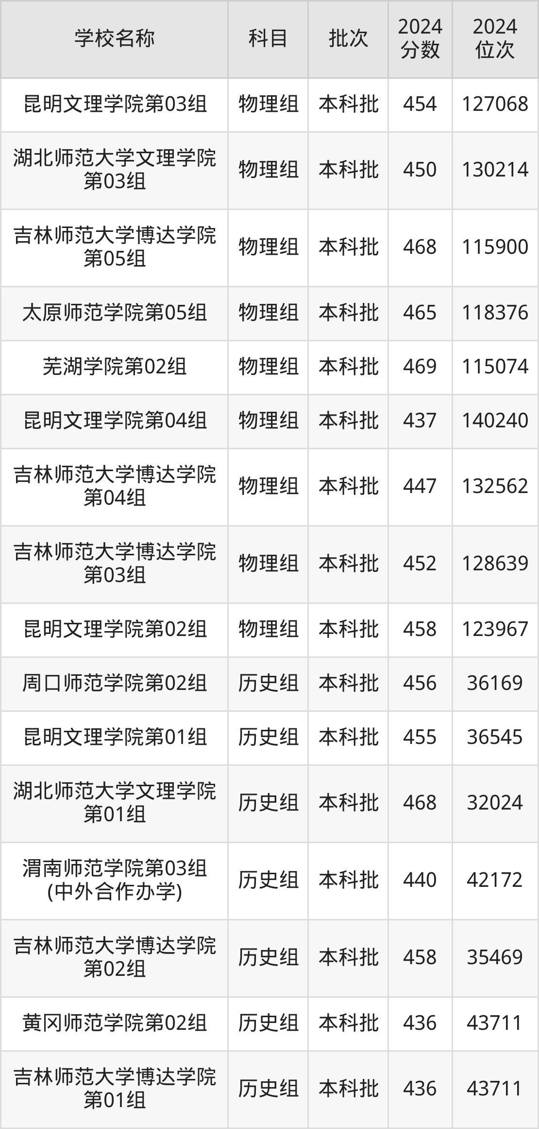湖北高考历史组共有6所二本师范大学在430到470分之间录取,包含湖北师范大学文理学院、吉林师范大学博达学院、周口师范学院、昆明文理学院、渭南师范学院、黄冈师范学院。