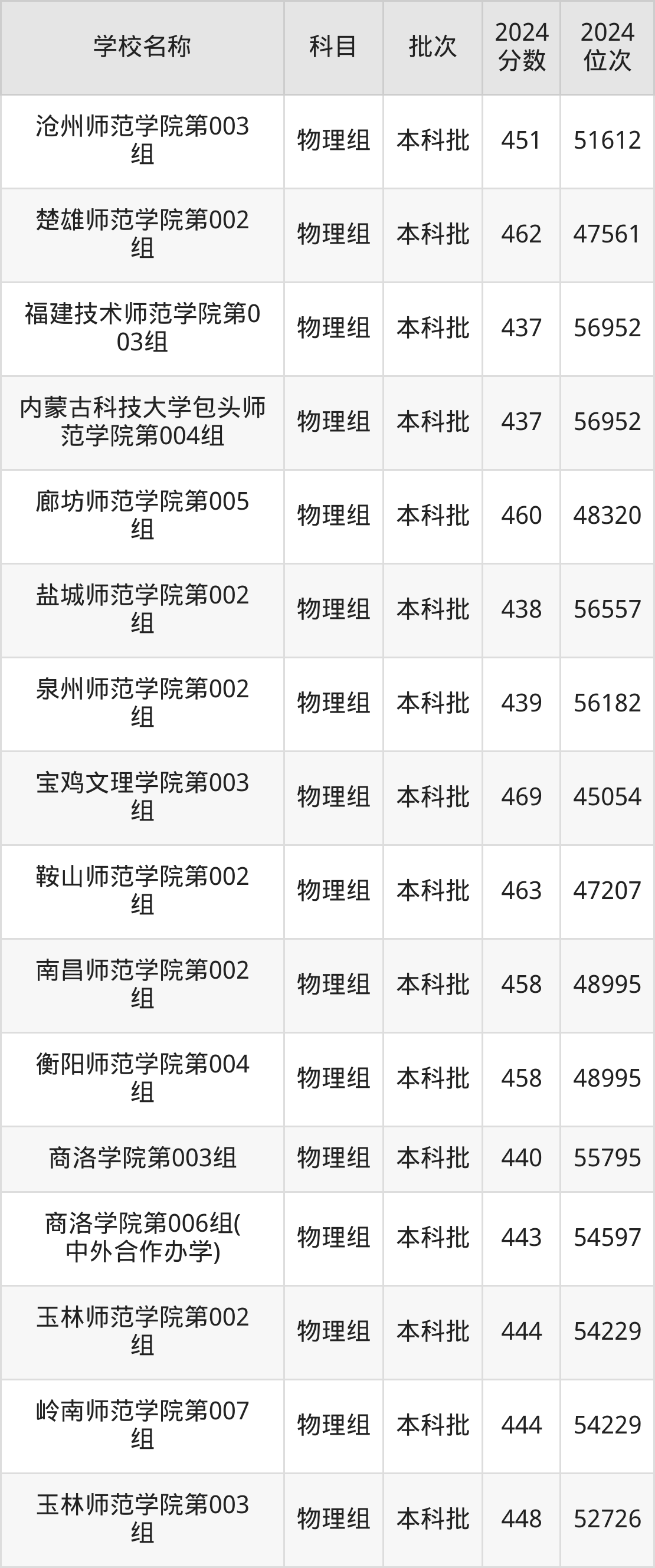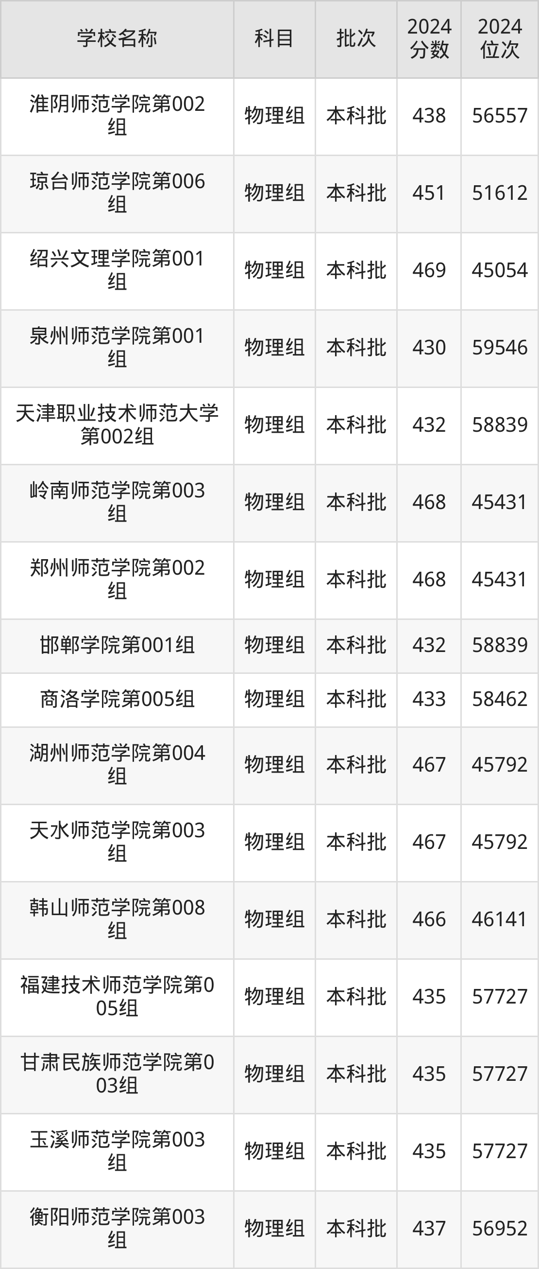 黑龙江高考物理组共有32所二本师范大学在430到470分之间录取,包含宝鸡文理学院、绍兴文理学院、岭南师范学院、郑州师范学院、湖州师范学院、天水师范学院、韩山师范学院、鞍山师范学院、楚雄师范学院、廊坊师范学院。