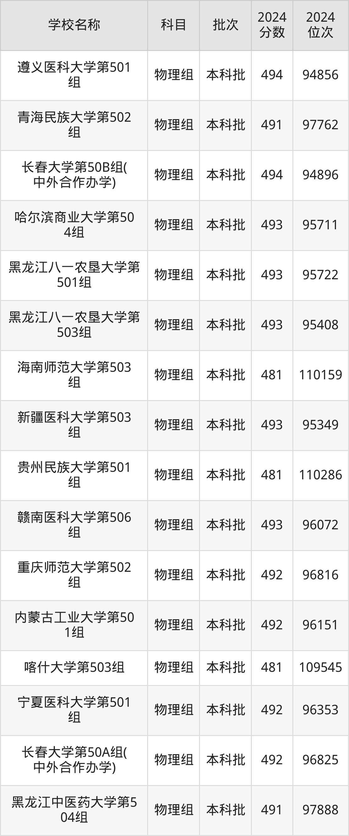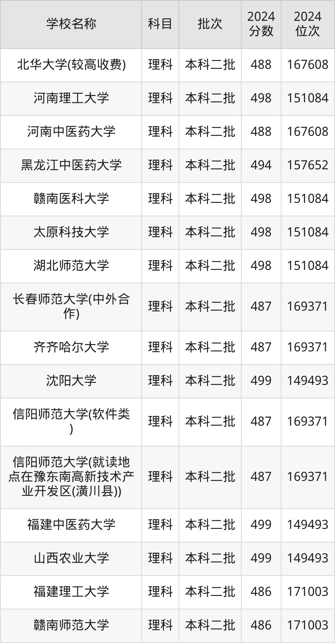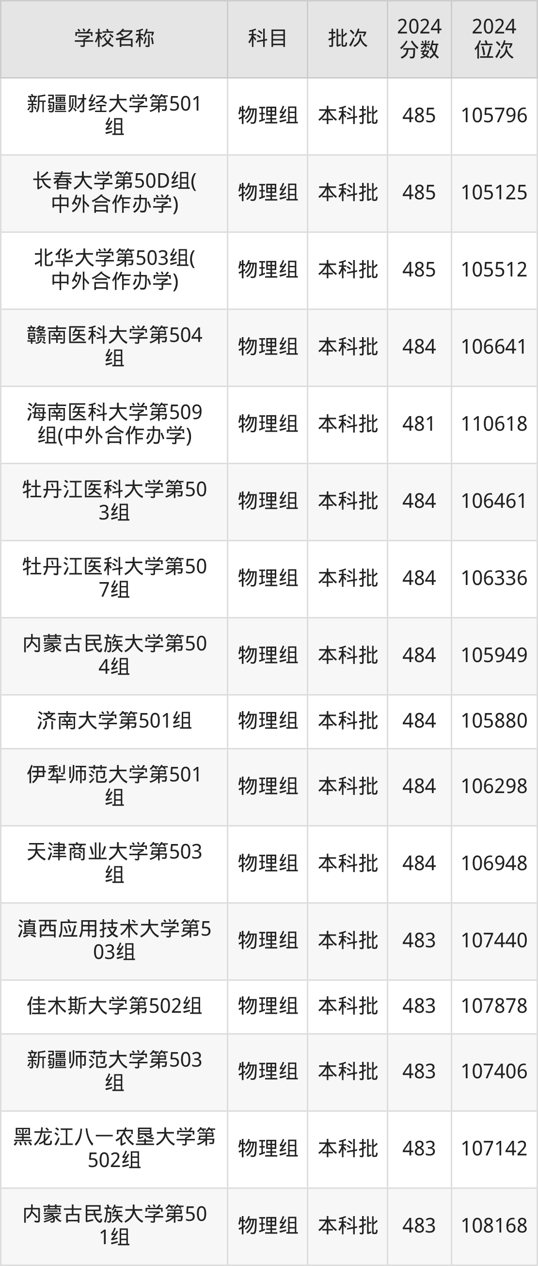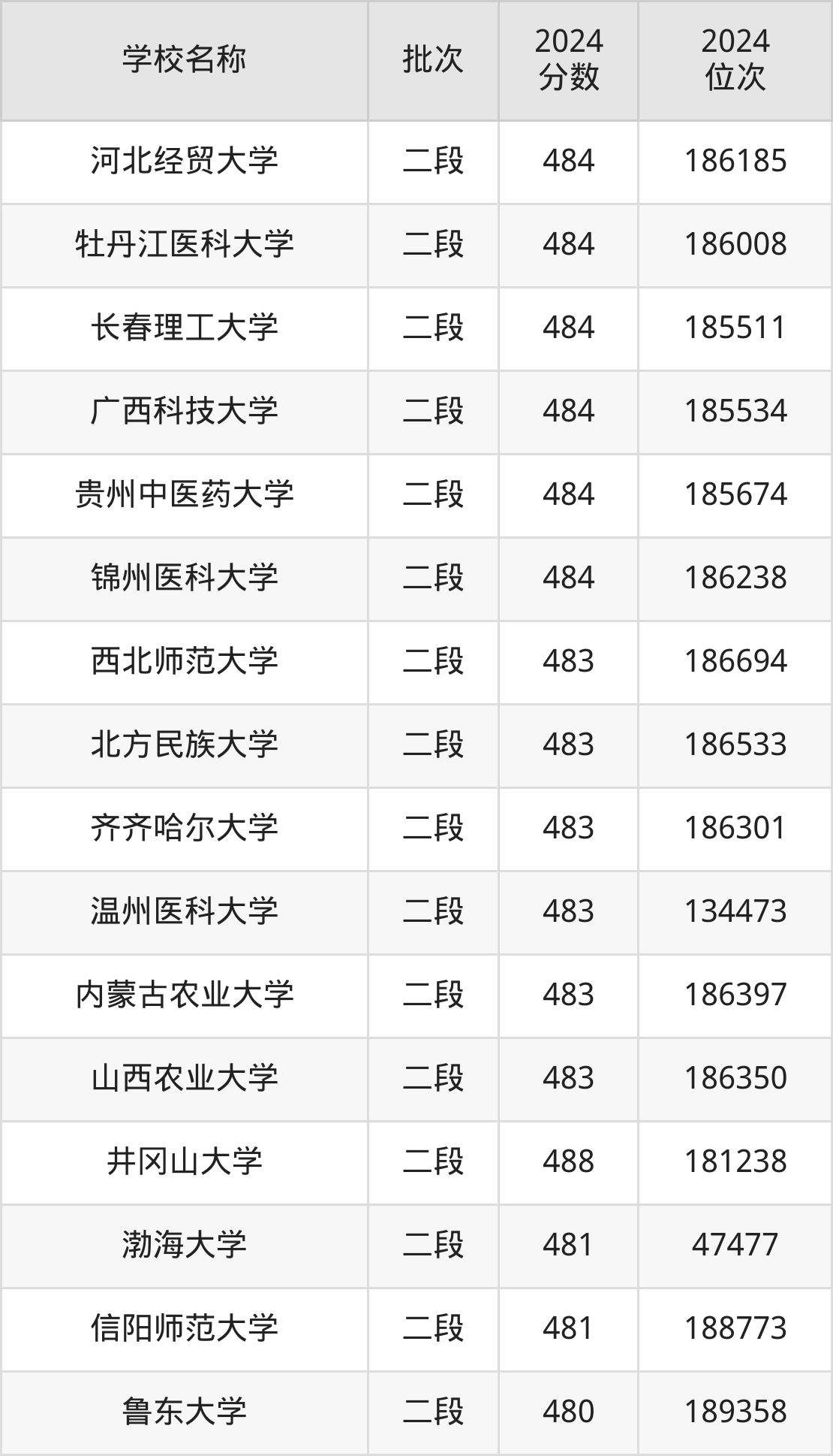 河北高考历史组共有8所一本大学在480到500分之间录取,包含伊犁师范大学、喀什大学、西安邮电大学(边防军人子女预科班)、贵州师范大学、长春师范大学、广西民族大学、河北师范大学、蚌埠医科大学。