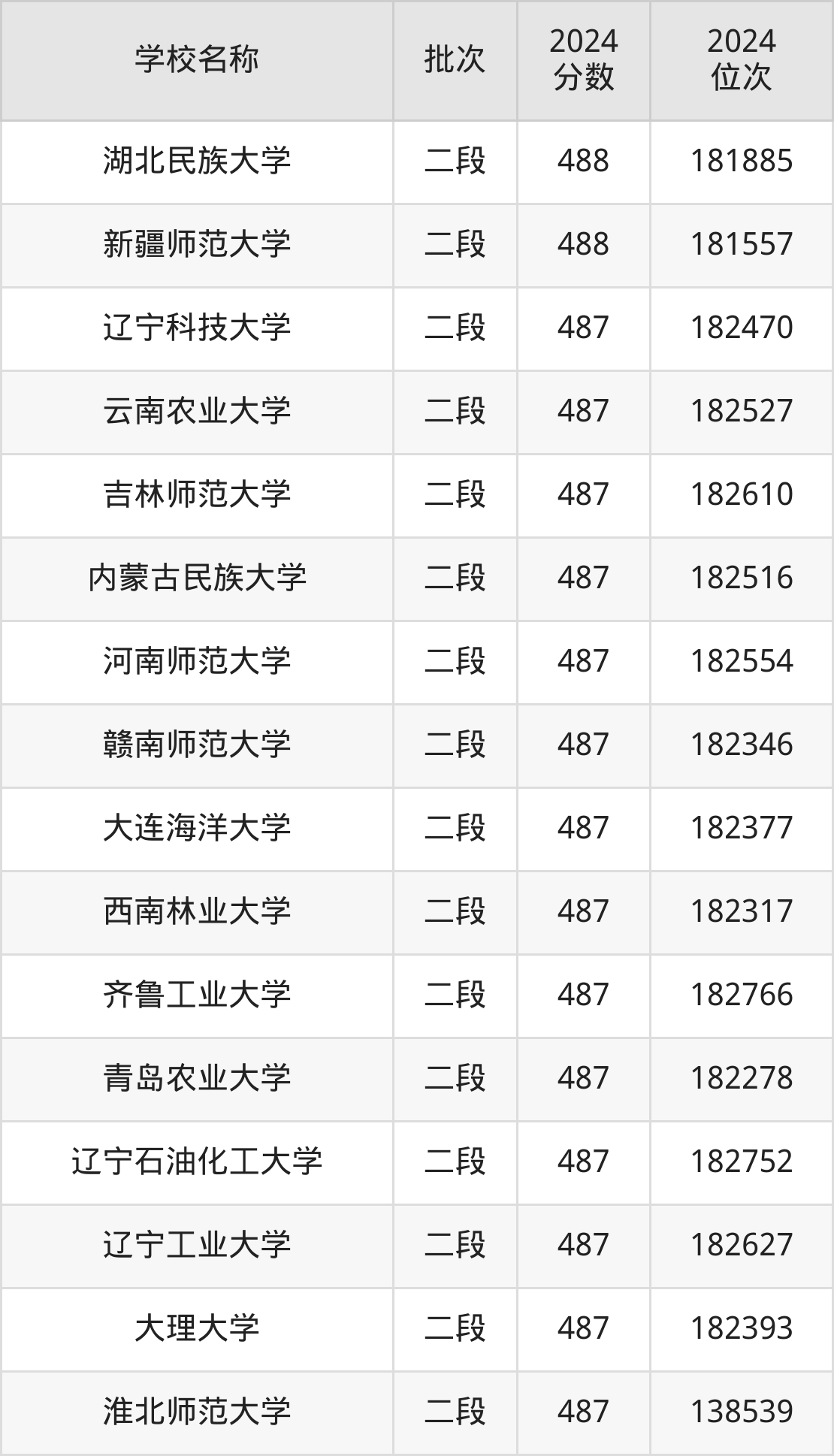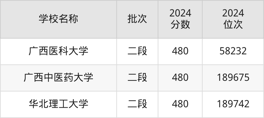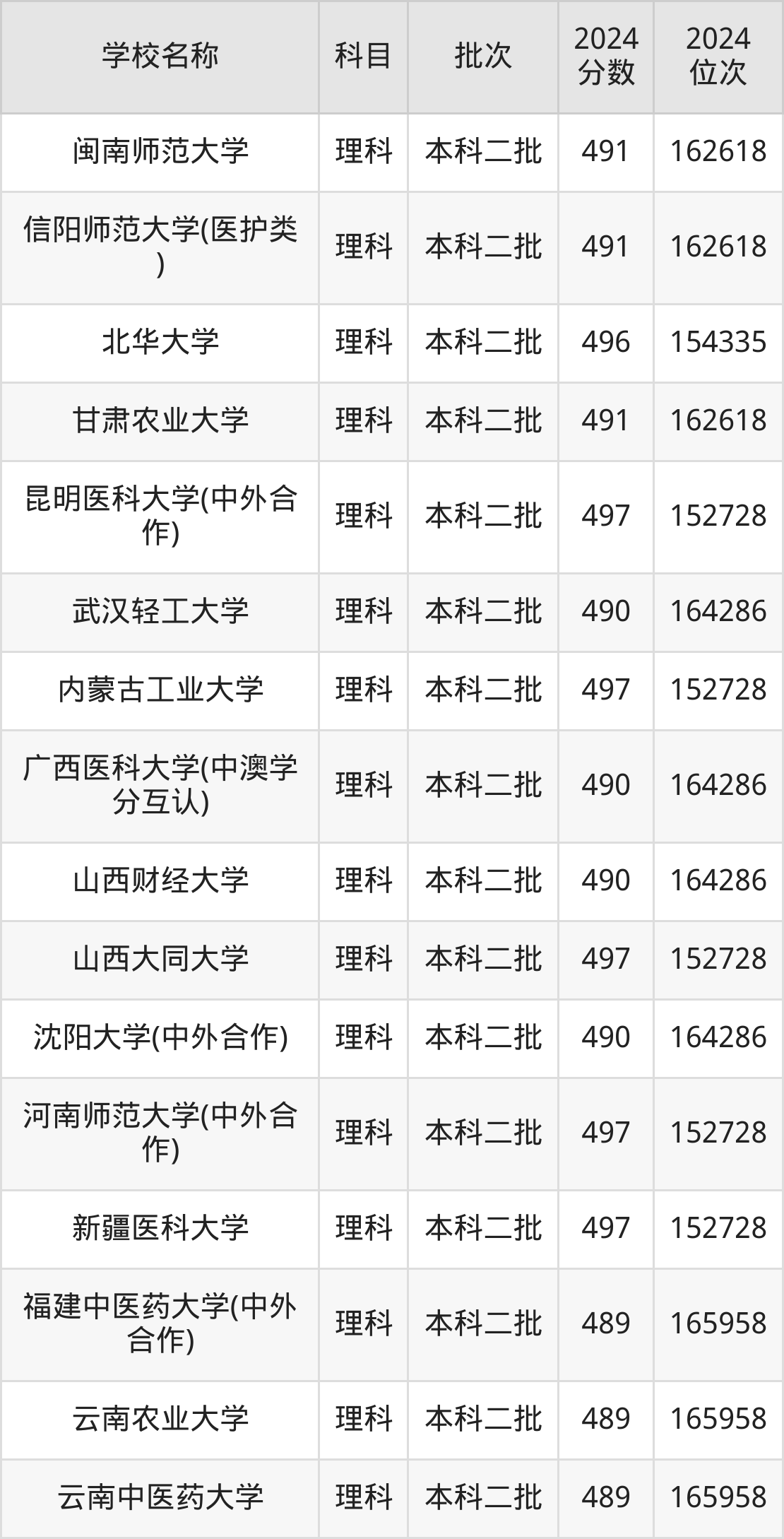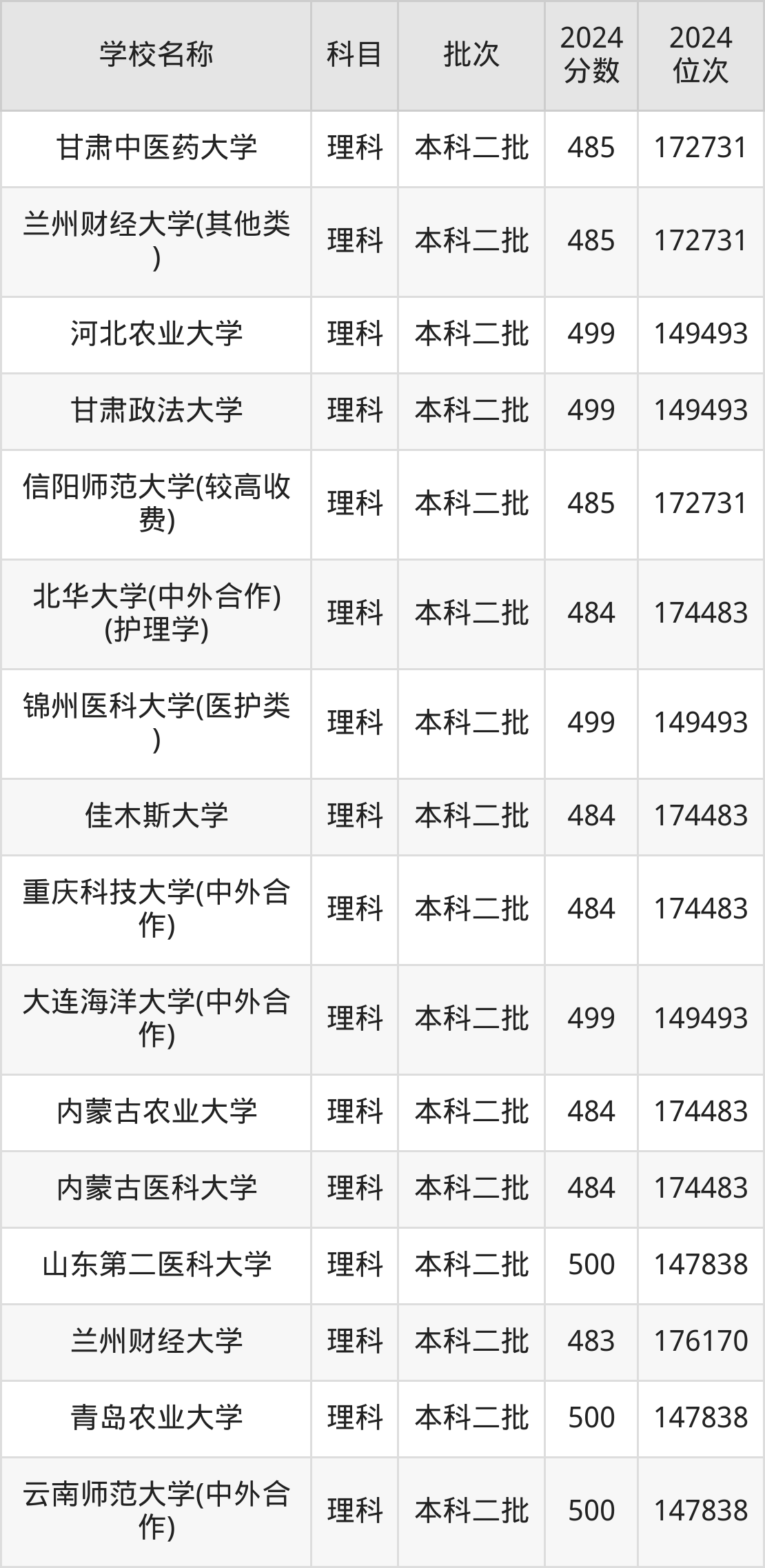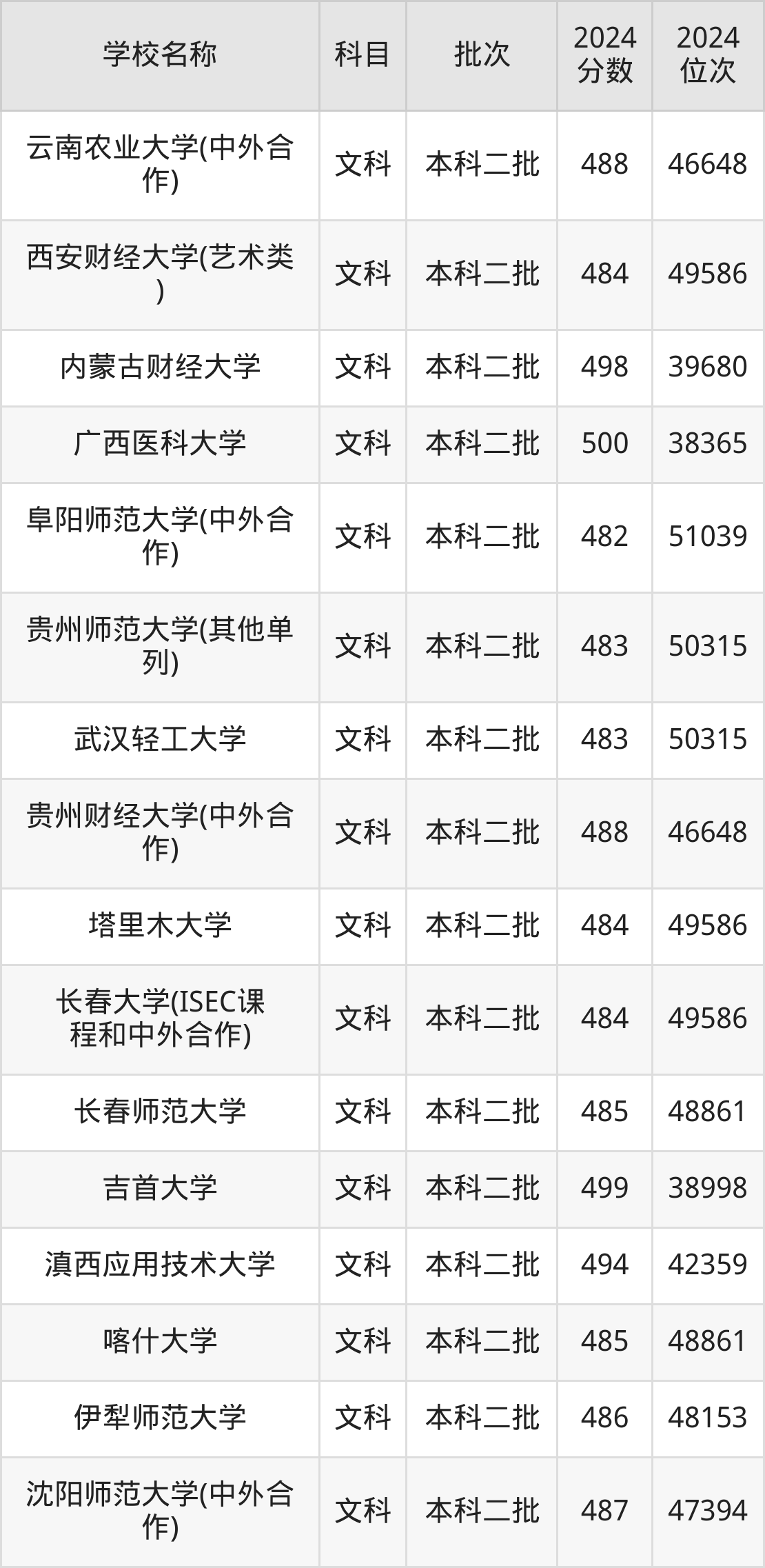 河北高考历史组共有8所一本大学在480到500分之间录取,包含伊犁师范大学、喀什大学、西安邮电大学(边防军人子女预科班)、贵州师范大学、长春师范大学、广西民族大学、河北师范大学、蚌埠医科大学。