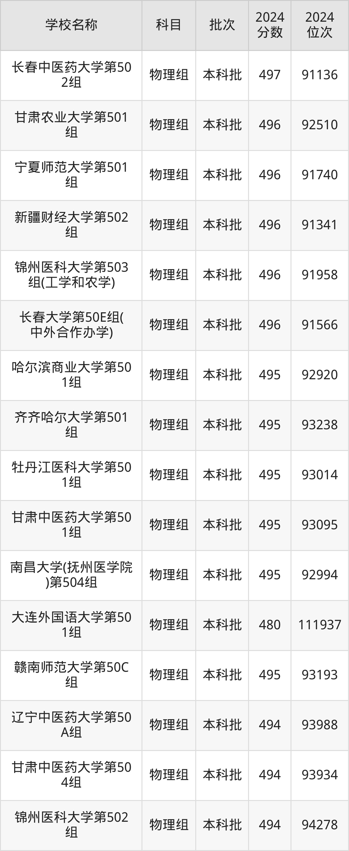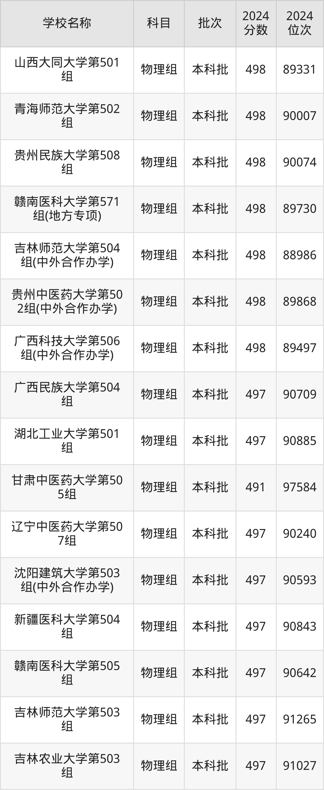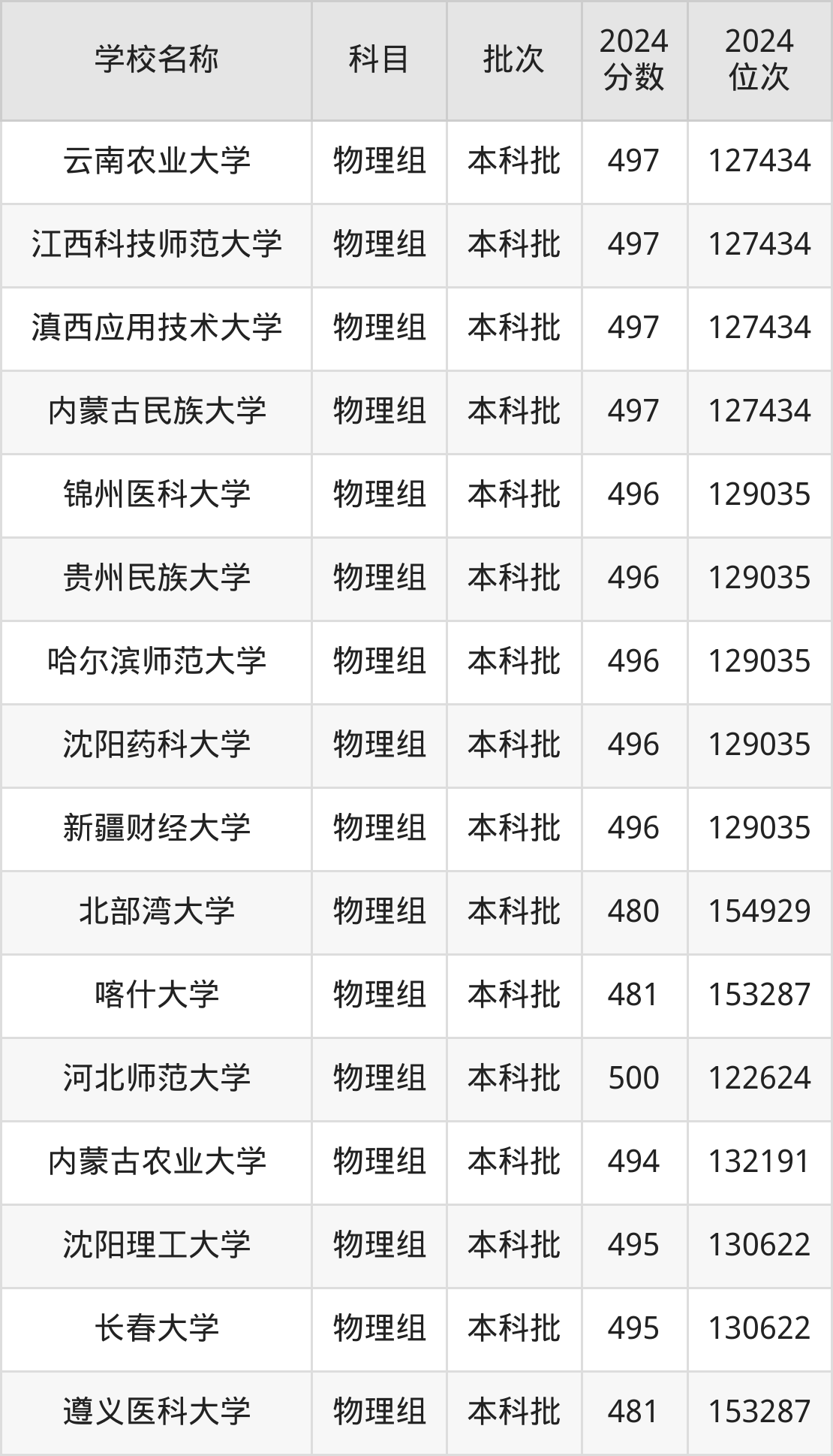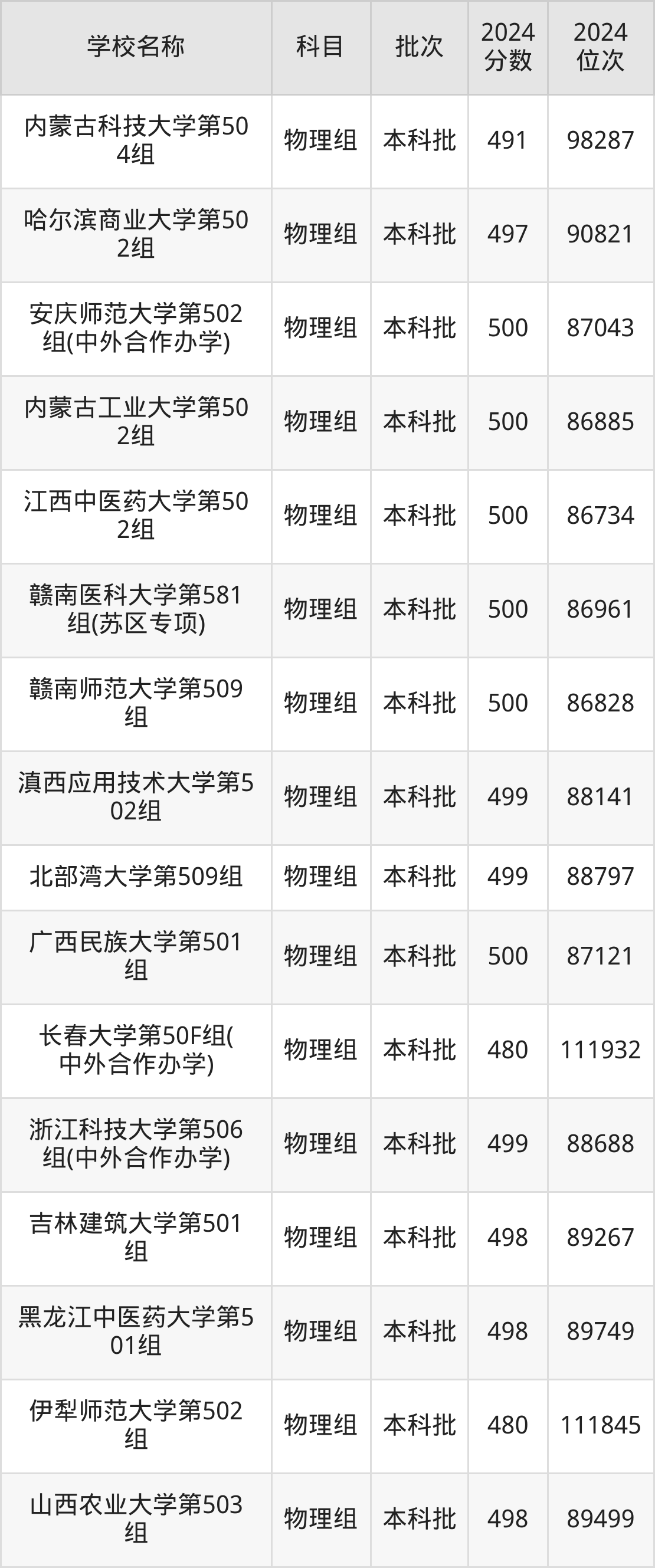 江西高考物理组共有63所一本大学在480到500分之间录取,包含广西民族大学、北部湾大学、安庆师范大学、内蒙古工业大学、江西中医药大学、赣南医科大学、赣南师范大学、滇西应用技术大学、甘肃农业大学、浙江科技大学。