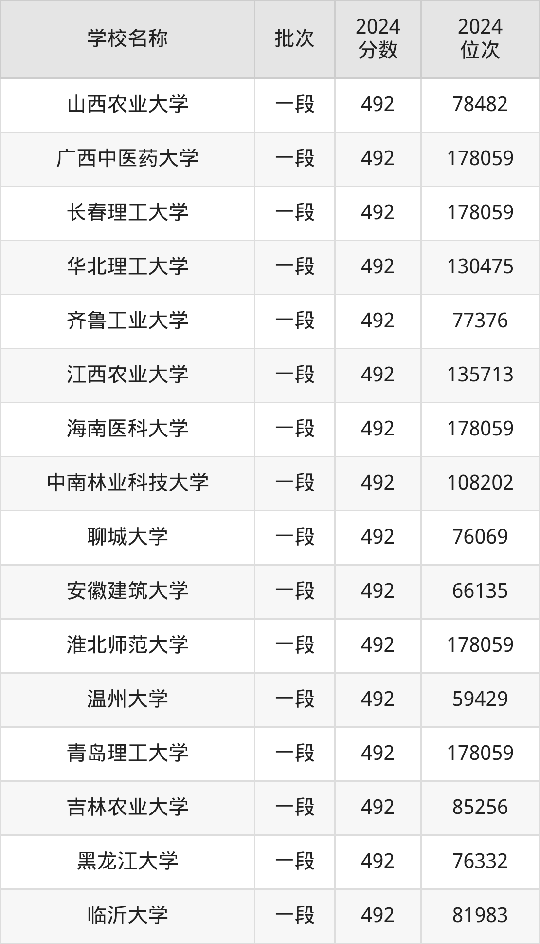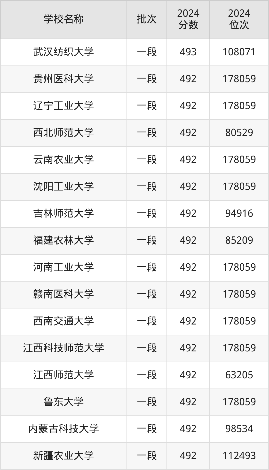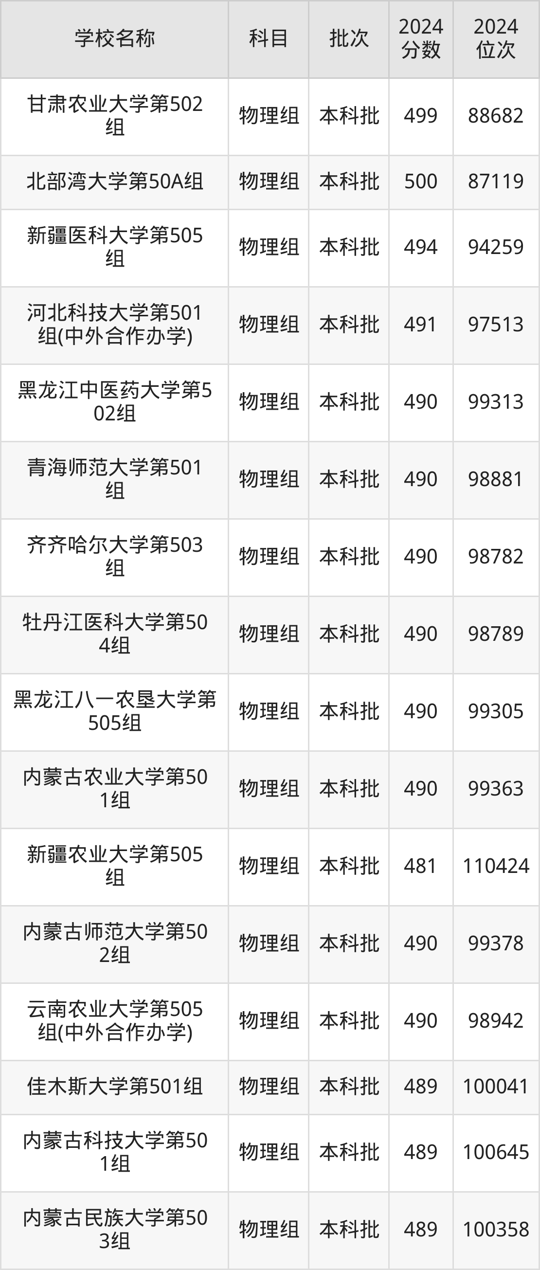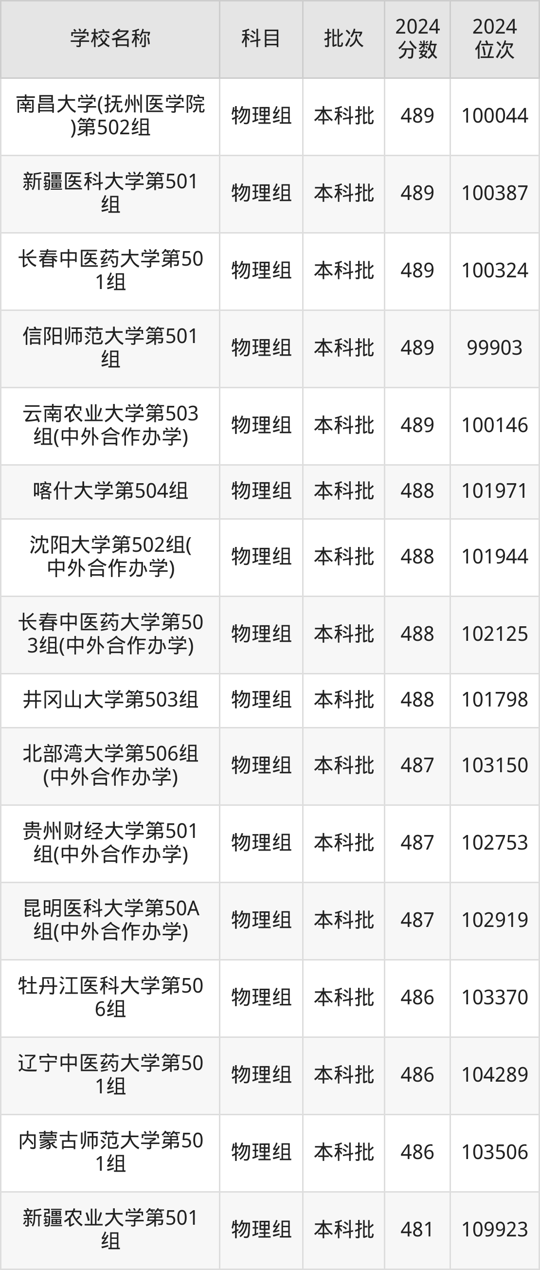 江西高考物理组共有63所一本大学在480到500分之间录取,包含广西民族大学、北部湾大学、安庆师范大学、内蒙古工业大学、江西中医药大学、赣南医科大学、赣南师范大学、滇西应用技术大学、甘肃农业大学、浙江科技大学。