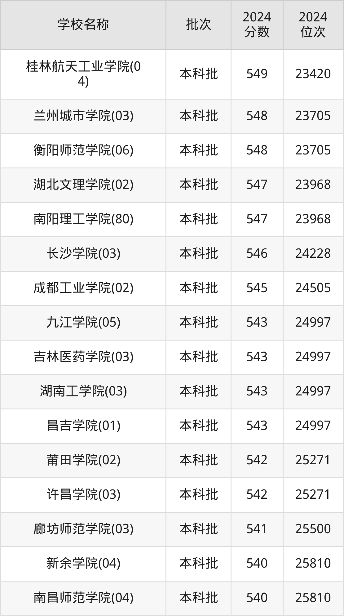 海南高考共有101所二本公办大学在500到550分之间录取,包含桂林航天工业学院、兰州城市学院、衡阳师范学院、湖北文理学院、南阳理工学院、长沙学院、成都工业学院、九江学院、吉林医药学院、湖南工学院。