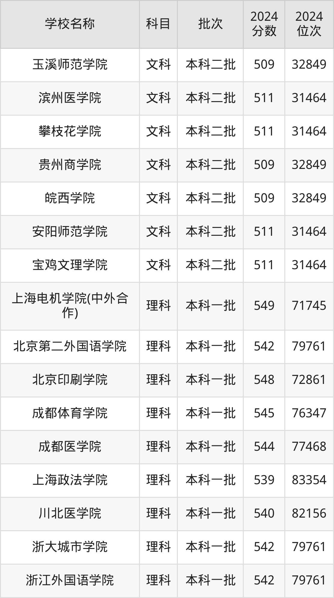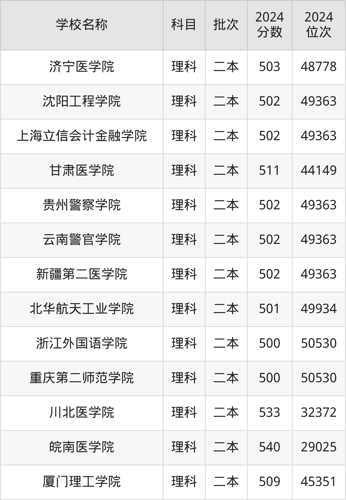 全国各省500到550分能够上的二本公办大学是不同的。小编以国内部分高考省份为例,为大家带来500到550分的二本公办大学最低录取分数线汇总,供2025届想报考二本公办大学的考生同学们查看。