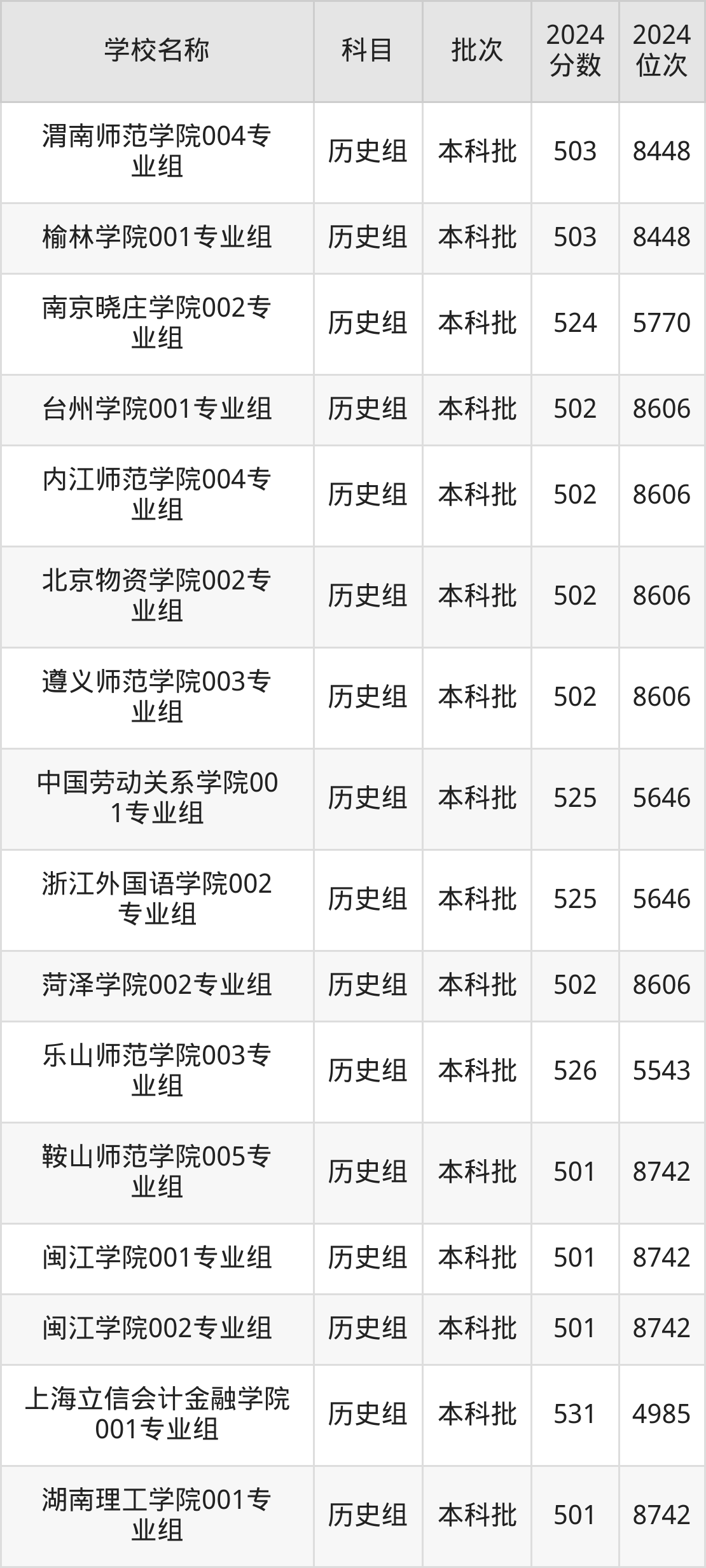 辽宁高考历史组共有38所二本公办大学在500到550分之间录取,包含浙江传媒学院、北京物资学院、湖北经济学院、南京艺术学院、无锡学院、中国劳动关系学院、太原师范学院、上海立信会计金融学院、北京印刷学院、厦门理工学院。