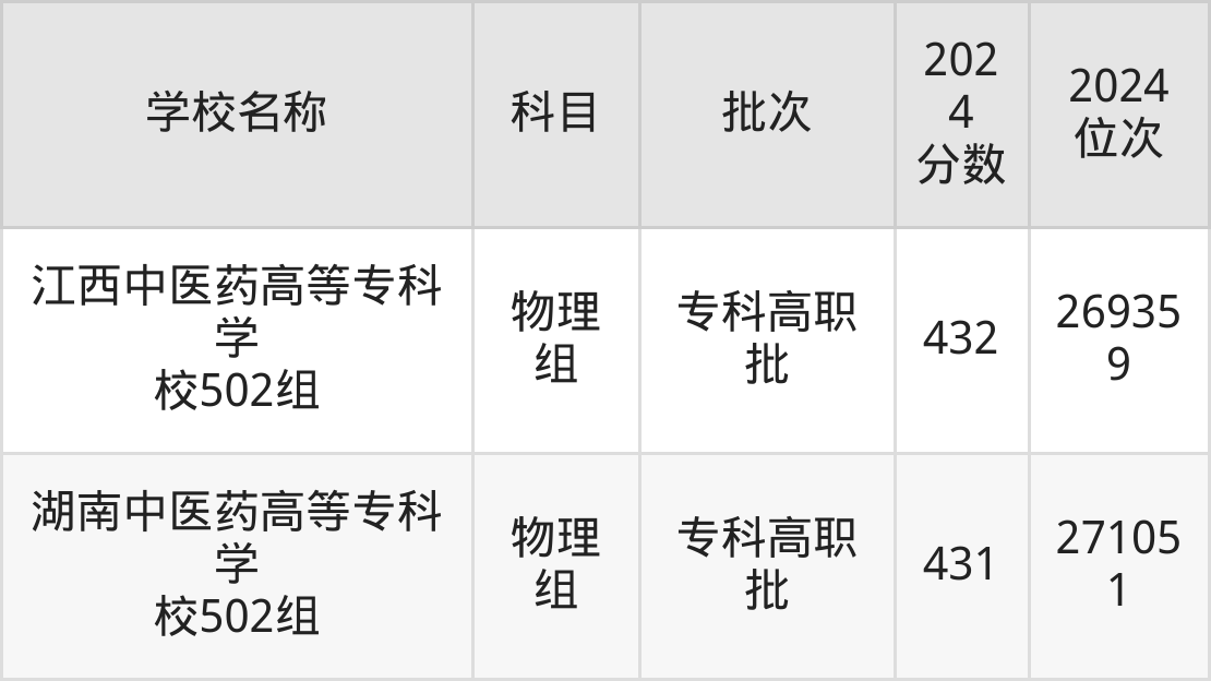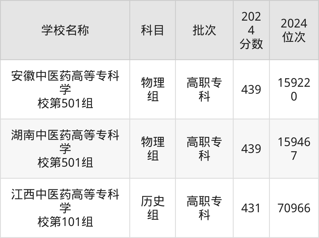 江西高考物理组共有2所中医药大学在430到440分之间录取,包含安徽中医药高等专科学校、湖南中医药高等专科学校。