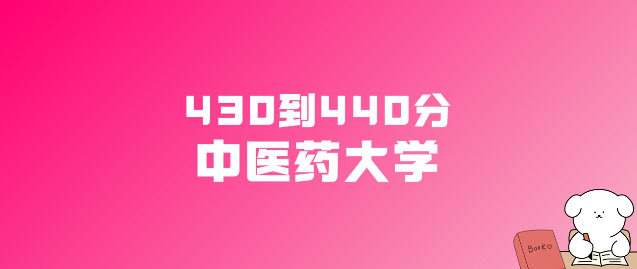 430到440分的中医药大学有江西中医药高等专科学校、安徽中医药高等专科学校、湖南中医药高等专科学校、北京中医药大学东方学院、贵州中医药大学(预科班)、湖北中医药大学、山东中医药高等专科学校、湖北中医药高等专科学校等。