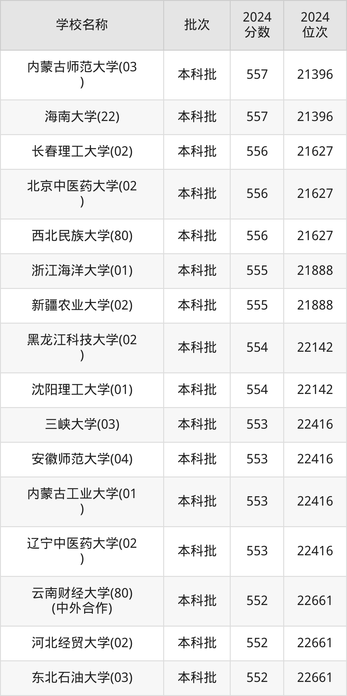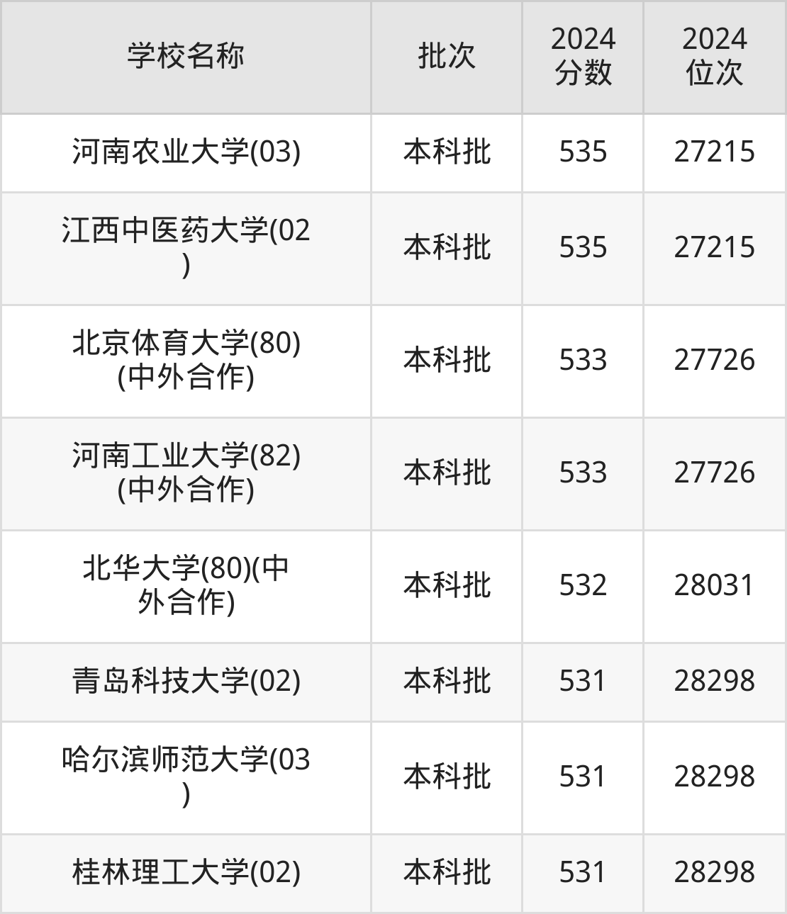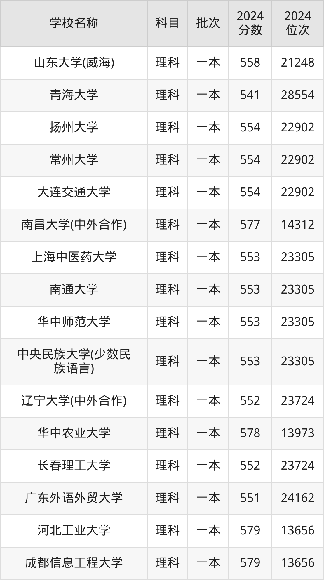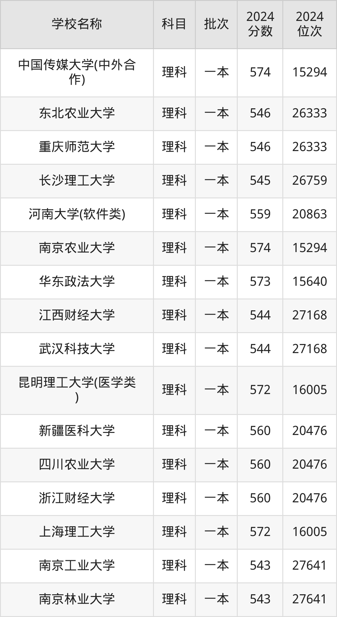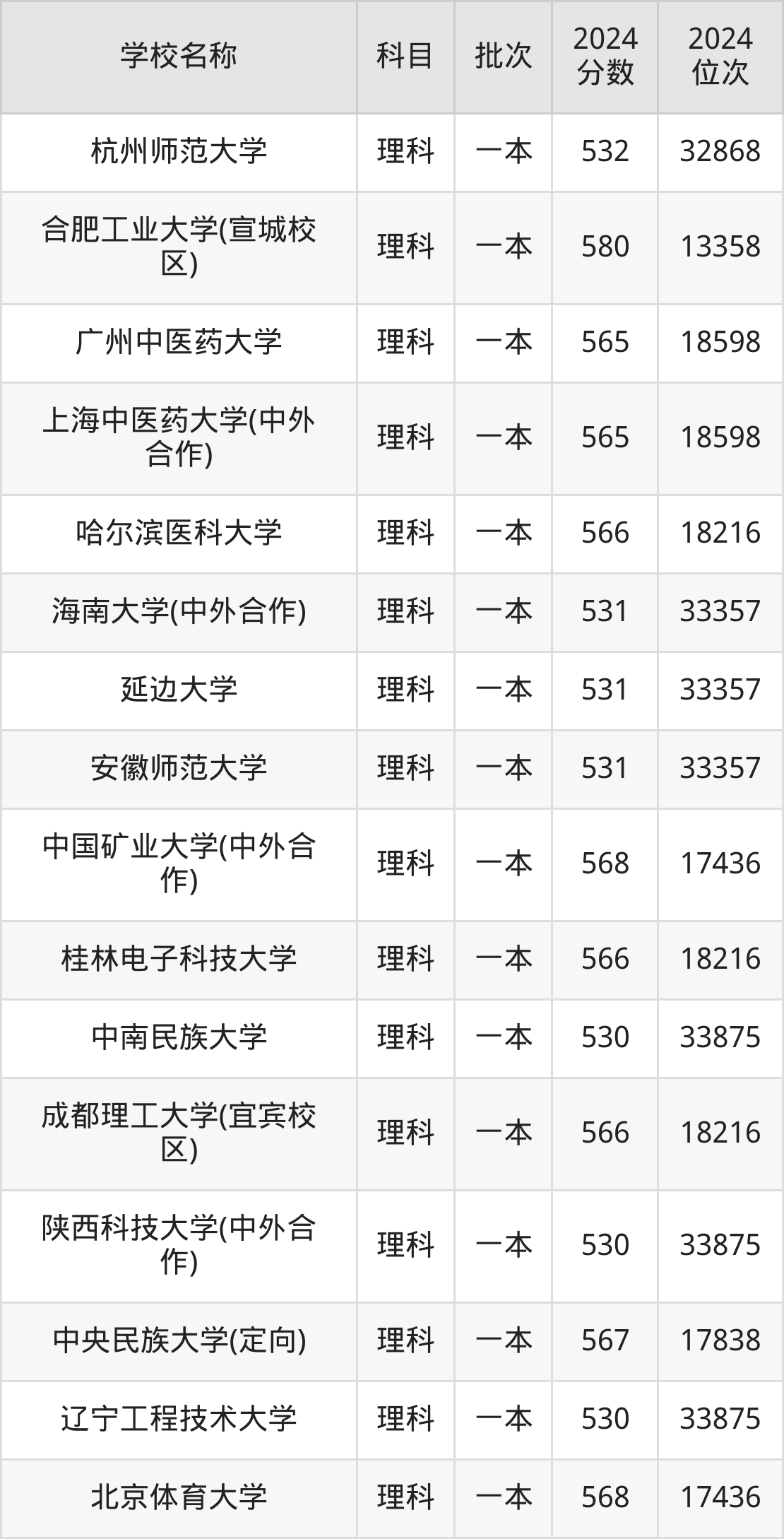 云南高考理科共有148所重点大学在530到580分之间录取,包含北京交通大学(威海校区)、合肥工业大学(宣城校区)、太原理工大学、成都信息工程大学、河北工业大学、华中农业大学、南昌大学(中外合作)、河北医科大学、中国地质大学(北京)、暨南大学。