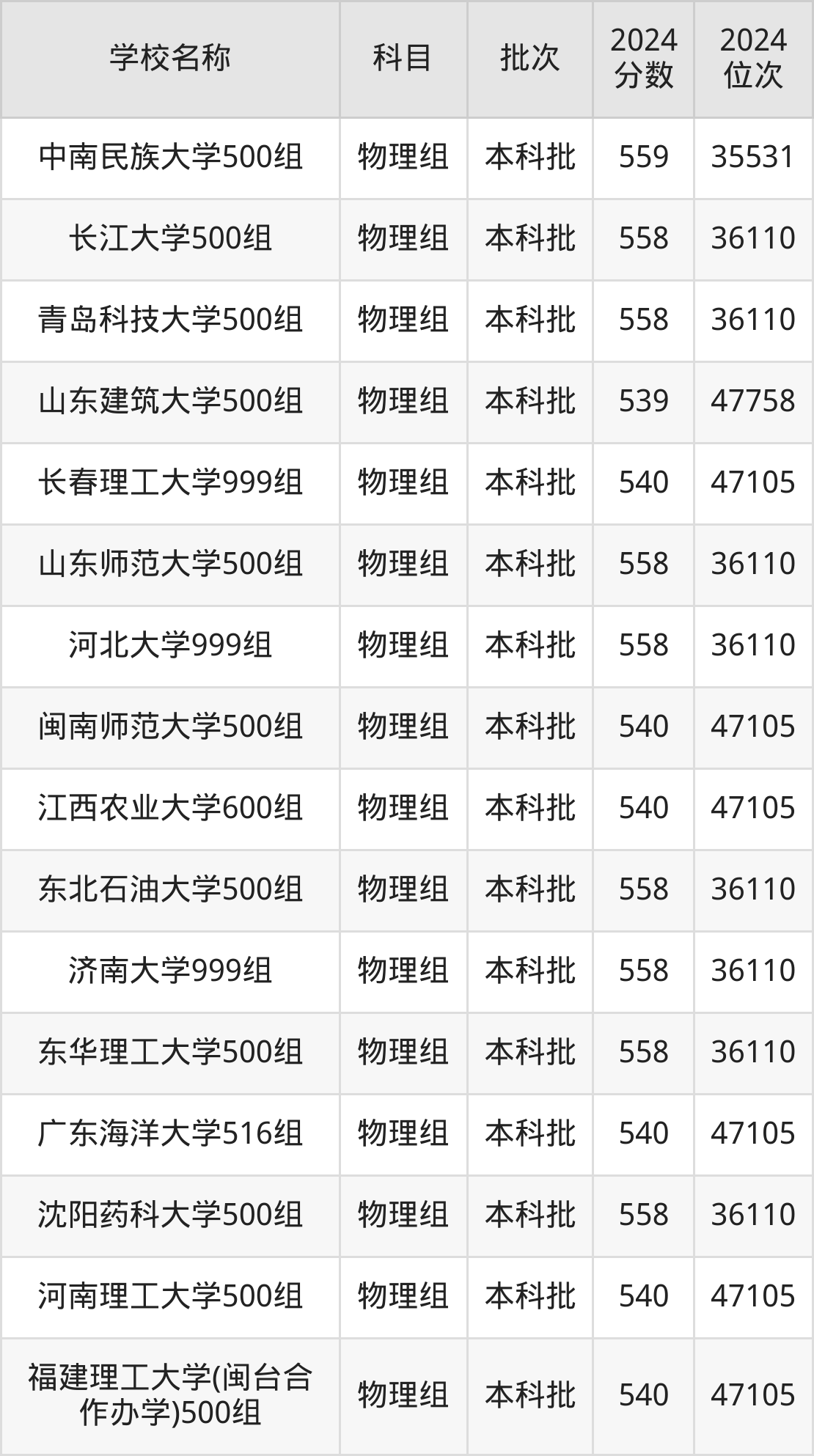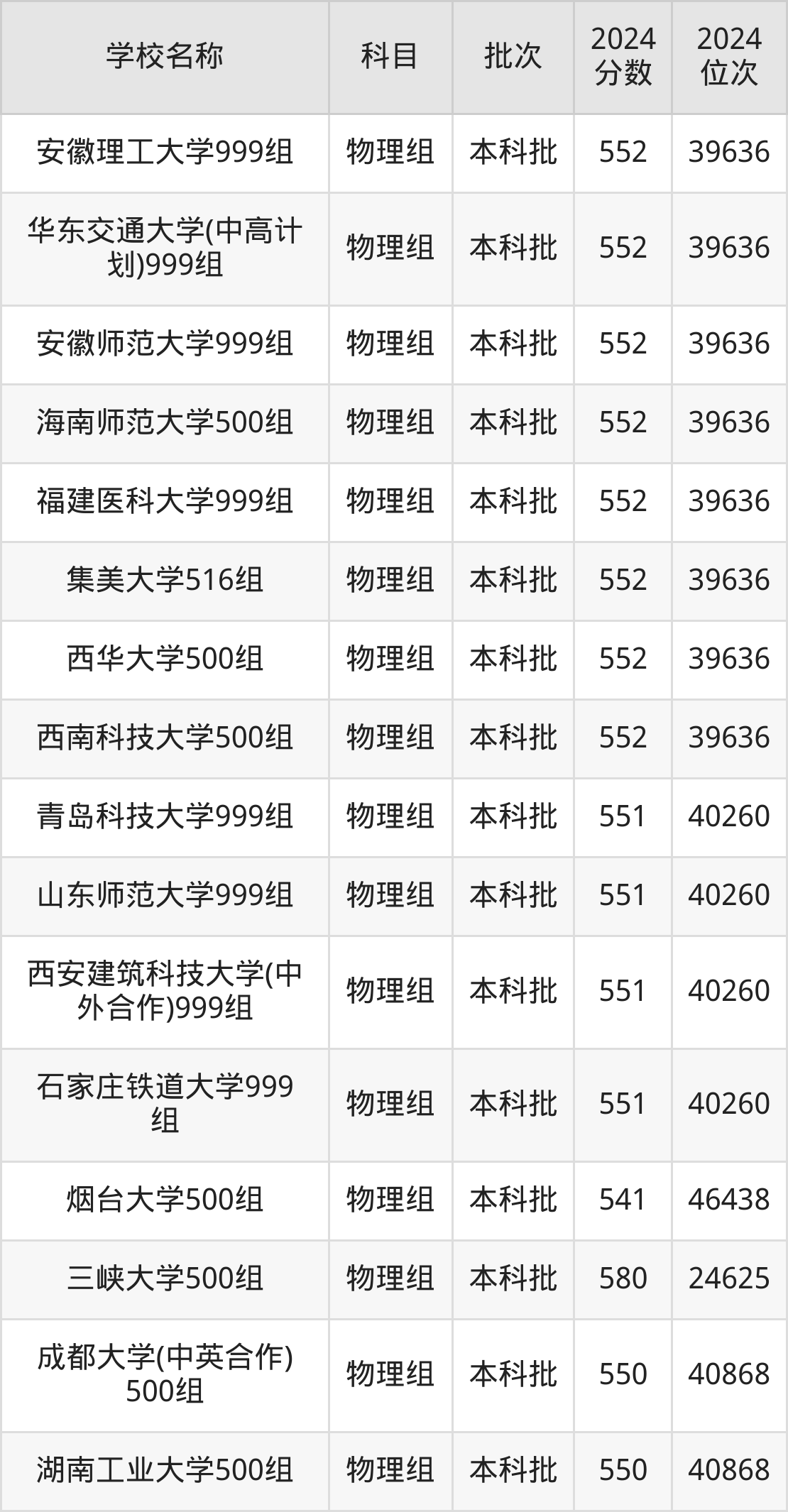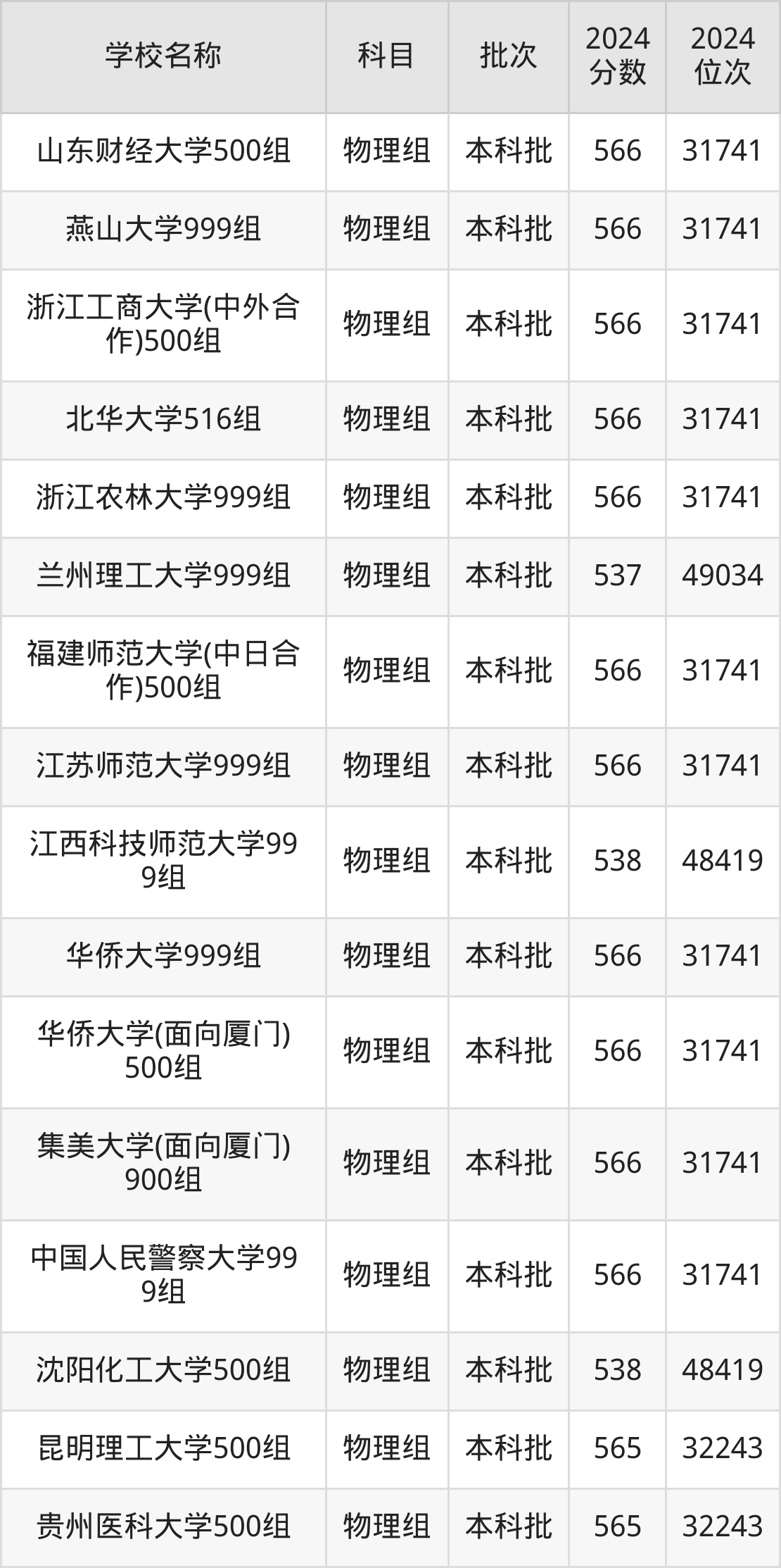 福建高考物理组共有269所重点大学在530到580分之间录取,包含三峡大学、山东师范大学、华北理工大学、海南大学(中外合作)、福建农林大学(定向专业,宁化县)、中国民航大学、中国石油大学(北京)克拉玛依校区、中央美术学院(中外合作)、重庆理工大学、大连海事大学(中外合作)。