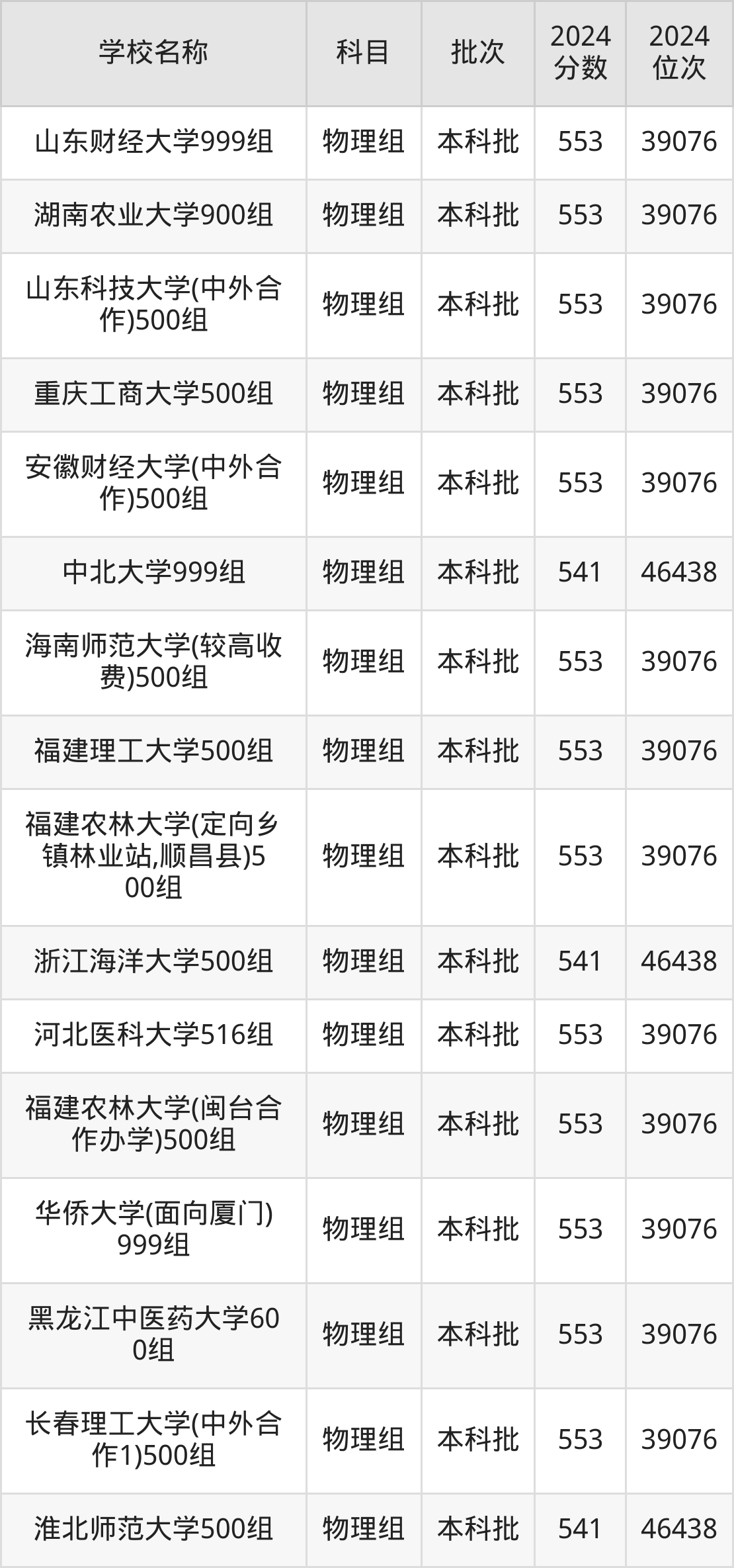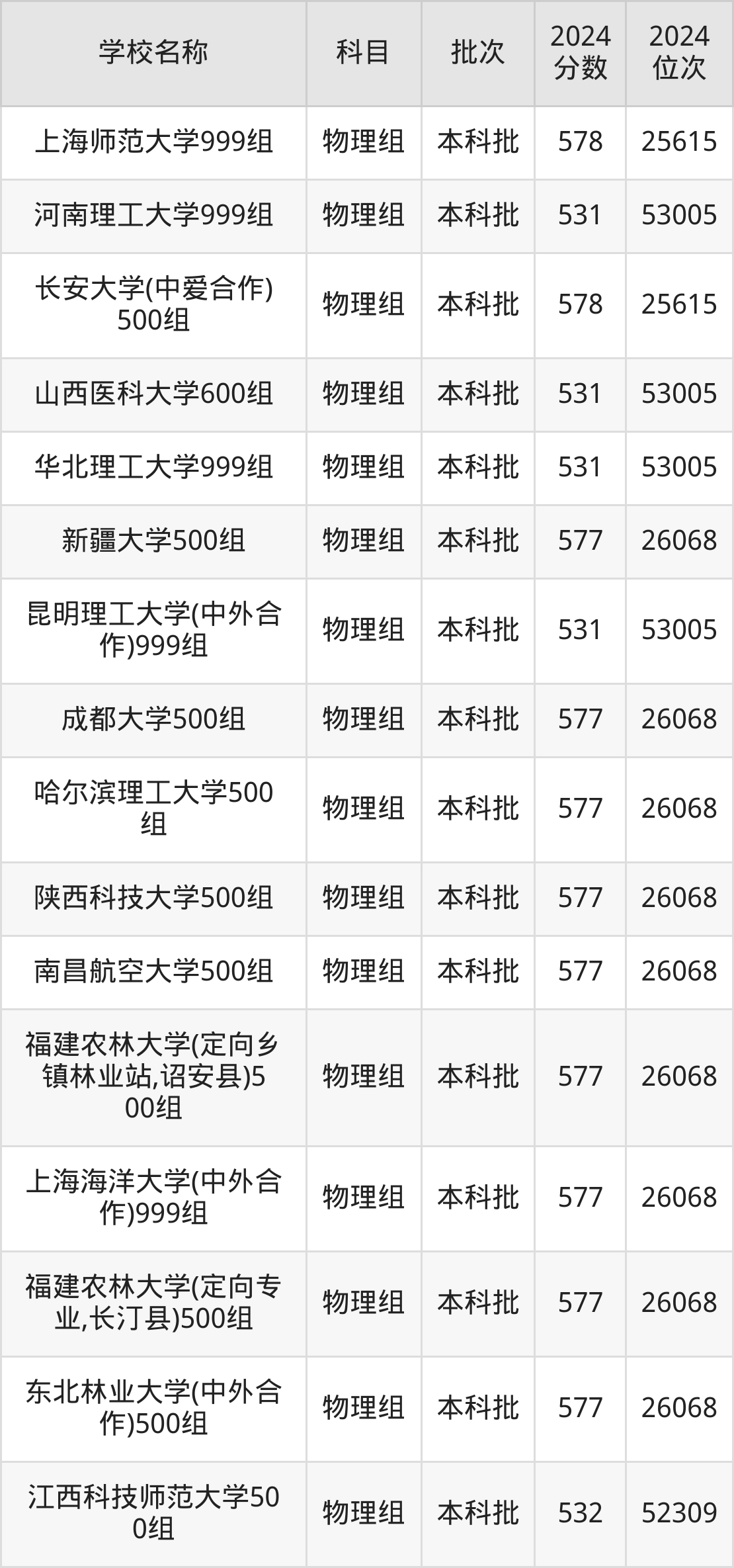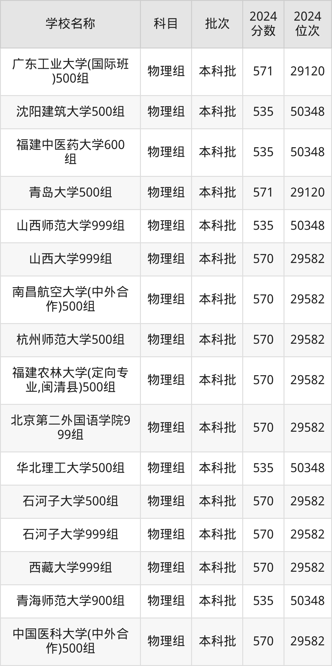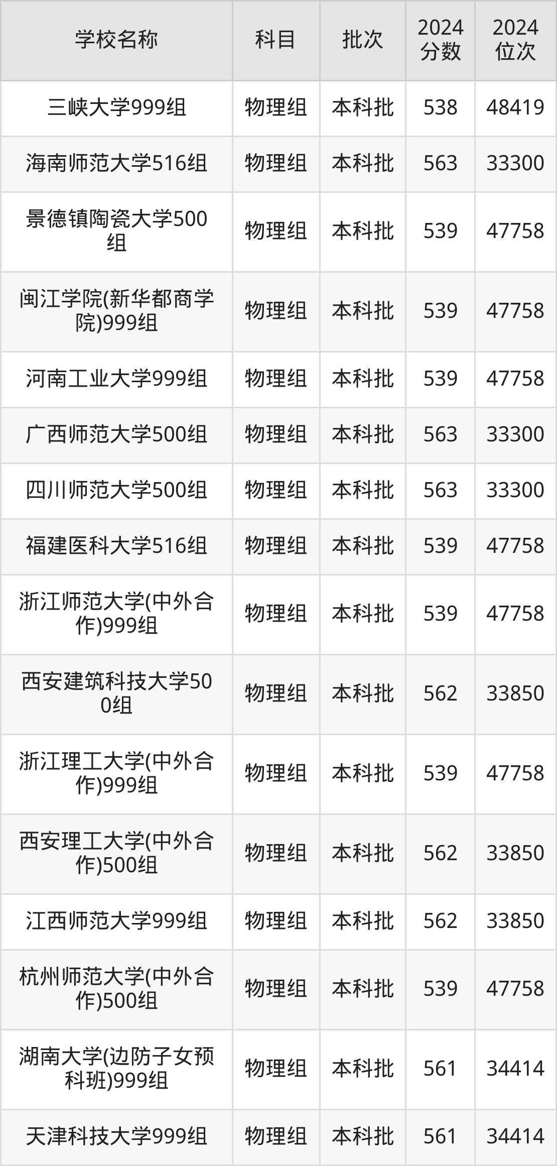 福建高考物理组共有269所重点大学在530到580分之间录取,包含三峡大学、山东师范大学、华北理工大学、海南大学(中外合作)、福建农林大学(定向专业,宁化县)、中国民航大学、中国石油大学(北京)克拉玛依校区、中央美术学院(中外合作)、重庆理工大学、大连海事大学(中外合作)。