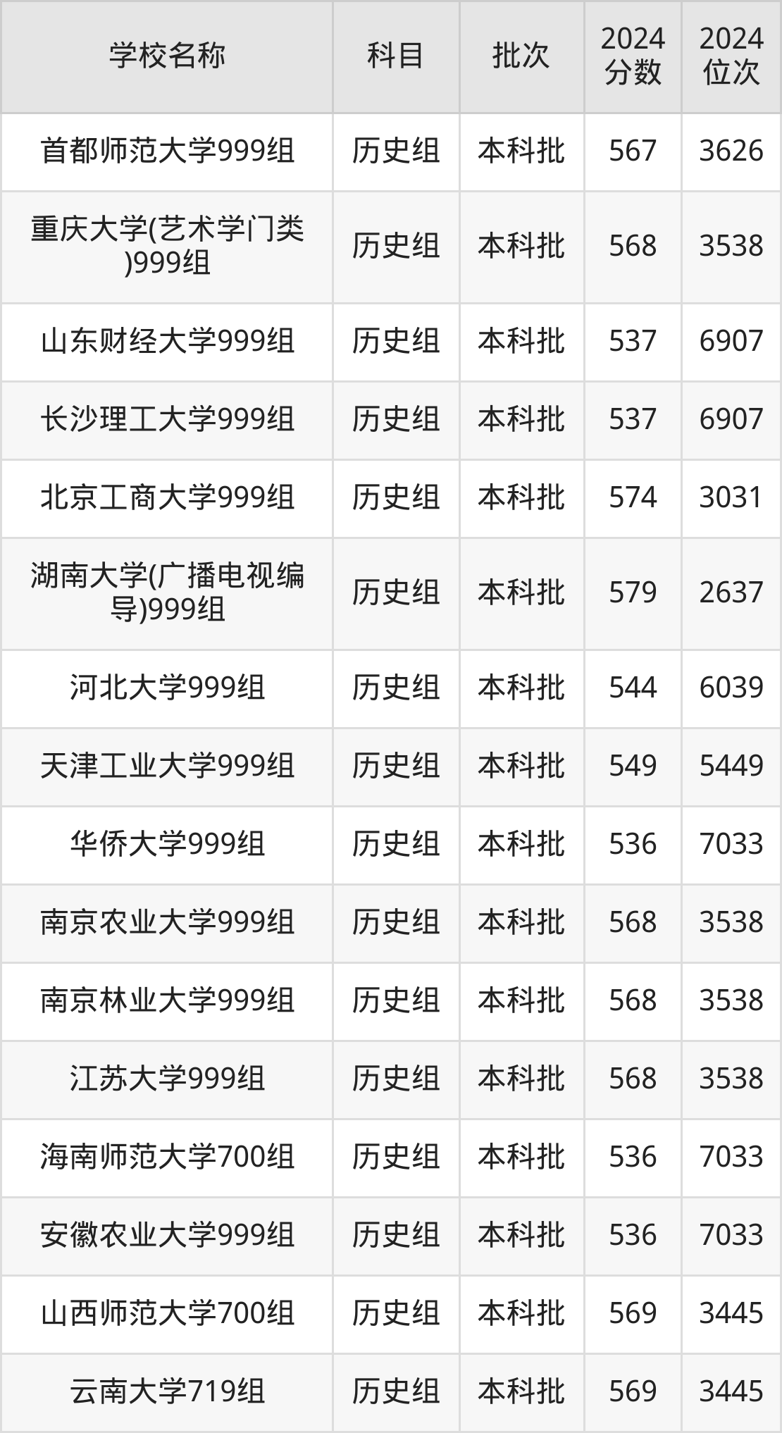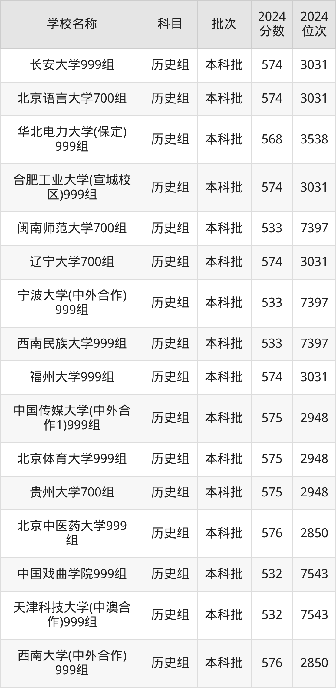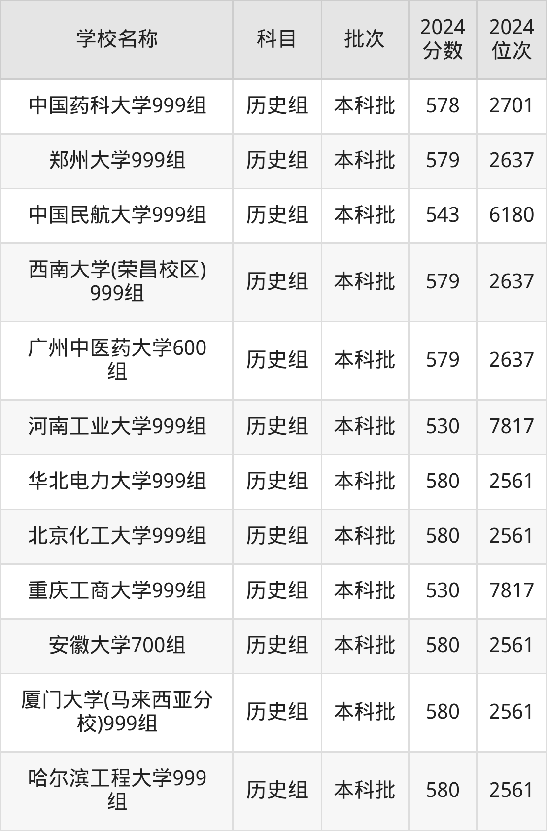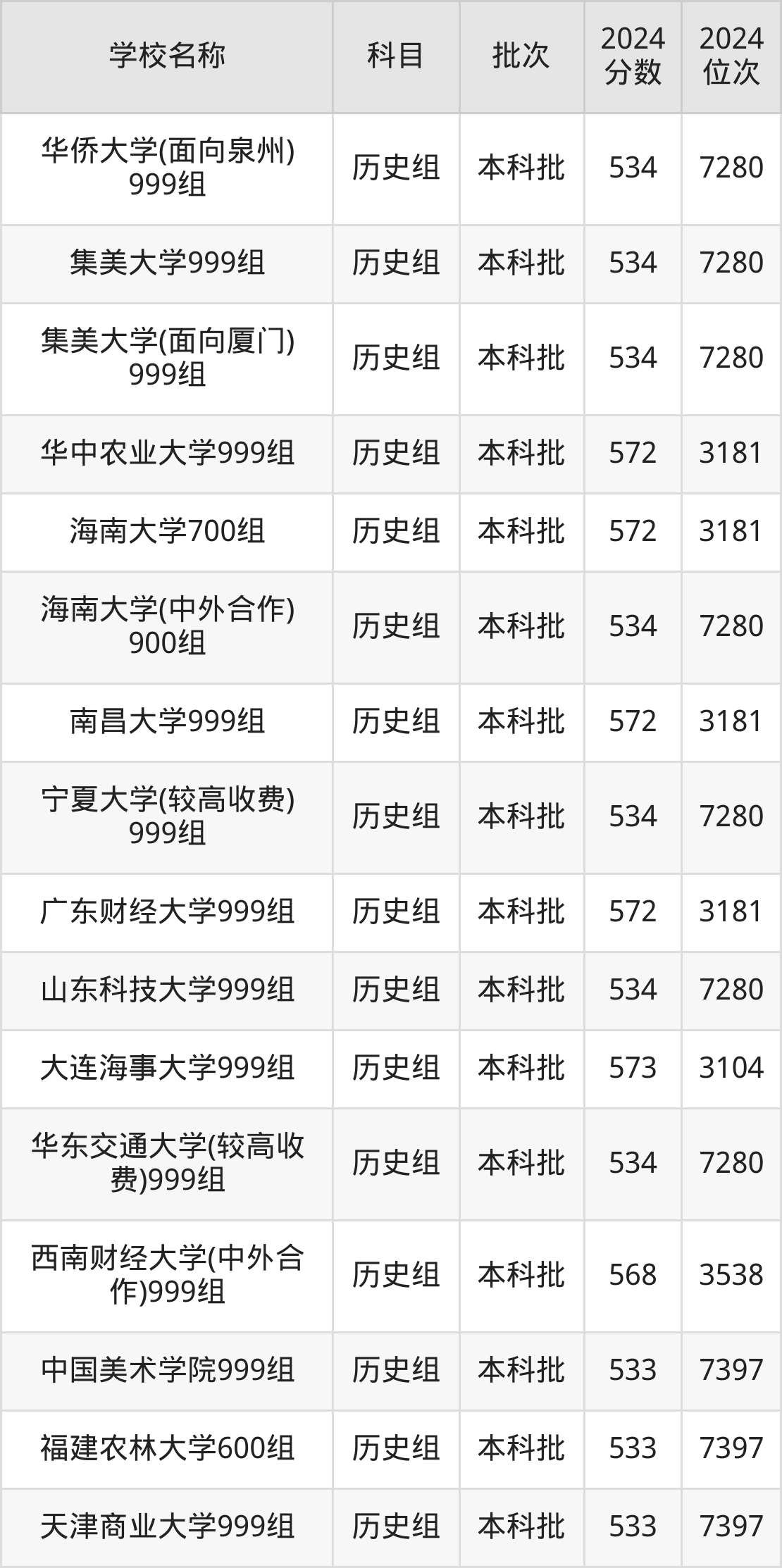 福建高考历史组共有144所重点大学在530到580分之间录取,包含辽宁大学、哈尔滨工程大学、厦门大学(马来西亚分校)、安徽大学、北京化工大学、华北电力大学、广州中医药大学、西南大学(荣昌校区)、湖南大学(艺术类)、郑州大学。