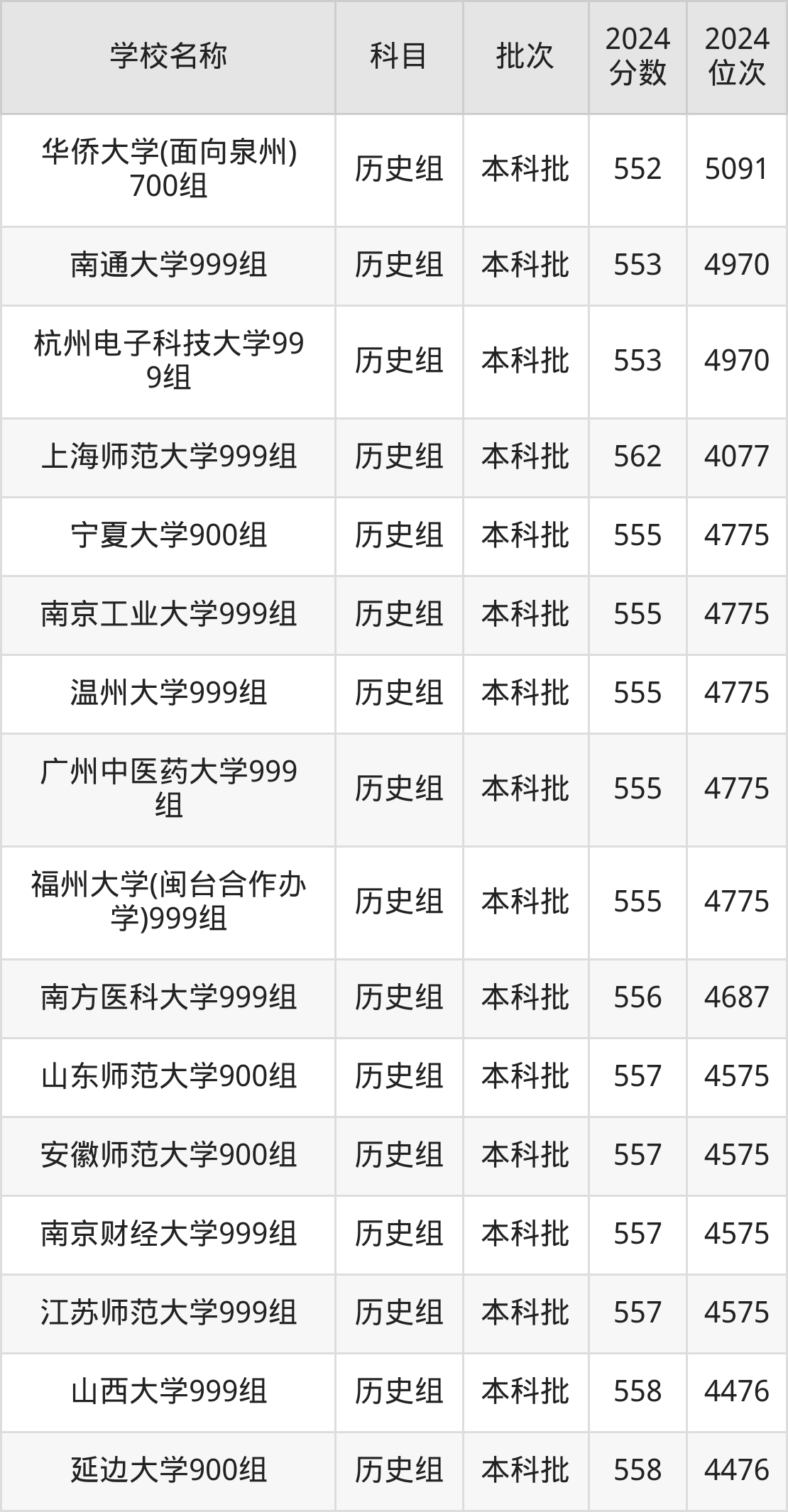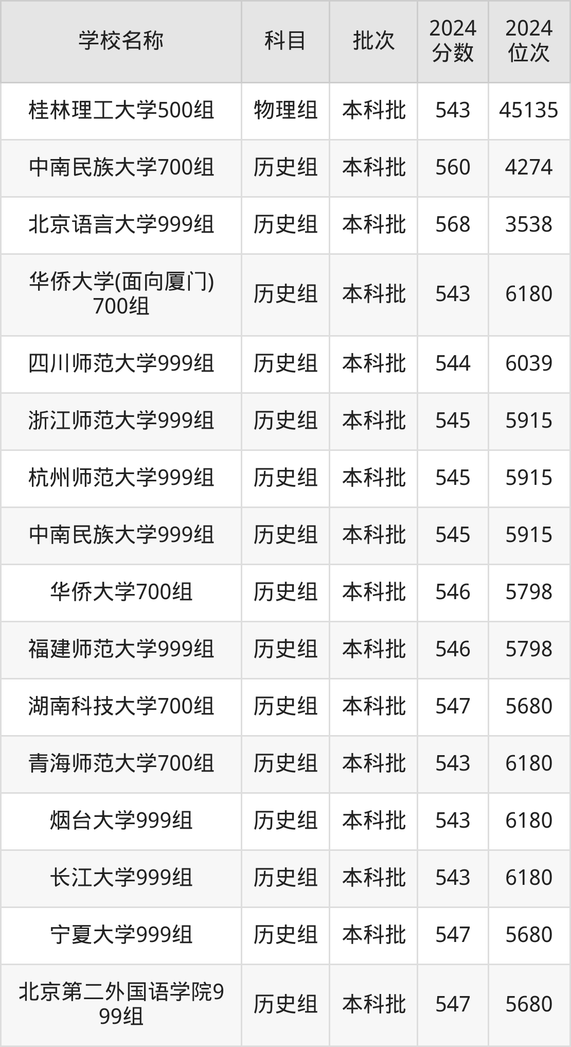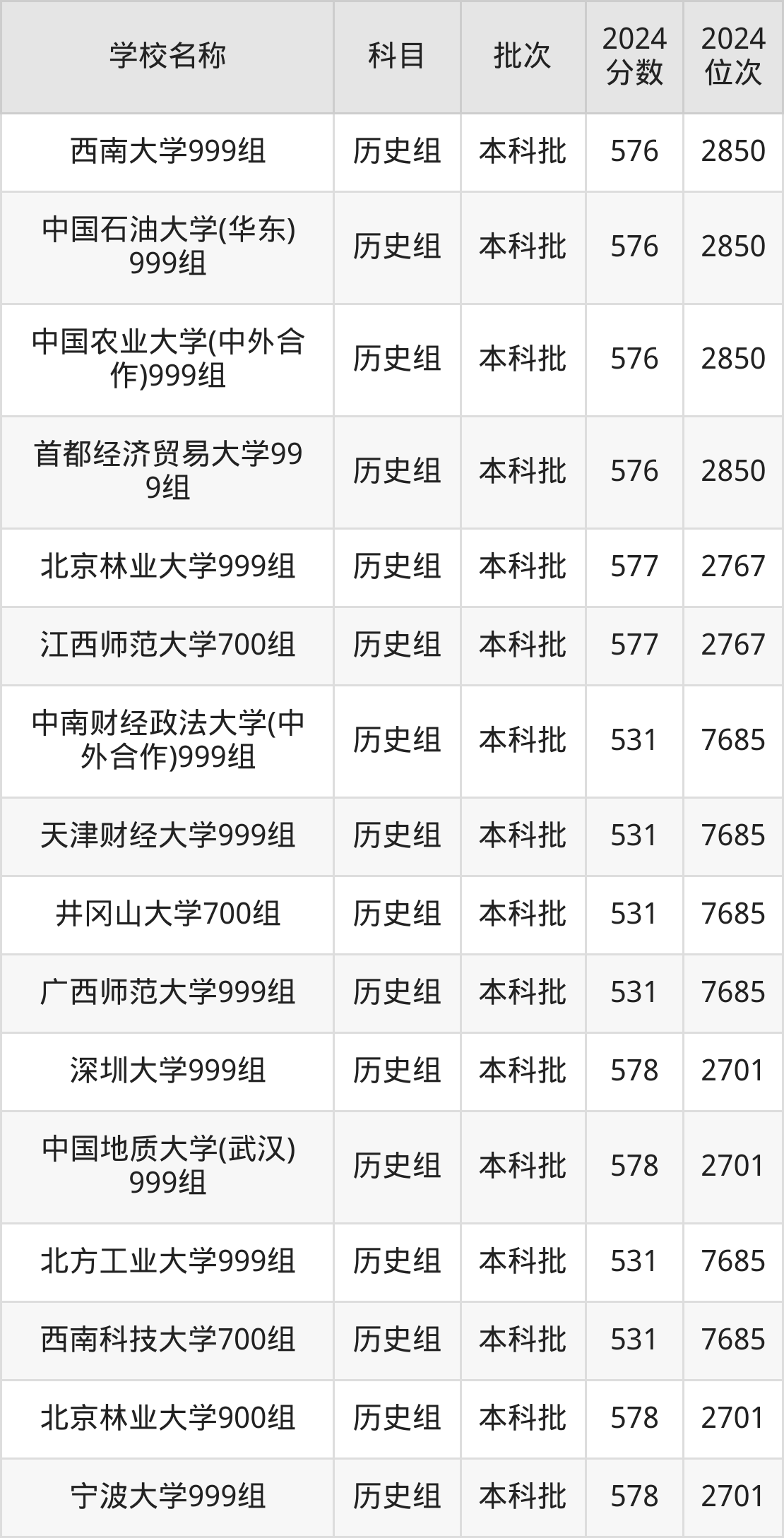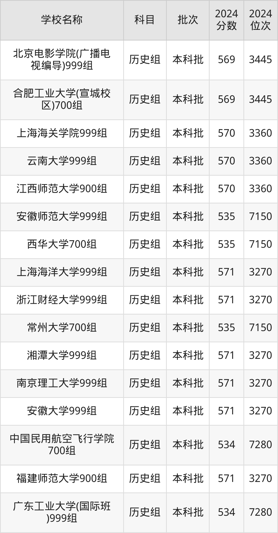 福建高考历史组共有144所重点大学在530到580分之间录取,包含辽宁大学、哈尔滨工程大学、厦门大学(马来西亚分校)、安徽大学、北京化工大学、华北电力大学、广州中医药大学、西南大学(荣昌校区)、湖南大学(艺术类)、郑州大学。