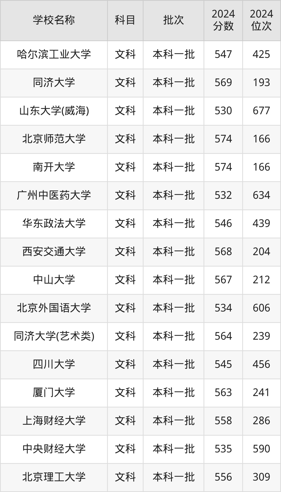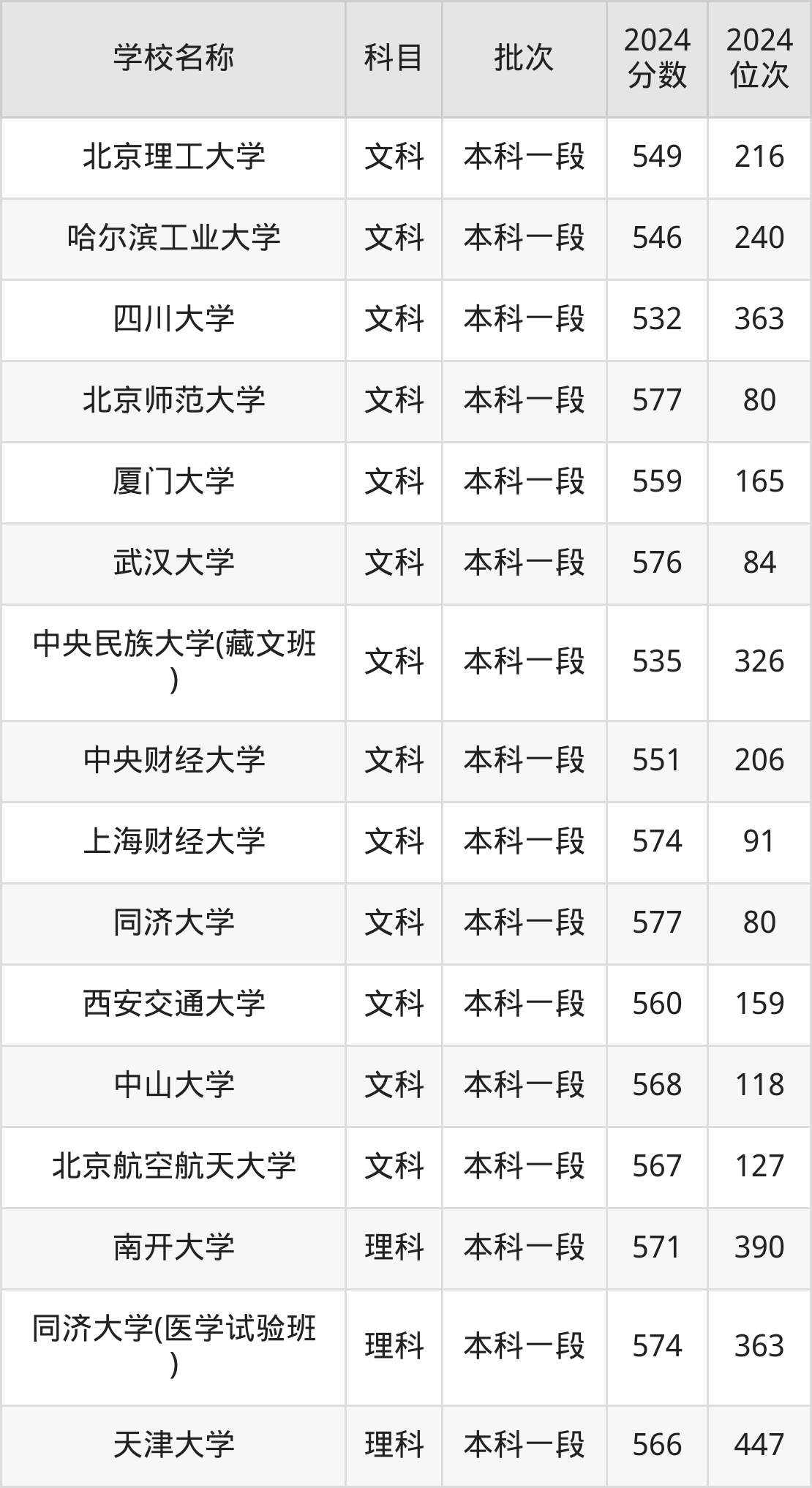 青海高考文科共有13所重点大学在530到580分之间录取,包含北京师范大学、同济大学、武汉大学、上海财经大学、中山大学、北京航空航天大学、西安交通大学、厦门大学、中央财经大学、北京理工大学。