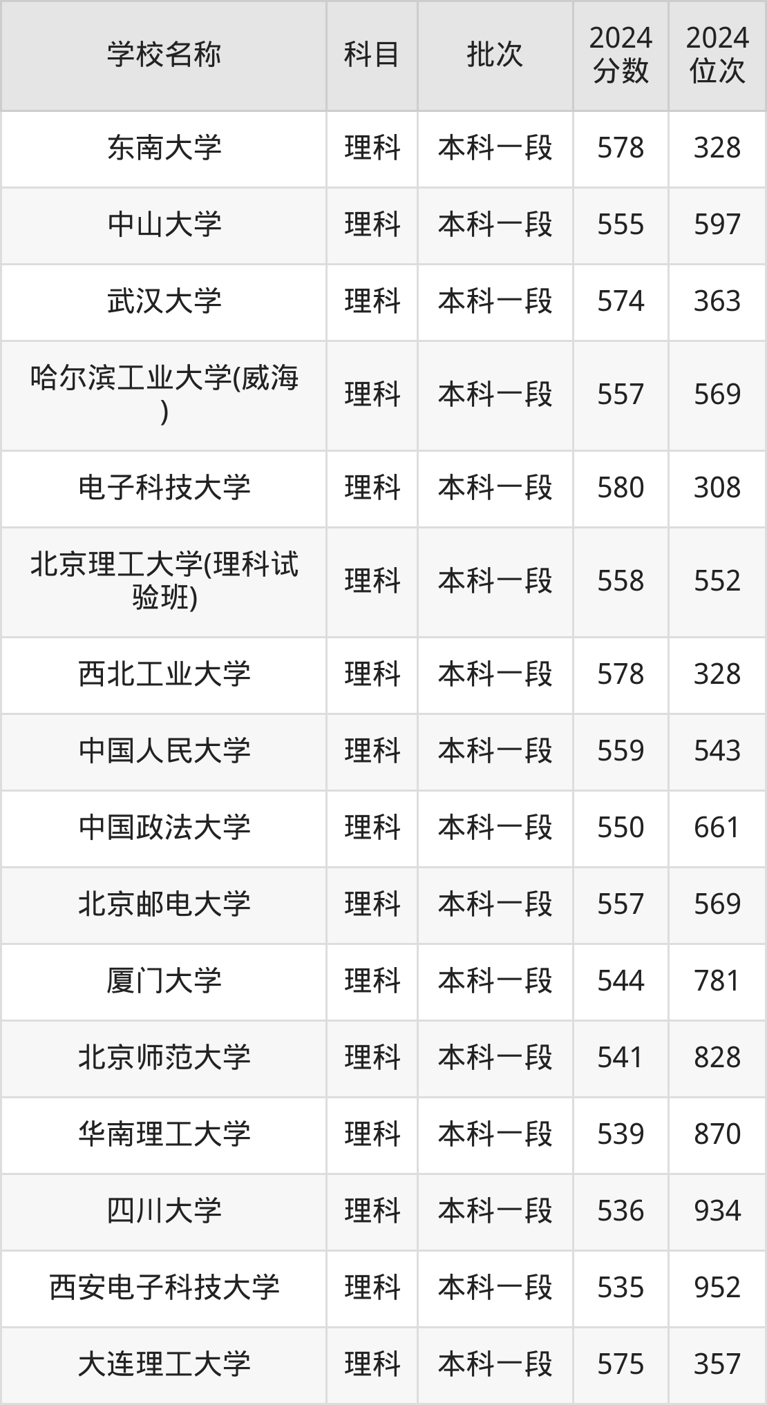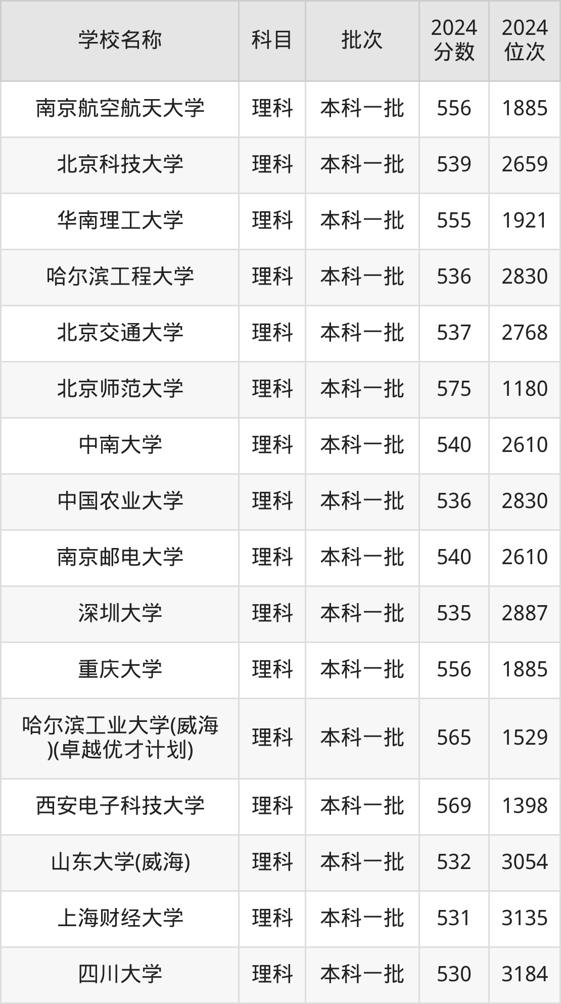 青海高考理科共有21所重点大学在530到580分之间录取,包含电子科技大学、东南大学、西北工业大学、大连理工大学、同济大学(医学试验班)、武汉大学、南开大学、天津大学、中国人民大学、北京理工大学(理科试验班)。