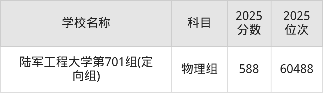 天津高考共有1所军校在570到590分之间录取,包含陆军工程大学。
