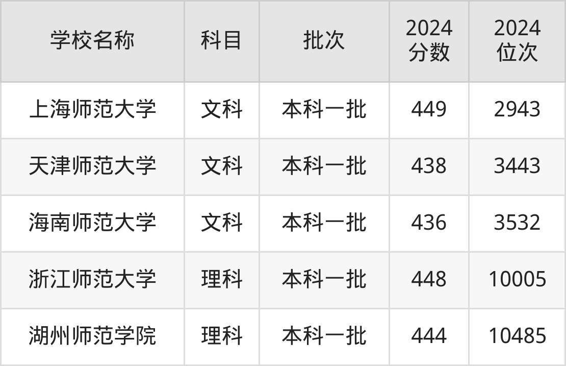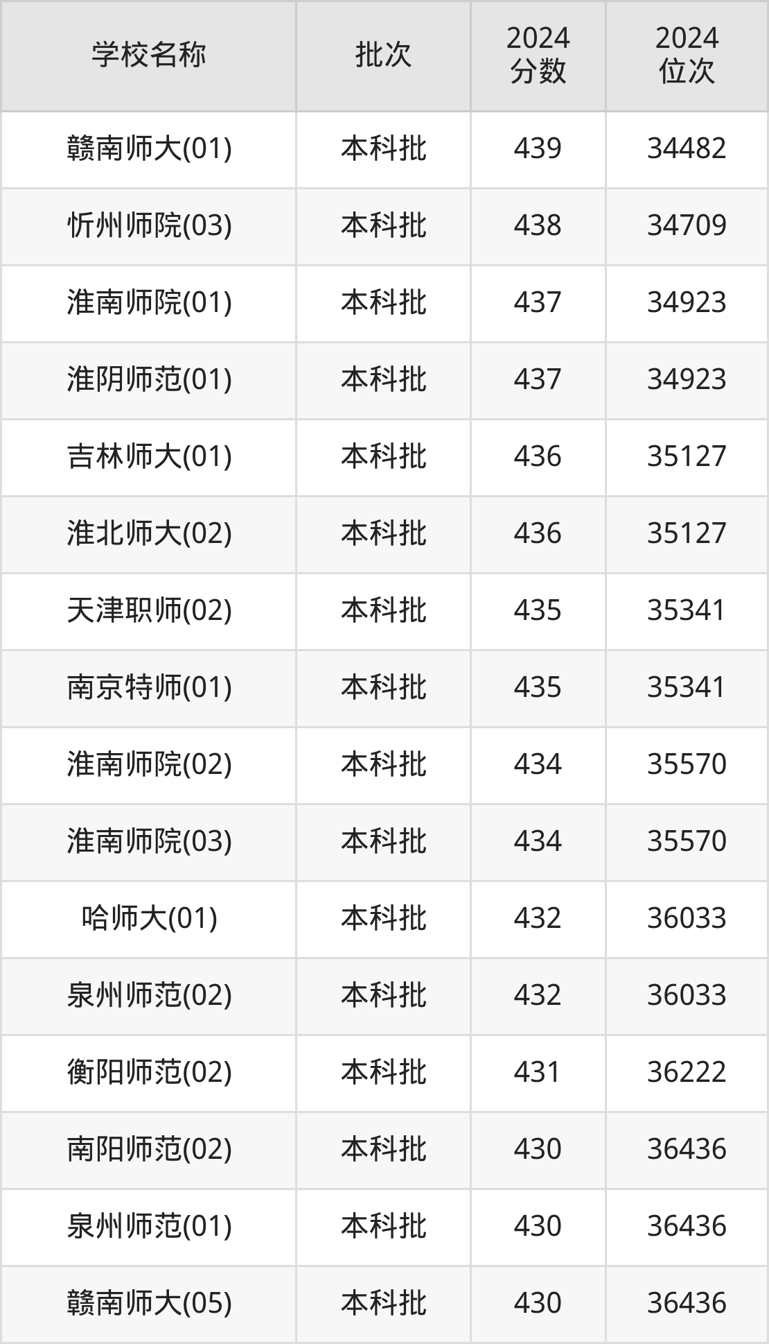 全国各省430到450分能够上的师范大学是不同的。小编以国内部分高考省份为例,为大家带来430到450分的师范大学最低录取分数线汇总,供2025届想报考师范大学的考生同学们查看。