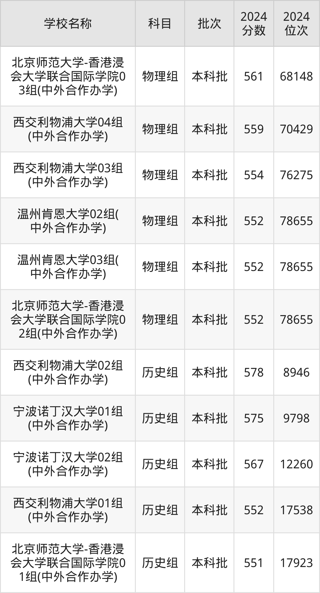 江苏高考历史组共有3所二本民办大学在550到580分之间录取,包含西交利物浦大学、宁波诺丁汉大学、北京师范大学-香港浸会大学联合国际学院。