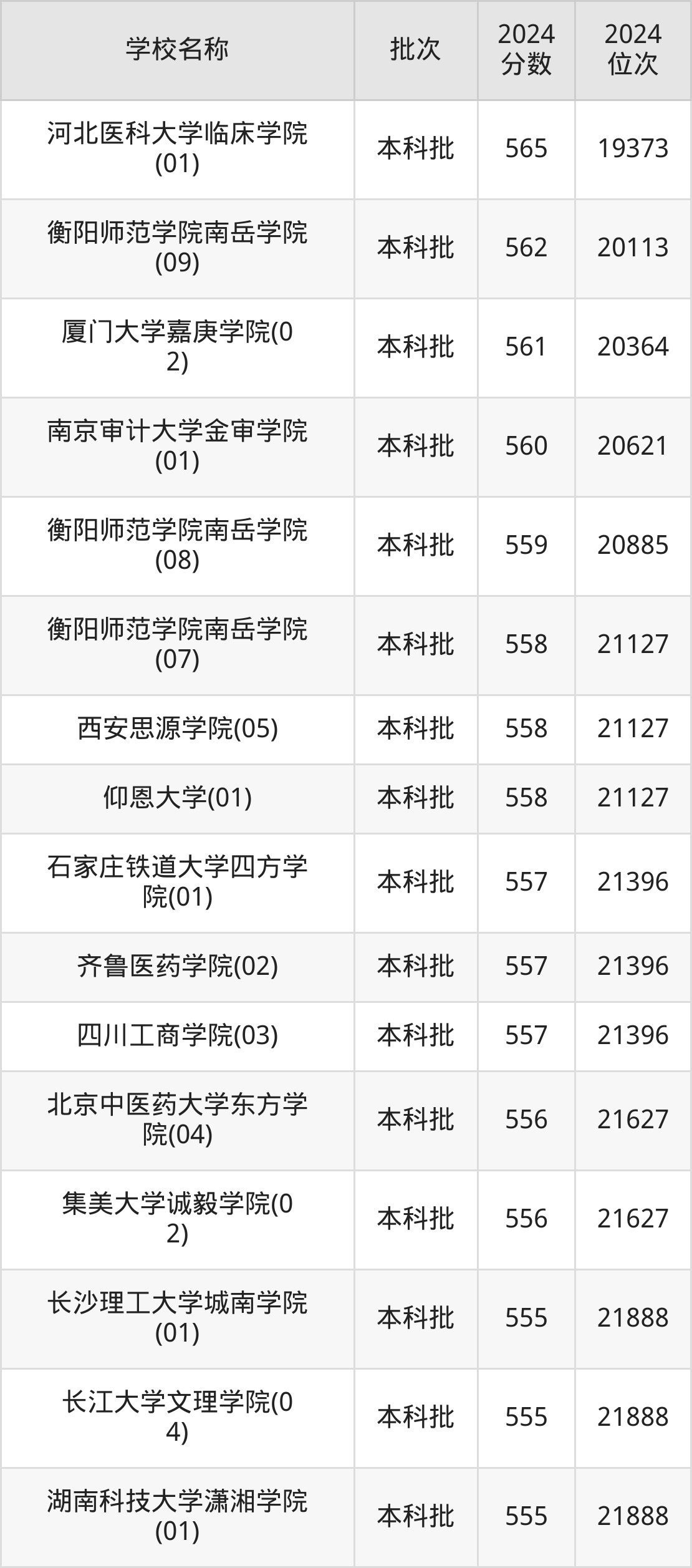 海南高考共有28所二本民办大学在550到580分之间录取,包含河北医科大学临床学院、衡阳师范学院南岳学院、厦门大学嘉庚学院、南京审计大学金审学院、西安思源学院、仰恩大学、石家庄铁道大学四方学院、齐鲁医药学院、四川工商学院、北京中医药大学东方学院。