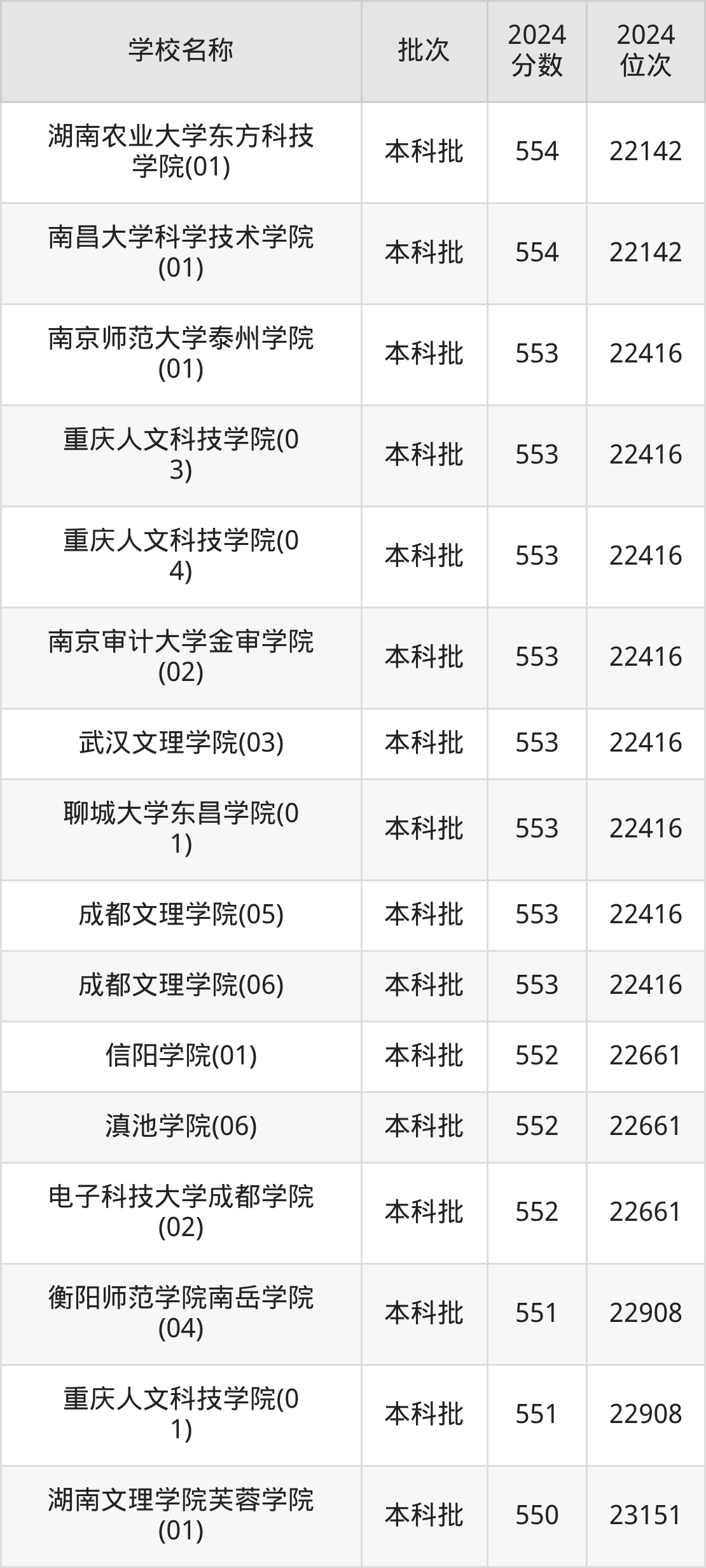 一、550到580分的二本民办大学最低分一览表