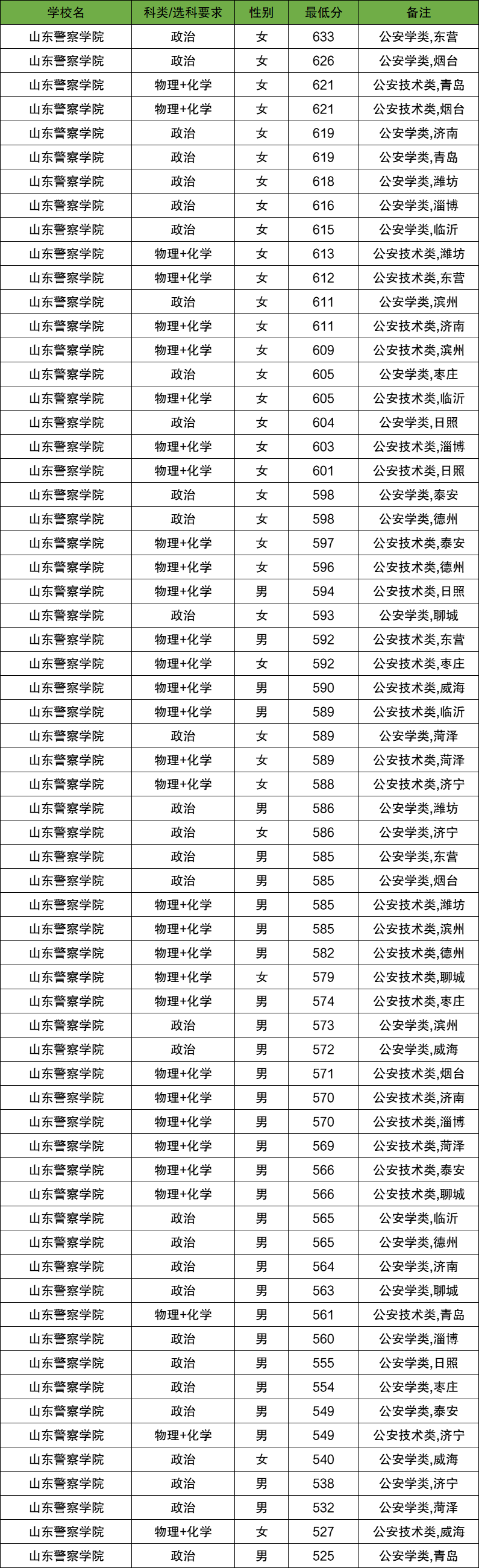 2025年山东警察学院提前批录取分数线是525分到633分,录取最低为男生必选政治、录取最高为女生必选政治。