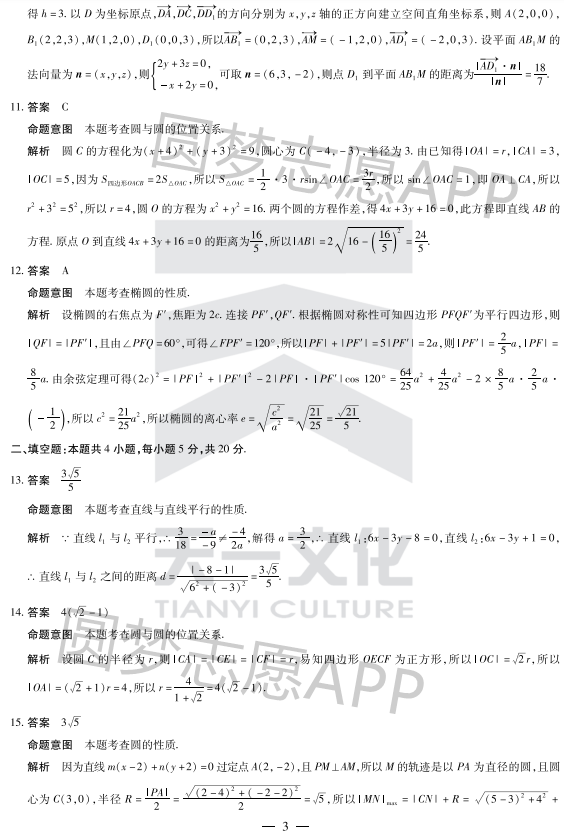 二、天一大联考2022-2023高二期中考试数学答案专版