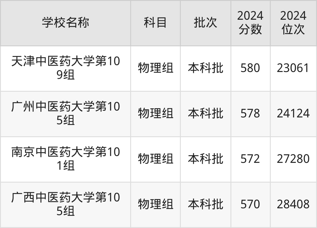 湖南高考物理组共有4所中医药大学在570到580分之间录取,包含天津中医药大学、广州中医药大学、南京中医药大学、广西中医药大学。