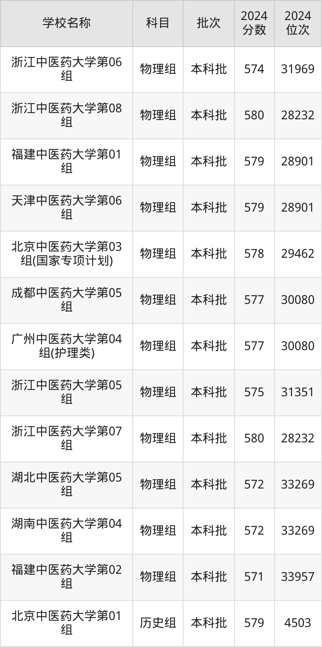 湖北高考历史组共有1所中医药大学在570到580分之间录取,包含北京中医药大学。