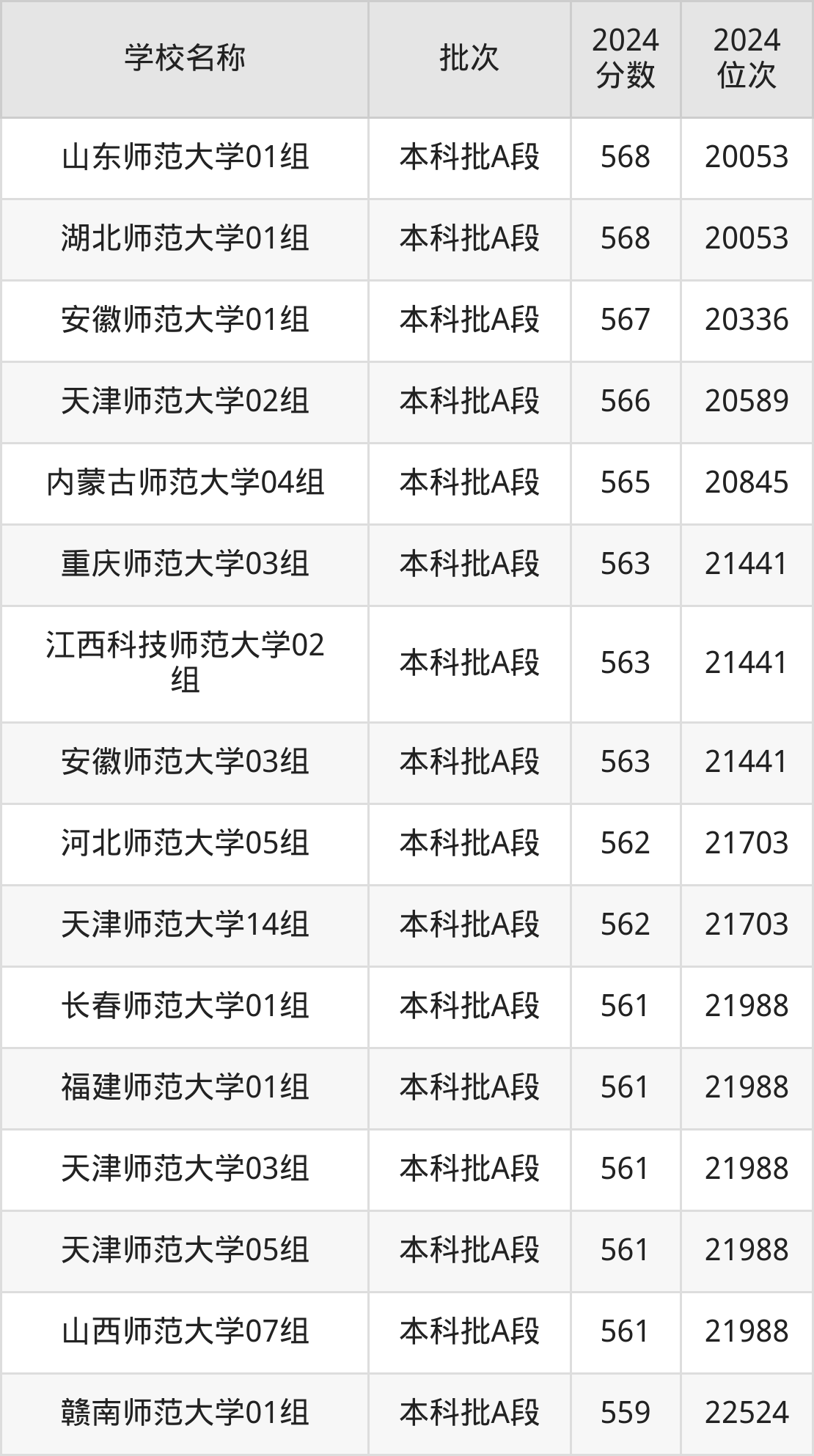 天津高考共有24所师范大学在550到580分之间录取,包含杭州师范大学、云南师范大学、四川师范大学、山东师范大学、天津师范大学、广西师范大学、内蒙古师范大学、吉林师范大学、重庆师范大学、安徽师范大学。