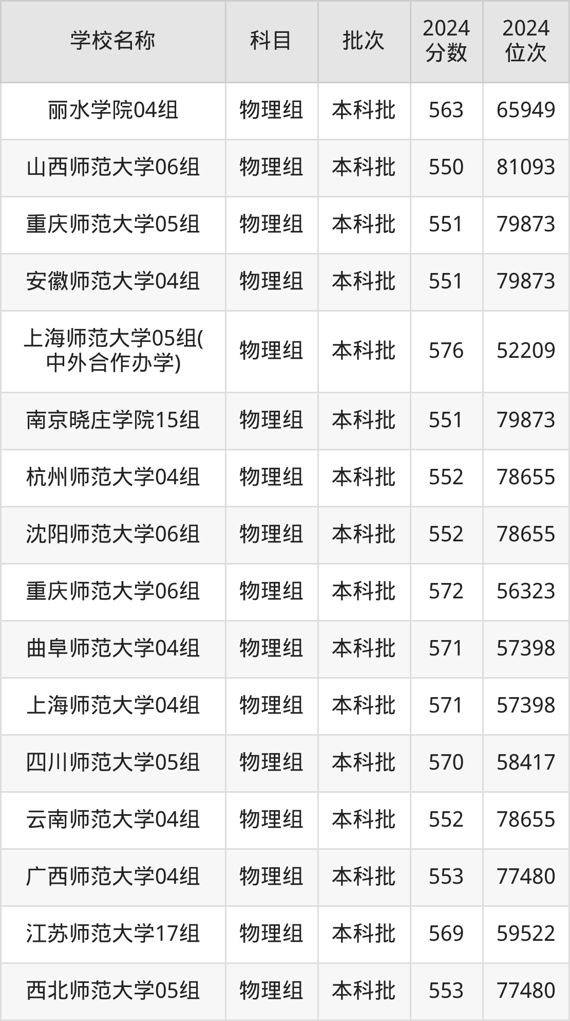 江苏高考物理组共有17所师范大学在550到580分之间录取,包含上海师范大学、重庆师范大学、曲阜师范大学、四川师范大学、江苏师范大学、天津师范大学、丽水学院、江苏第二师范学院、南京晓庄学院、杭州师范大学。