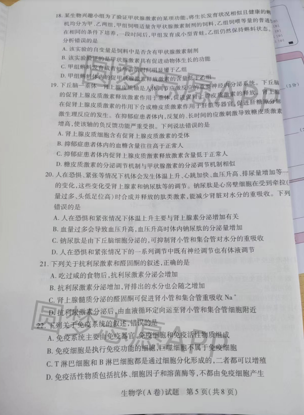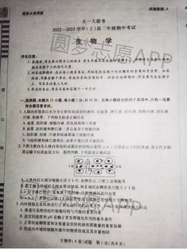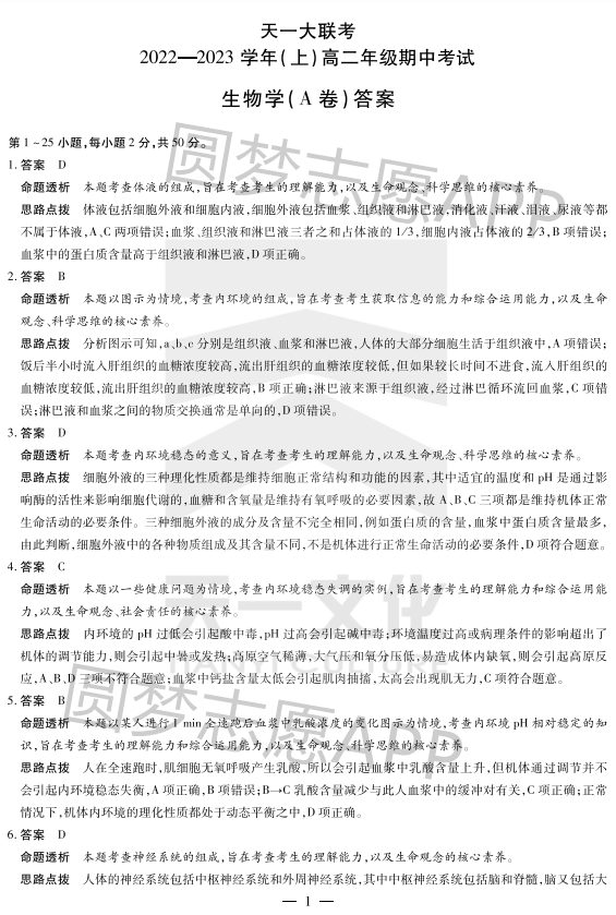 以下为天一大联考2022-2023高二期中考试生物试卷及参考答案解析汇总详细内容: