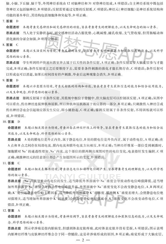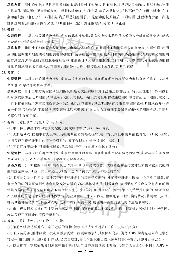 二、天一大联考2022-2023高二期中考试生物答案解析