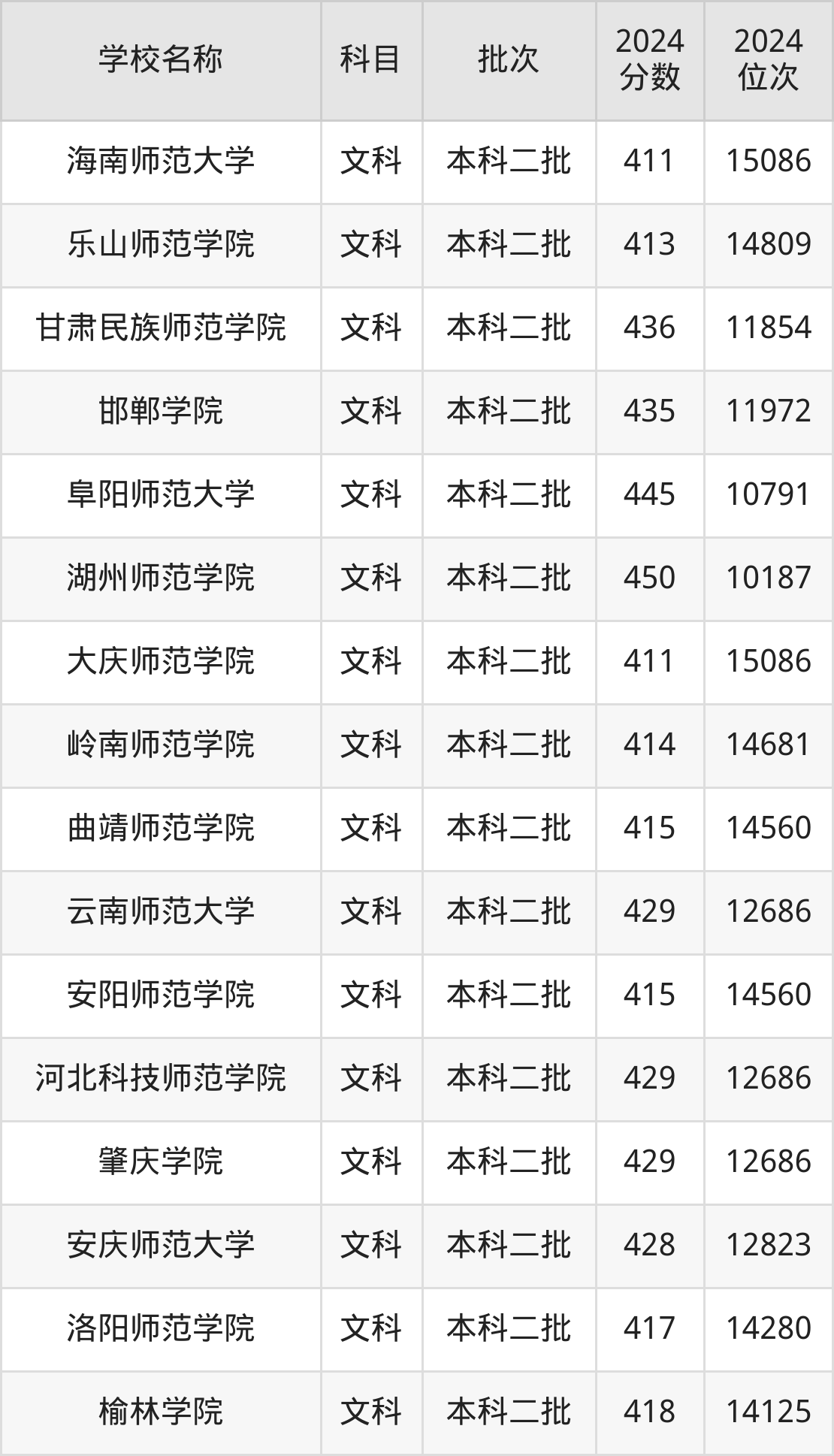 全国各省410到450分能够上的师范大学是不同的。小编以国内部分高考省份为例,为大家带来410到450分的师范大学最低录取分数线汇总,供2025届想报考师范大学的考生同学们查看。