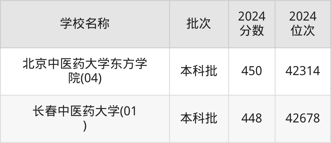北京高考共有2所中医药大学在410到450分之间录取,包含北京中医药大学东方学院、长春中医药大学。
