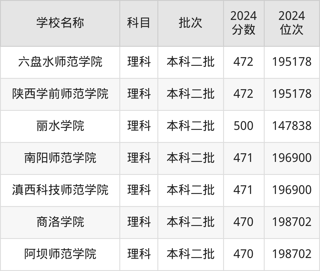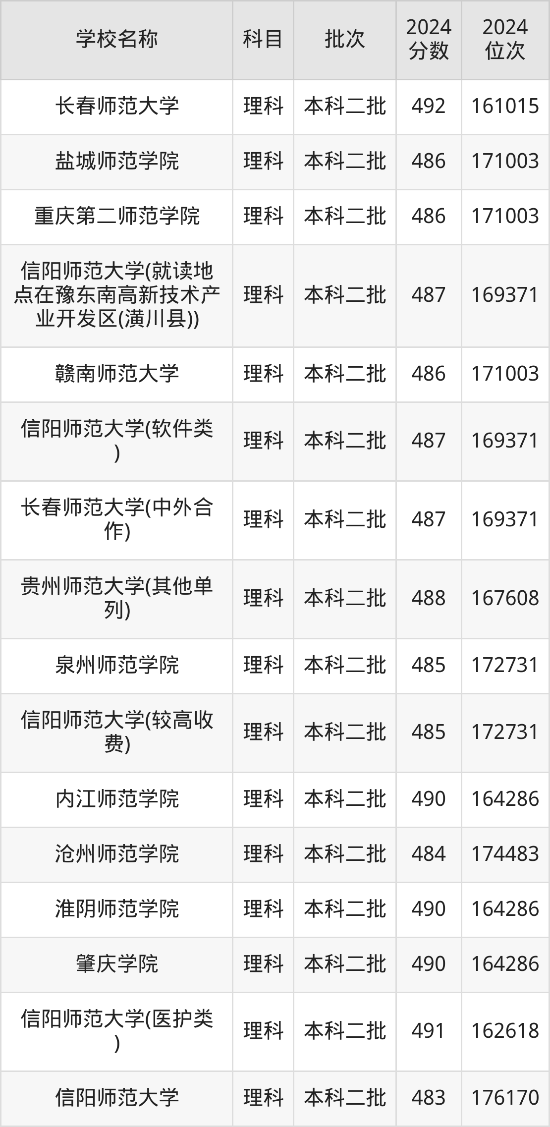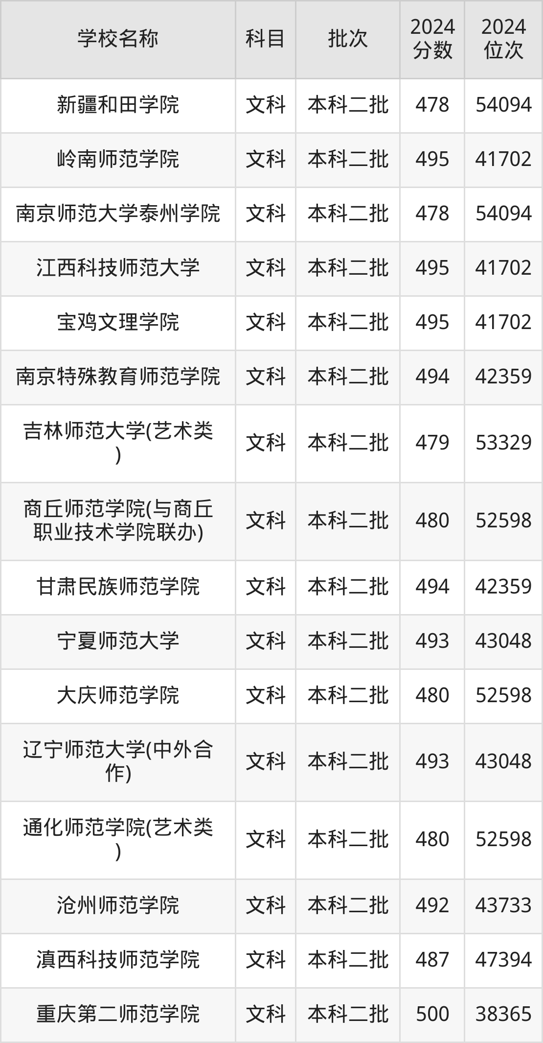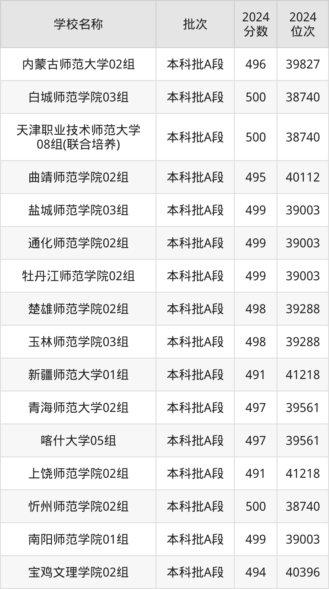 山西高考理科共有24所师范大学在470到500分之间录取,包含广东技术师范大学、重庆师范大学、成都师范学院、天津职业技术师范大学、湖北师范大学、西北师范大学、江苏师范大学、湖北第二师范学院、重庆第二师范学院、辽宁师范大学。