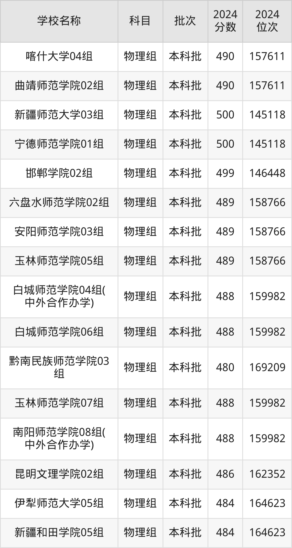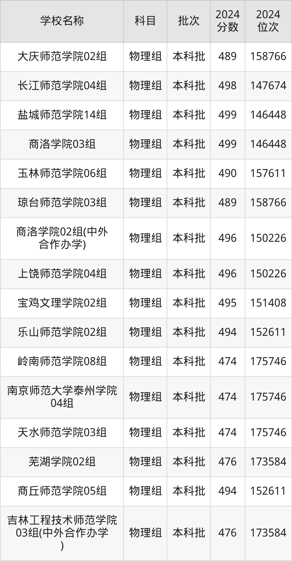 江苏高考物理组共有43所师范大学在470到500分之间录取,包含新疆师范大学、宁德师范学院、盐城师范学院、商洛学院、邯郸学院、长江师范学院、上饶师范学院、宝鸡文理学院、乐山师范学院、商丘师范学院。