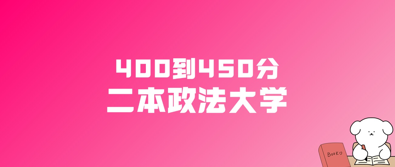 400到450分的二本政法大学有广西警察学院、新疆政法学院、吉林警察学院、新疆警察学院、湖南警察学院、民政职业大学、山西警察学院、陕西警察学院、中国劳动关系学院、山东政法学院等。