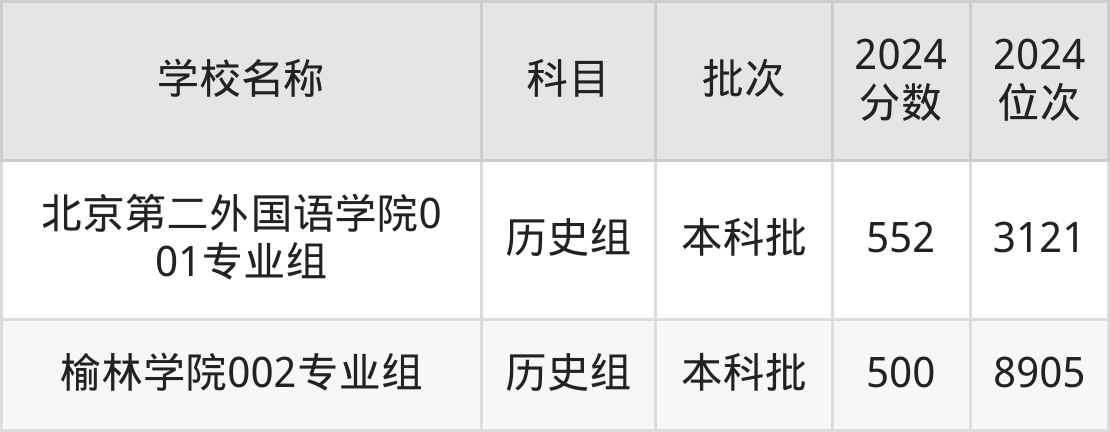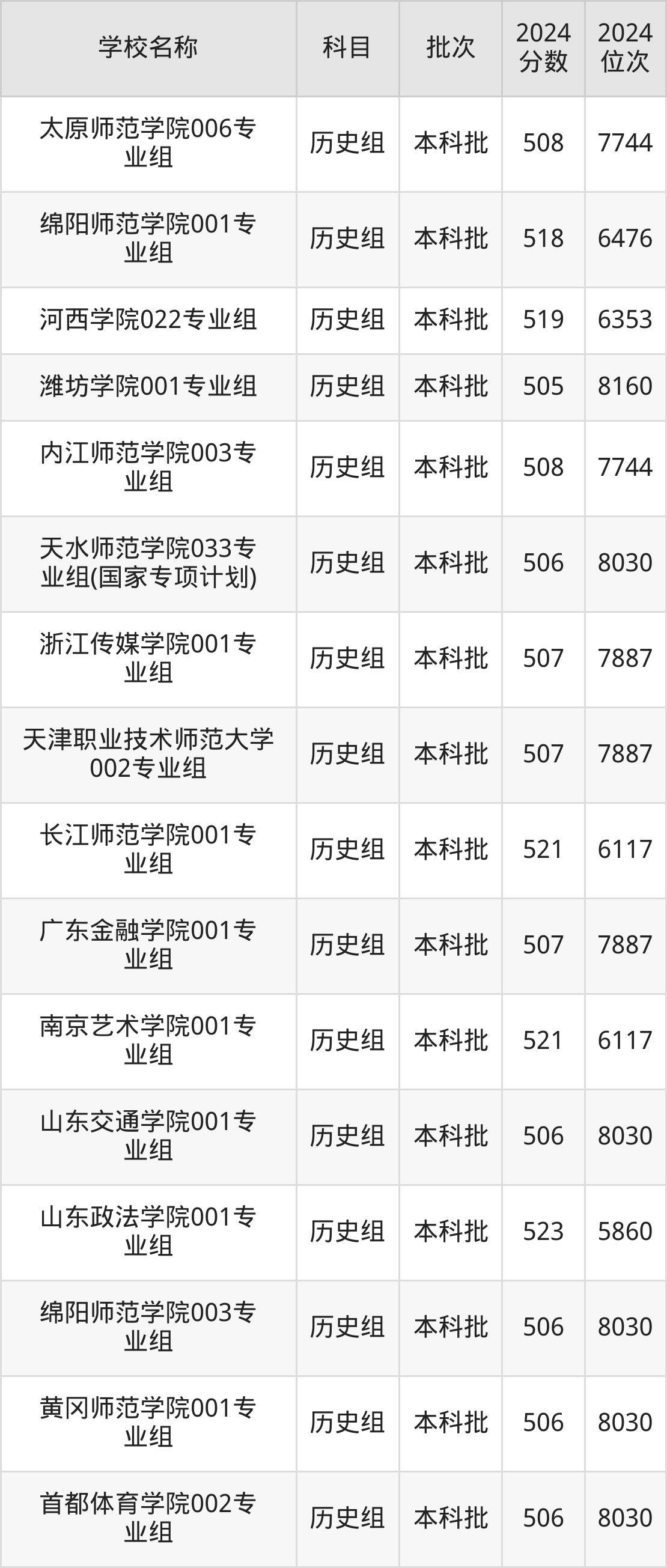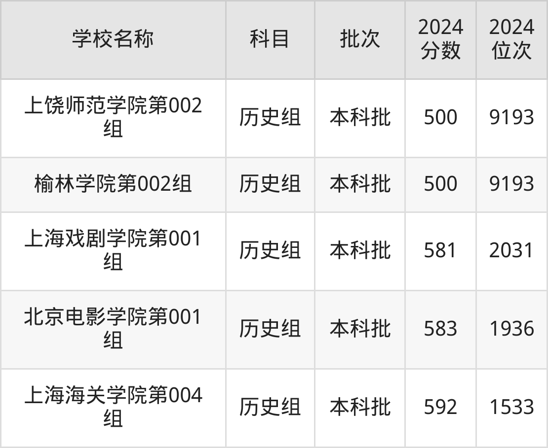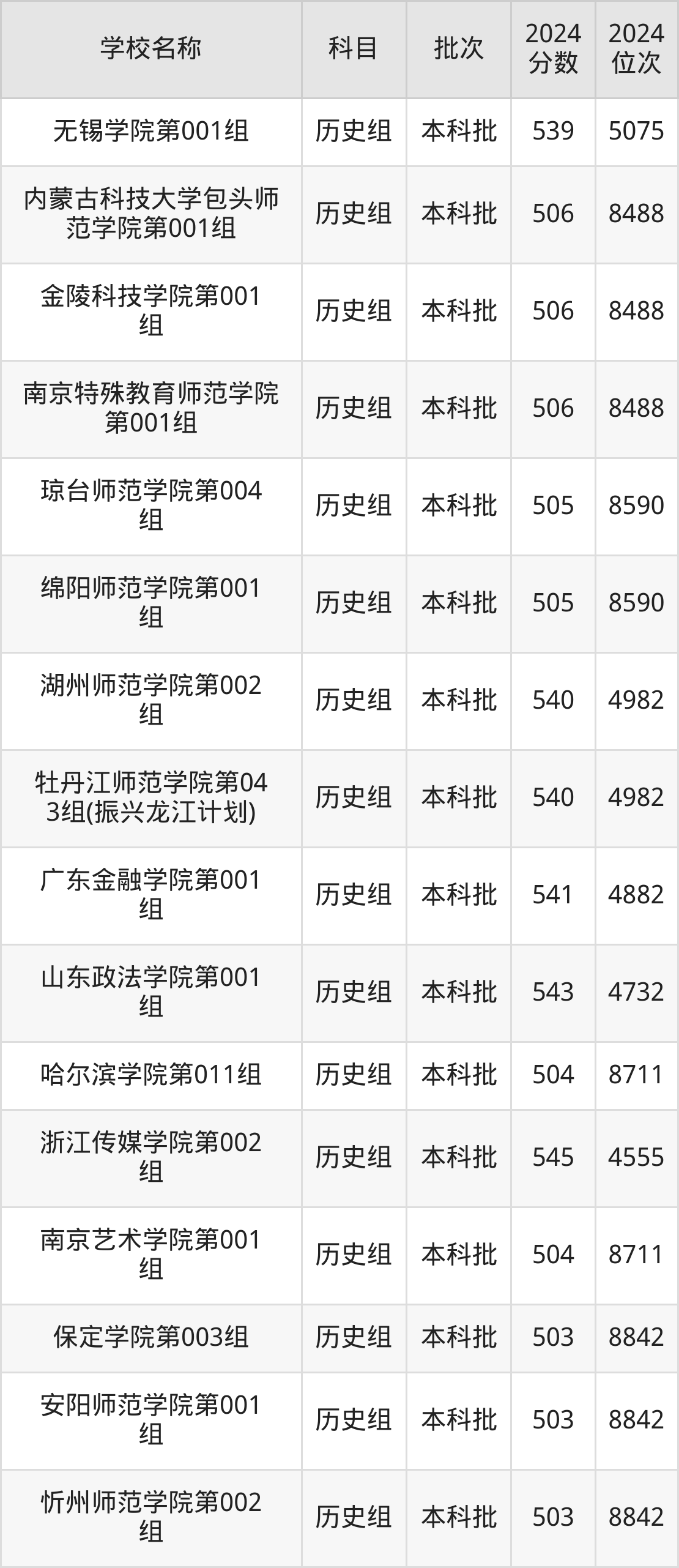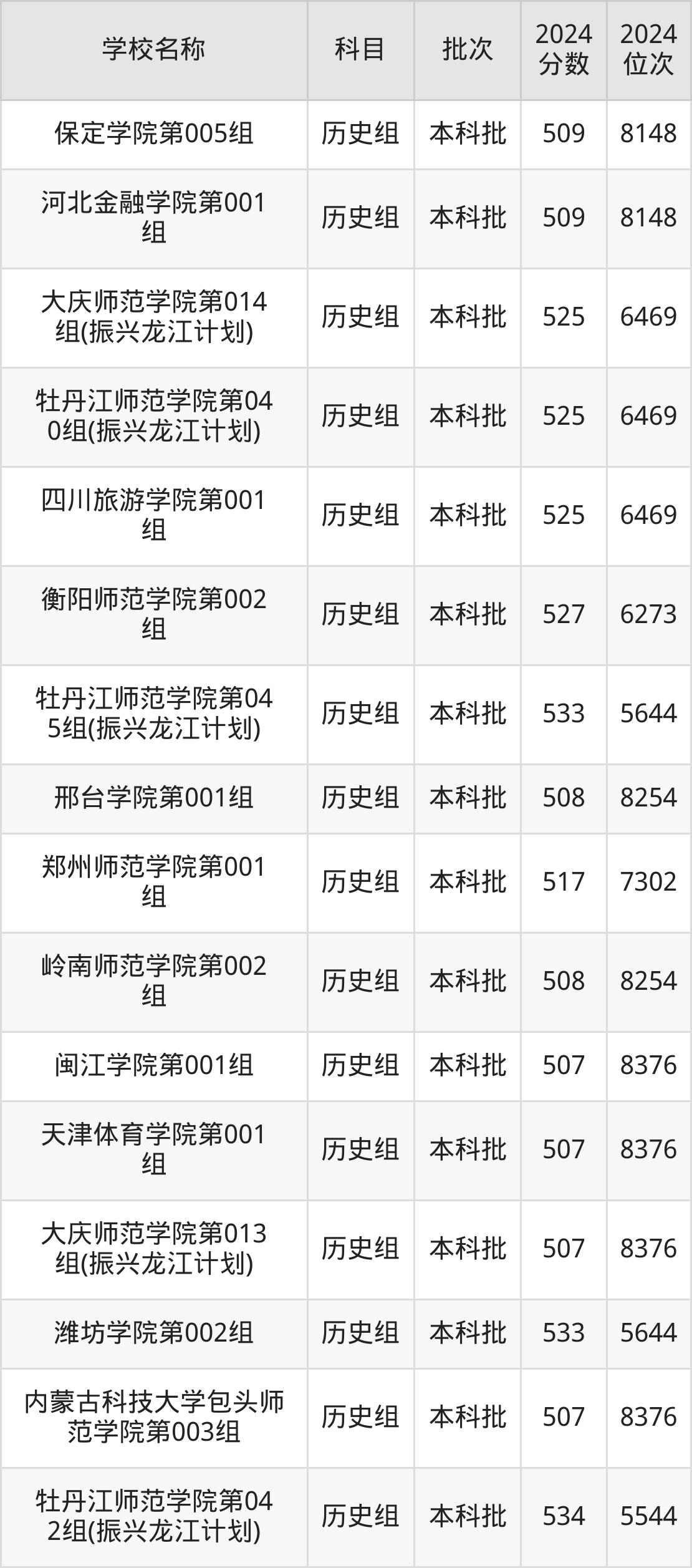黑龙江高考历史组共有59所二本公办大学在500到600分之间录取,包含上海海关学院、北京电影学院、上海戏剧学院、上海政法学院、中国戏曲学院、北京第二外国语学院、上海立信会计金融学院、牡丹江师范学院、北京印刷学院、北京物资学院。