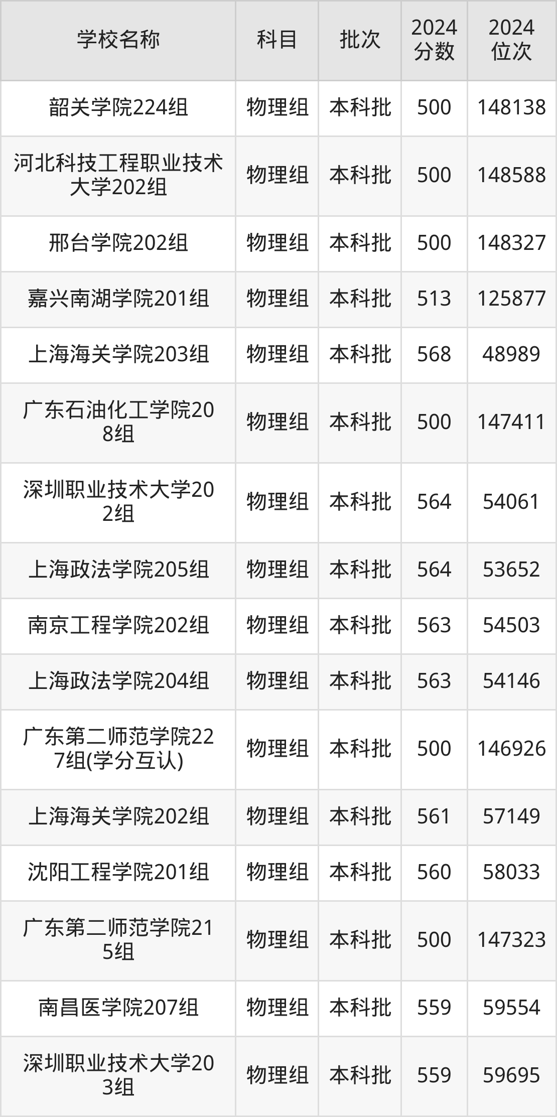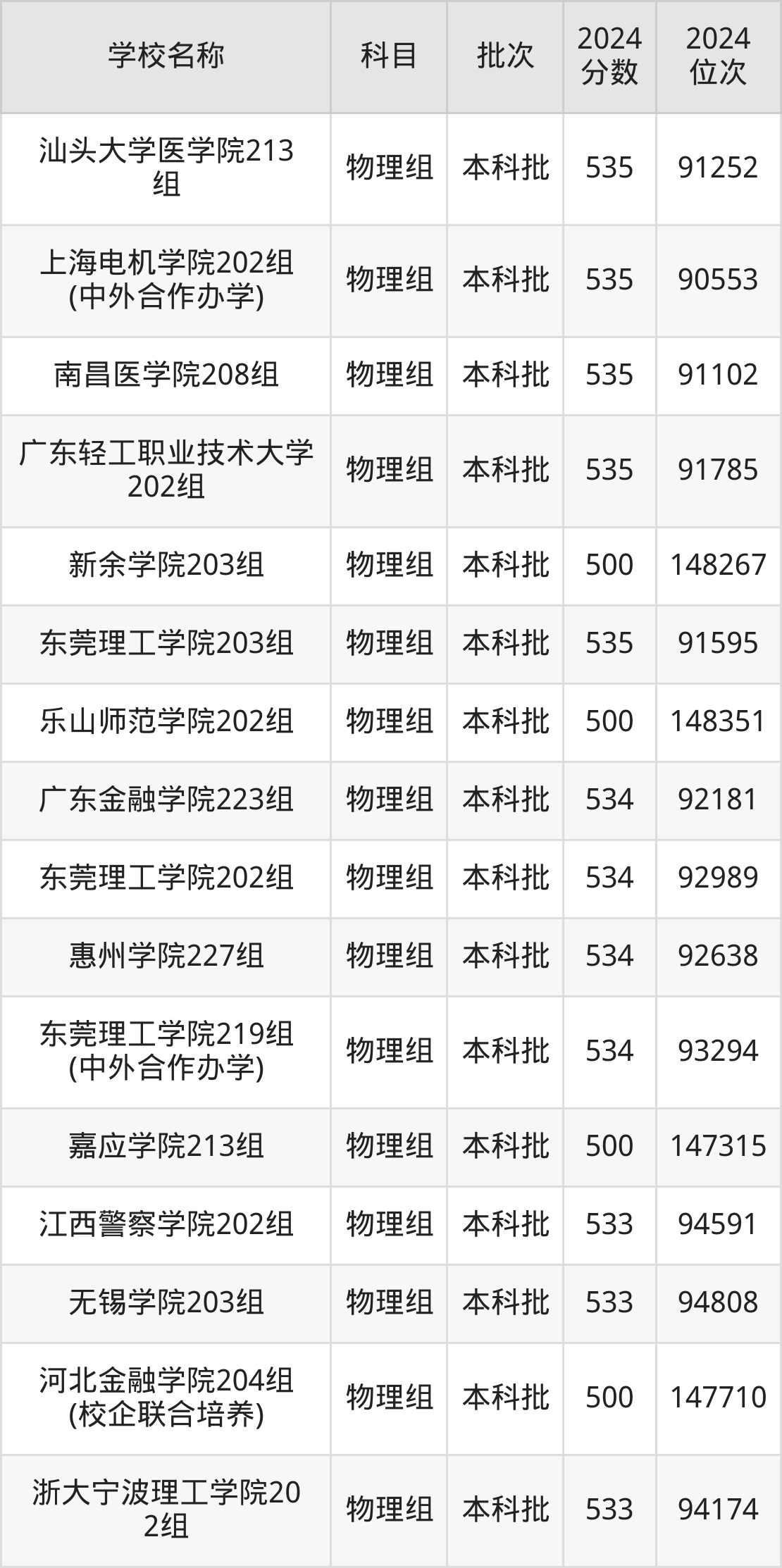 广东高考物理组共有177所二本公办大学在500到600分之间录取,包含汕头大学医学院、北京电影学院、上海政法学院、深圳职业技术大学、北京第二外国语学院、上海海关学院、南京工程学院、沈阳工程学院、南昌医学院、东莞理工学院。