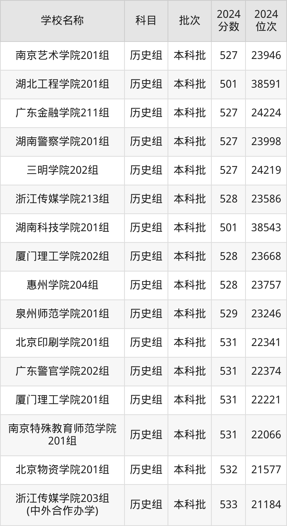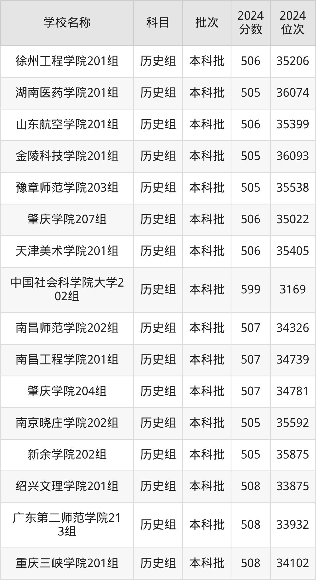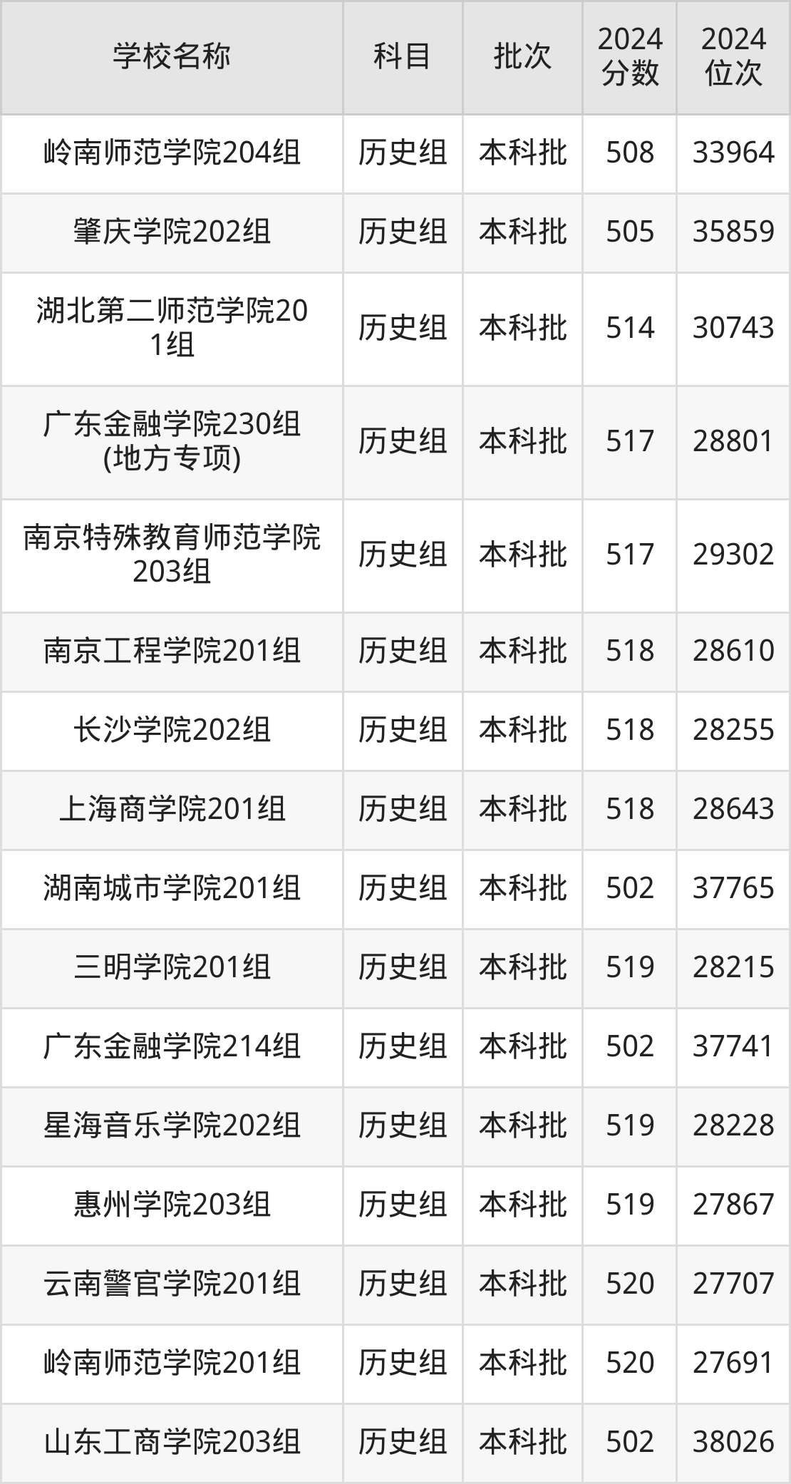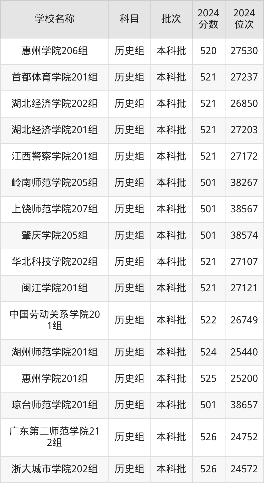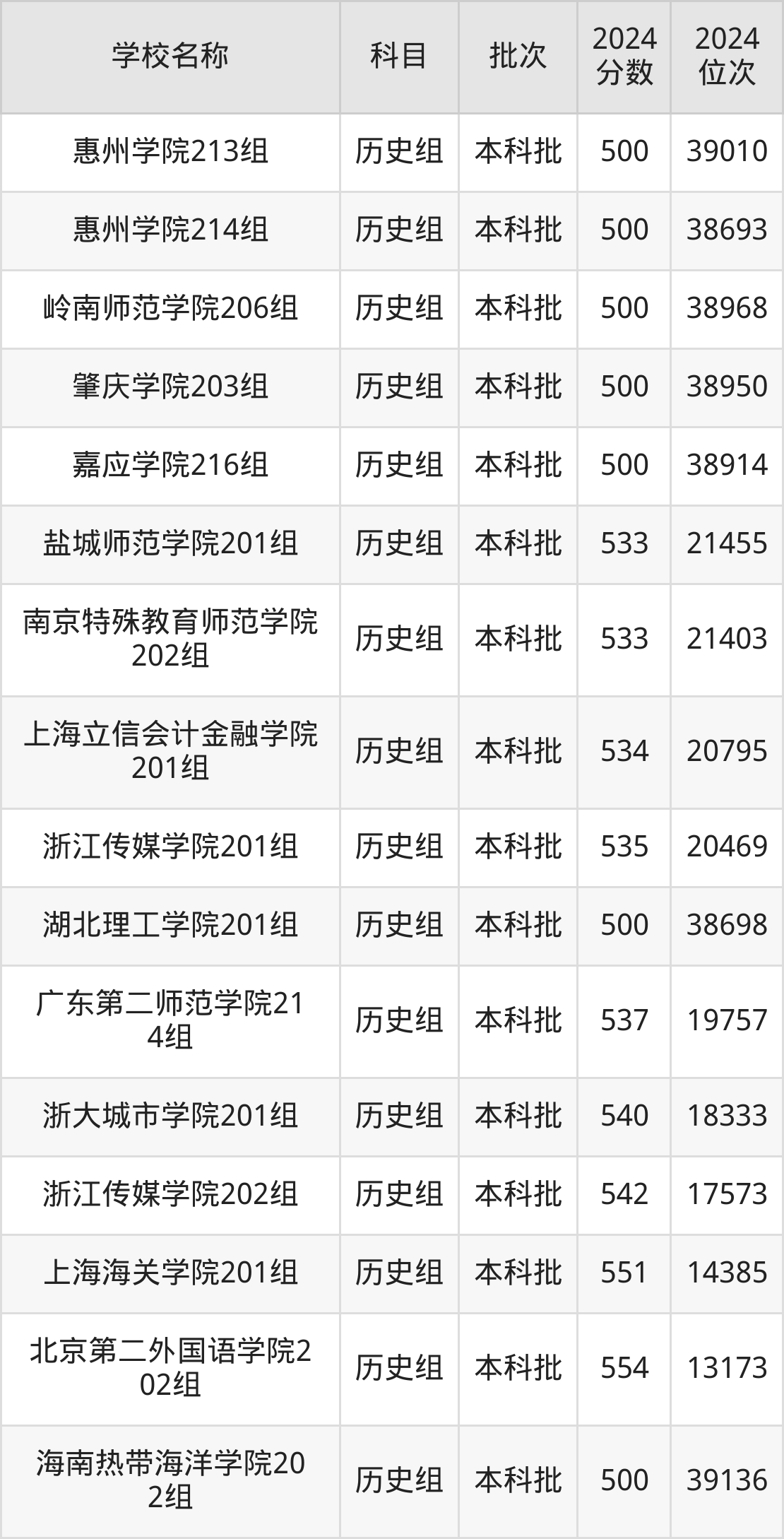 广东高考历史组共有101所二本公办大学在500到600分之间录取,包含中国社会科学院大学、北京电影学院、上海政法学院、北京第二外国语学院、上海戏剧学院、中国戏曲学院、上海海关学院、浙江传媒学院、浙大城市学院、广东第二师范学院。