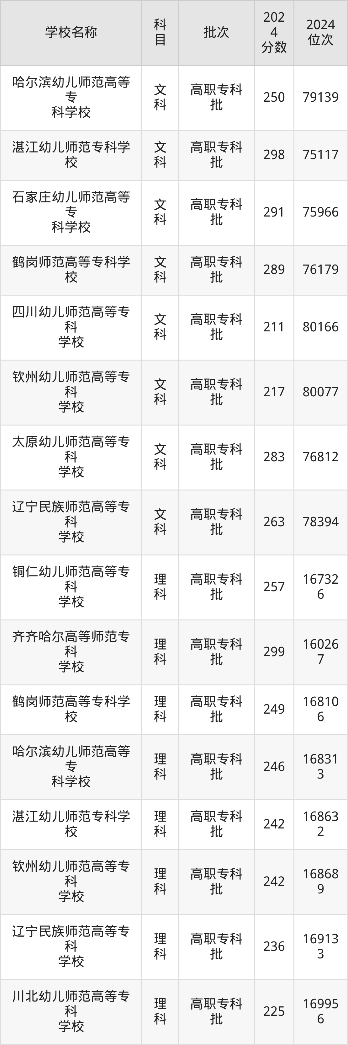 陕西高考文科共有8所师范大学在200到300分之间录取,包含湛江幼儿师范专科学校、石家庄幼儿师范高等专科学校、鹤岗师范高等专科学校、太原幼儿师范高等专科学校、辽宁民族师范高等专科学校、哈尔滨幼儿师范高等专科学校、钦州幼儿师范高等专科学校、四川幼儿师范高等专科学校。