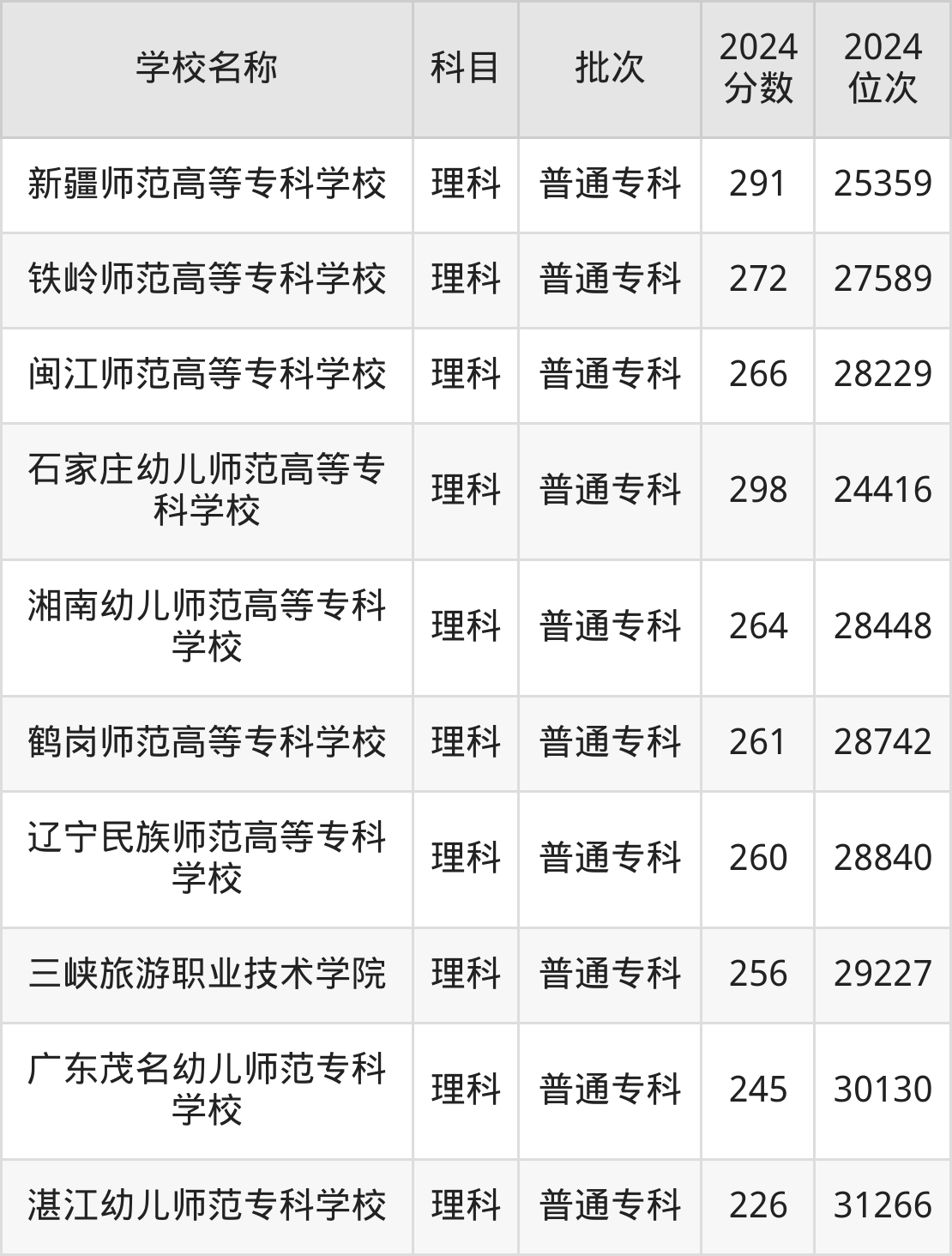 陕西高考理科共有10所师范大学在200到300分之间录取,包含齐齐哈尔高等师范专科学校、闽江师范高等专科学校、锦州师范高等专科学校、铜仁幼儿师范高等专科学校、鹤岗师范高等专科学校、哈尔滨幼儿师范高等专科学校、湛江幼儿师范专科学校、钦州幼儿师范高等专科学校、辽宁民族师范高等专科学校、川北幼儿师范高等专科学校。