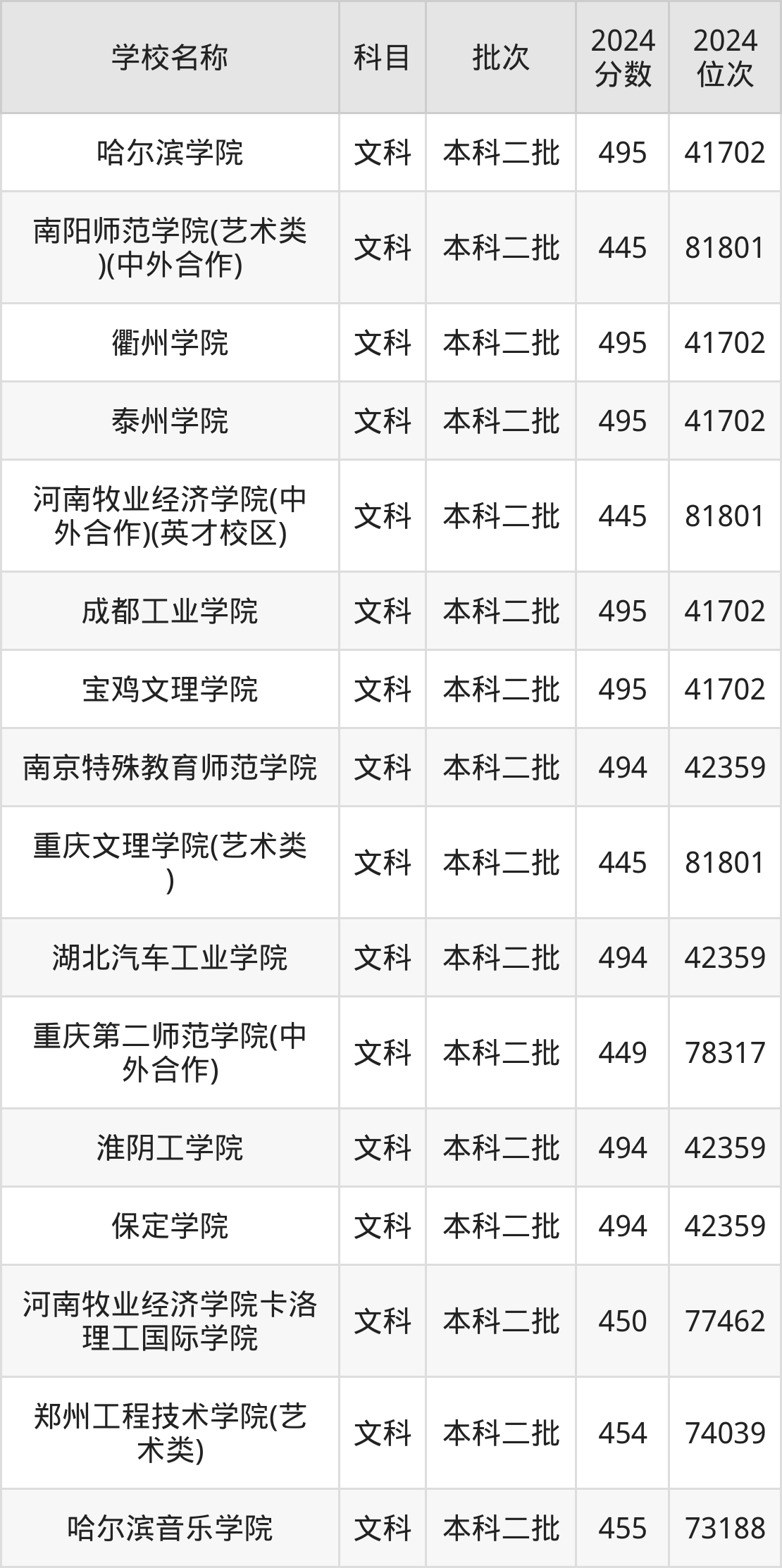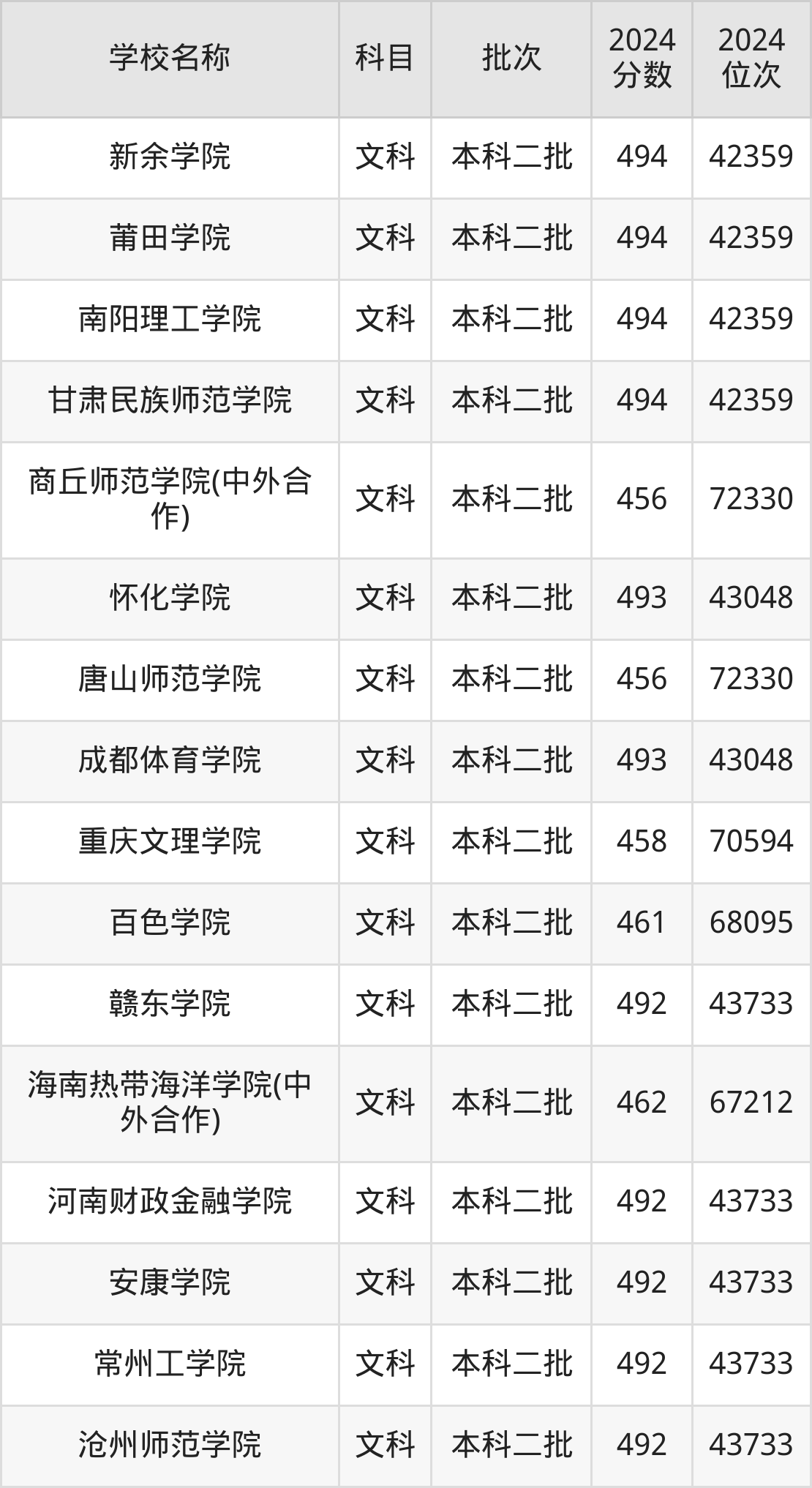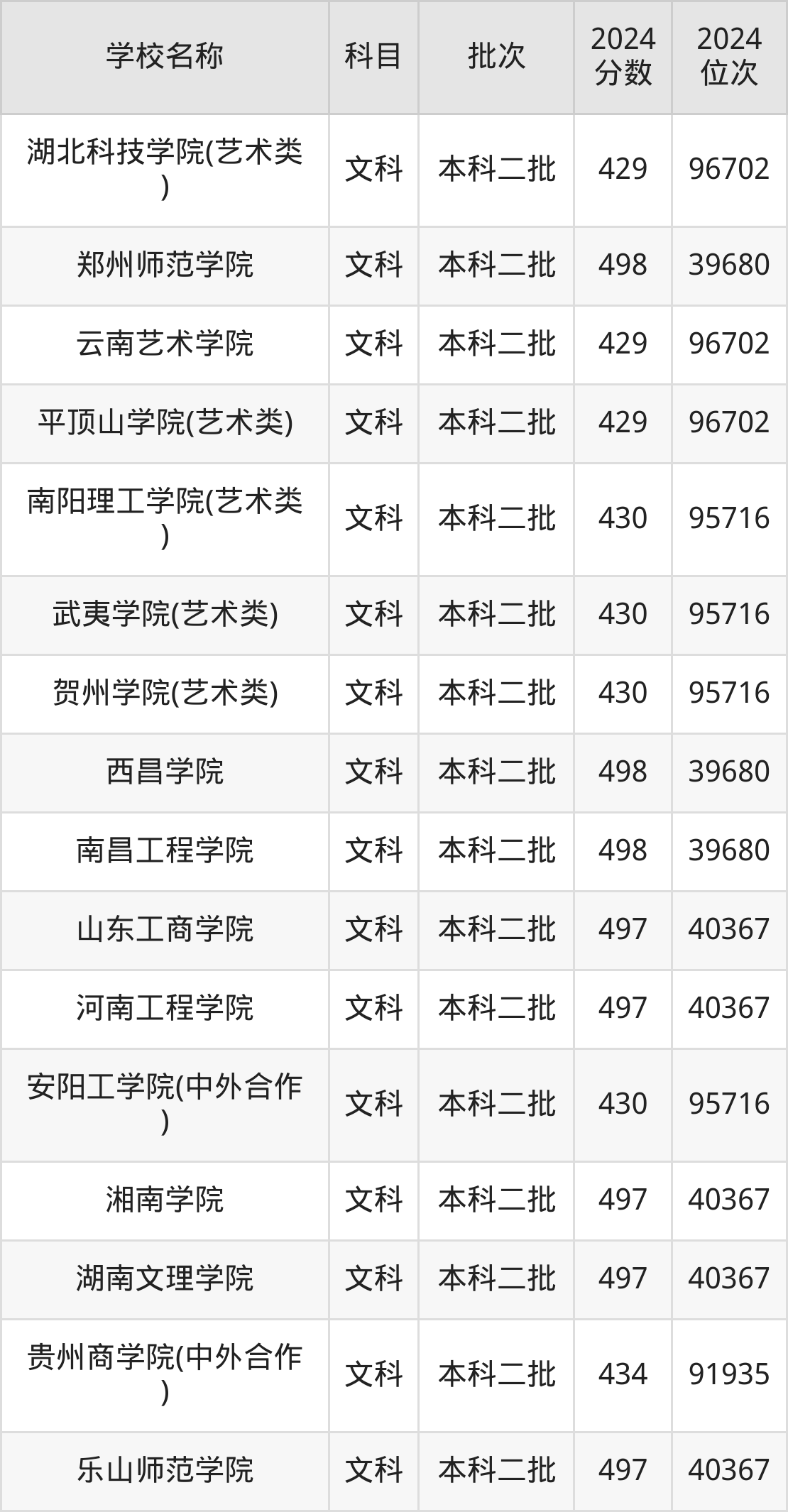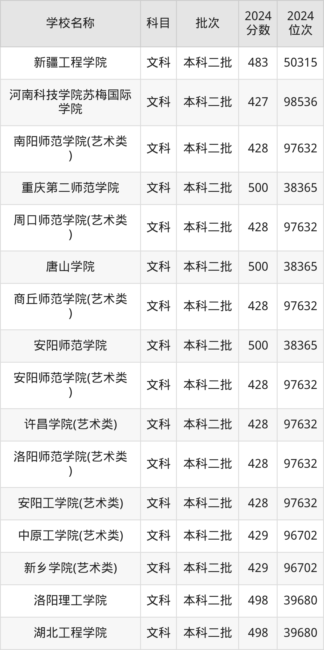 河南高考文科共有241所二本公办大学在400到500分之间录取,包含防灾科技学院、重庆第二师范学院、唐山学院、安阳师范学院、洛阳理工学院、湖北工程学院、郑州师范学院、西昌学院、南昌工程学院、山东工商学院。