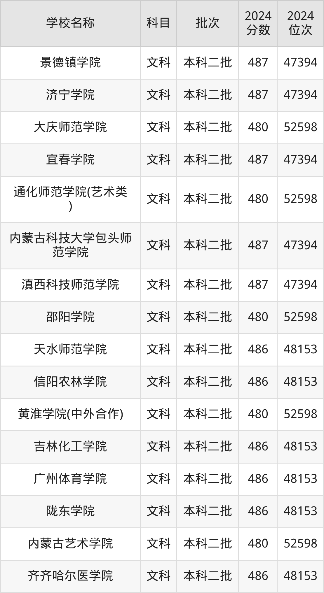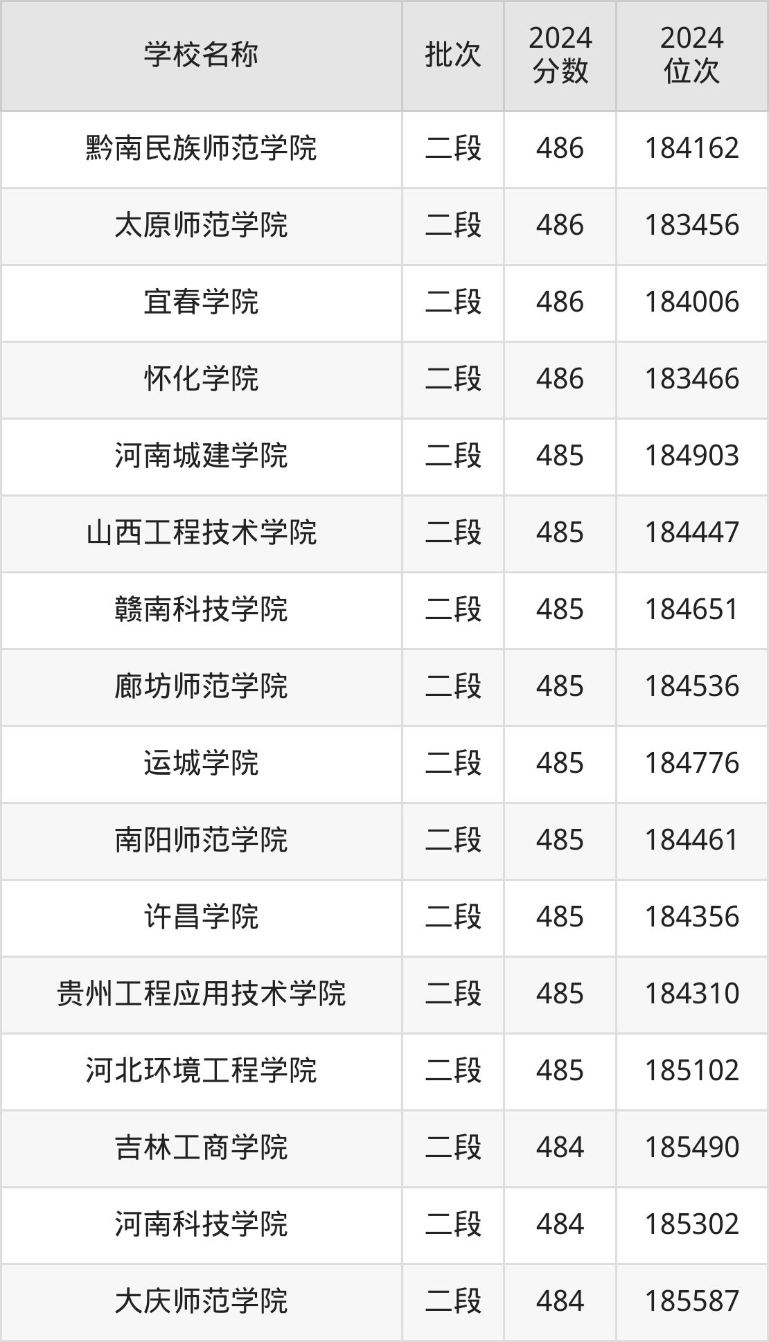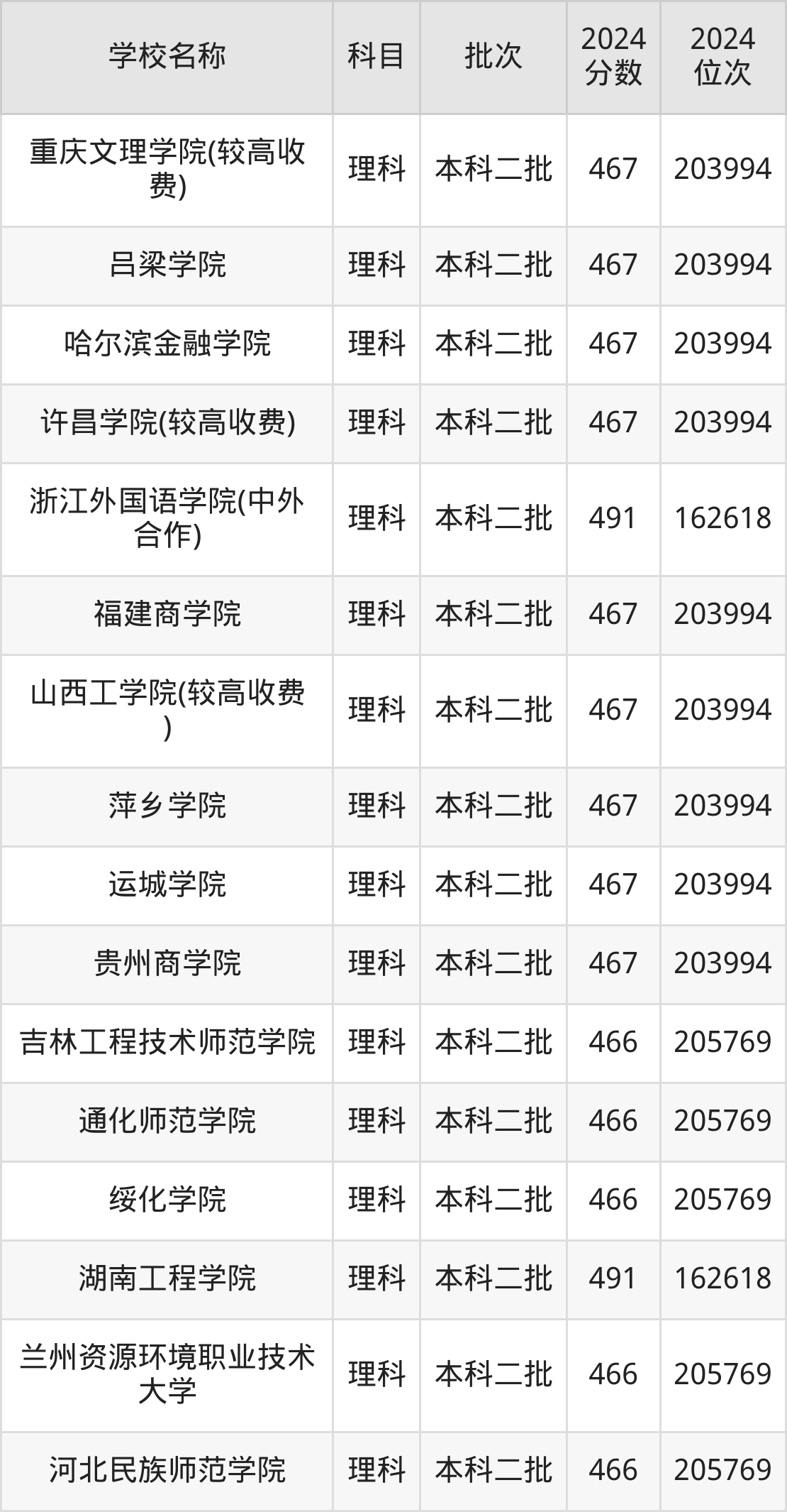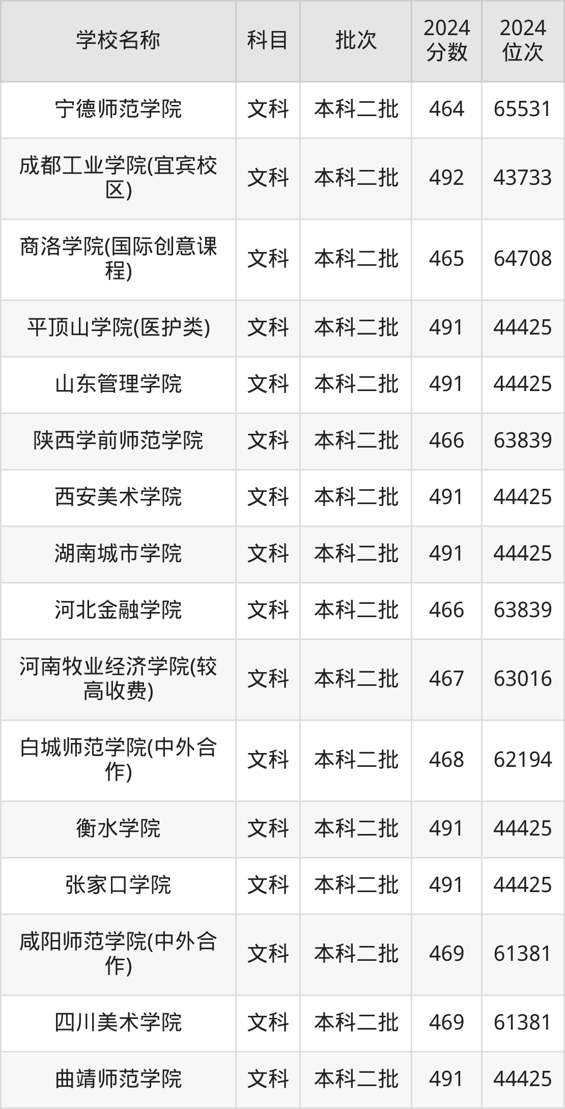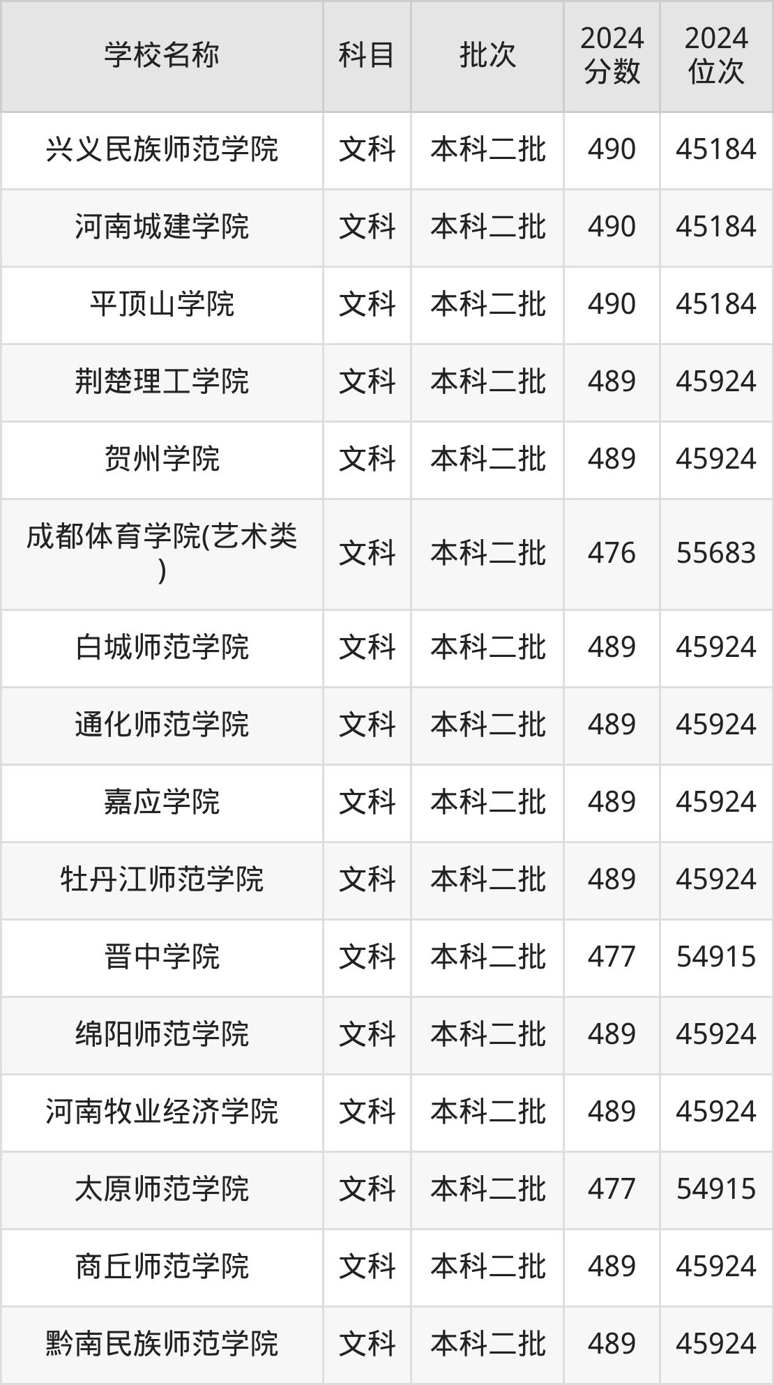 一、400到500分的二本公办大学最低分一览表