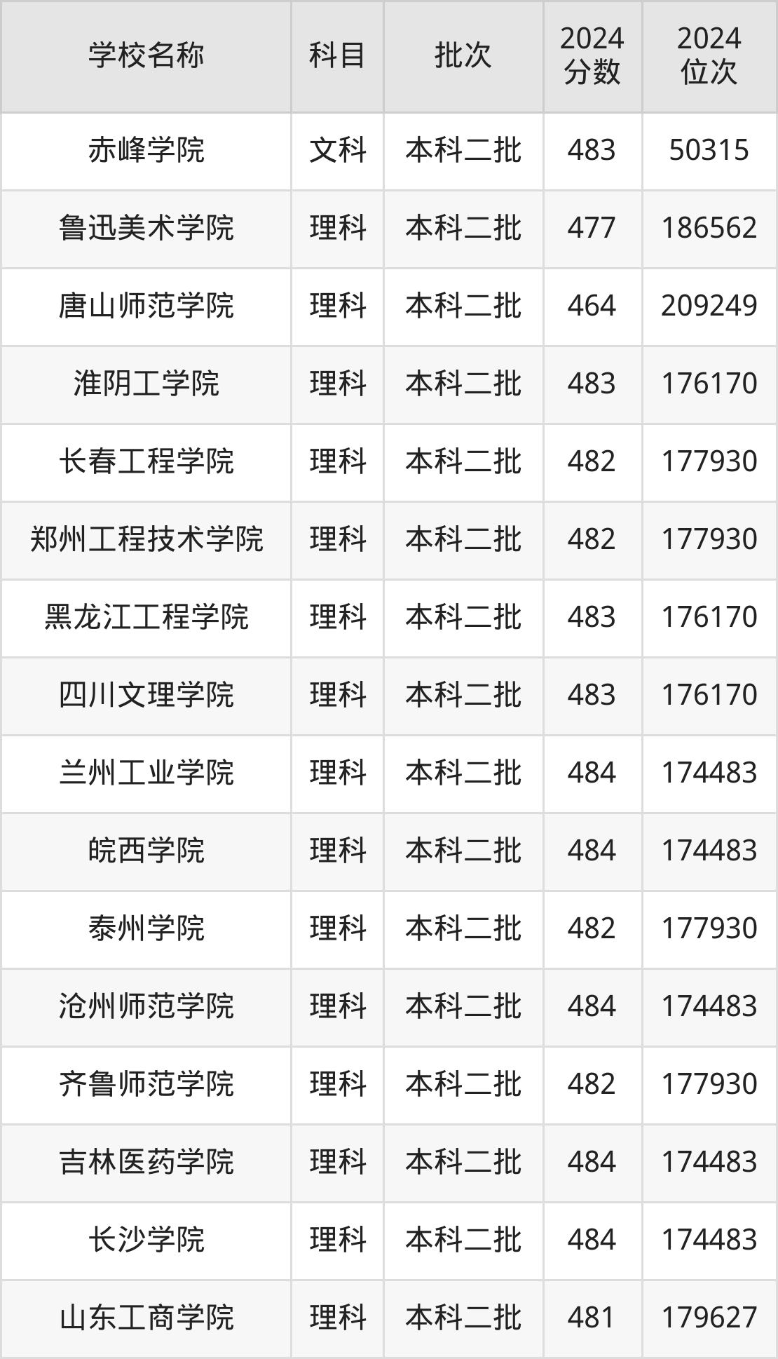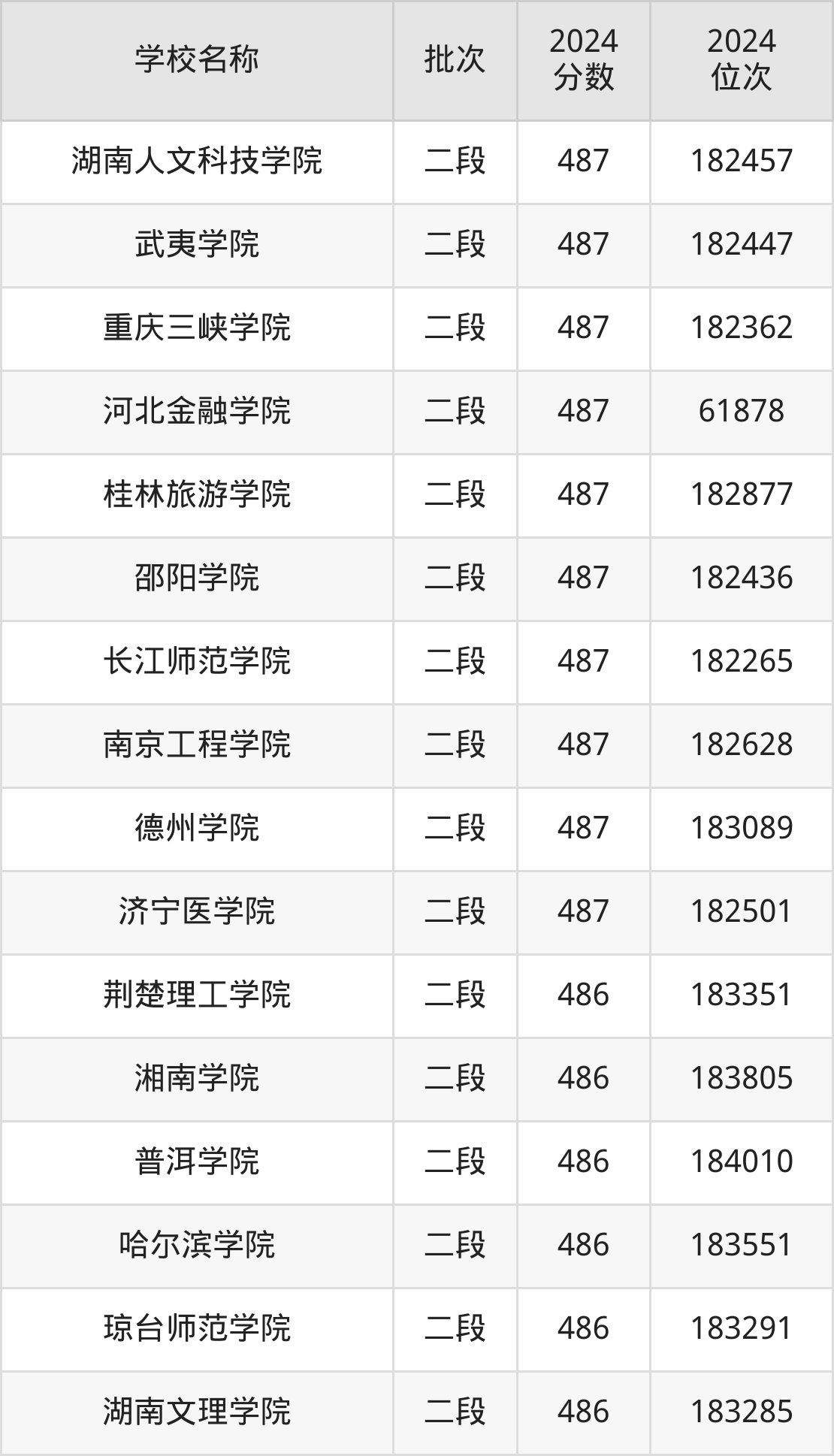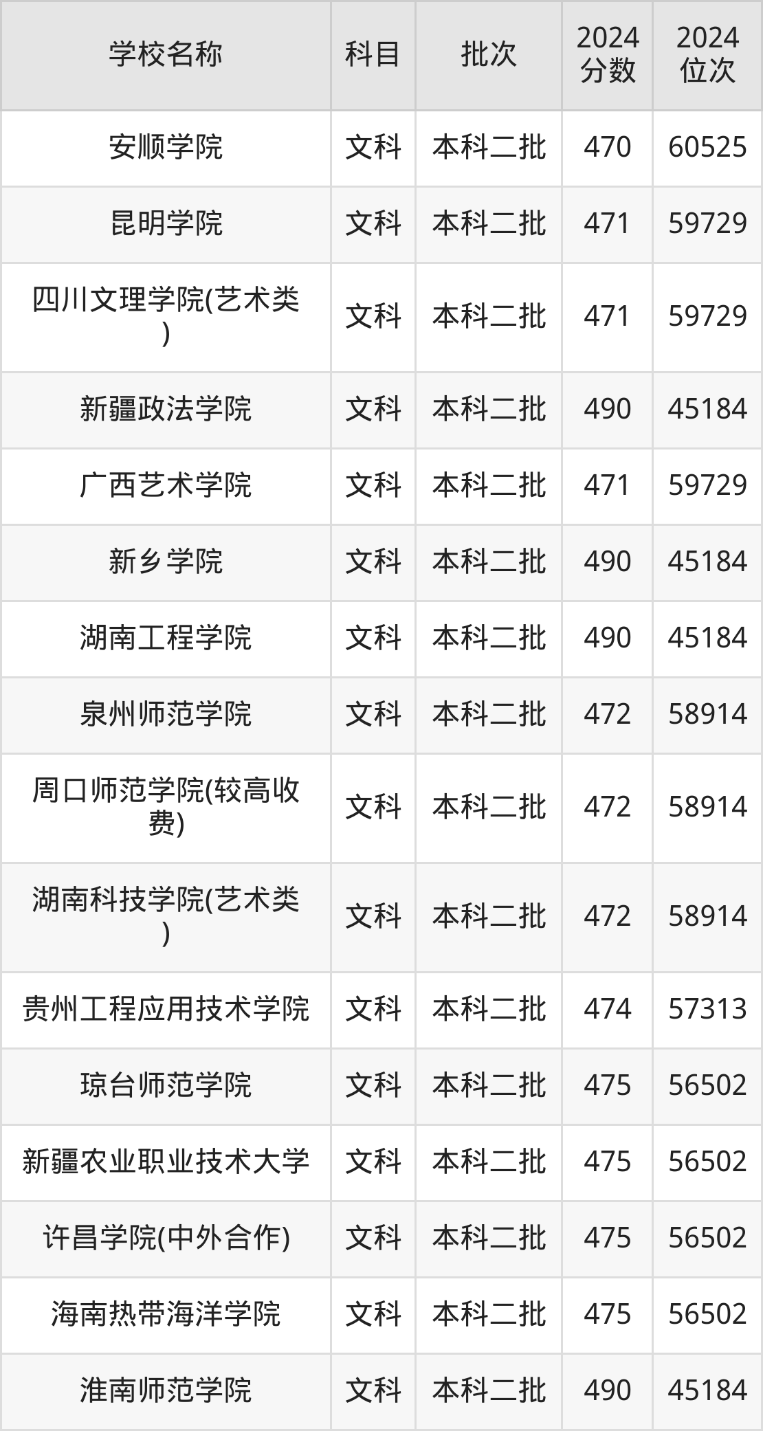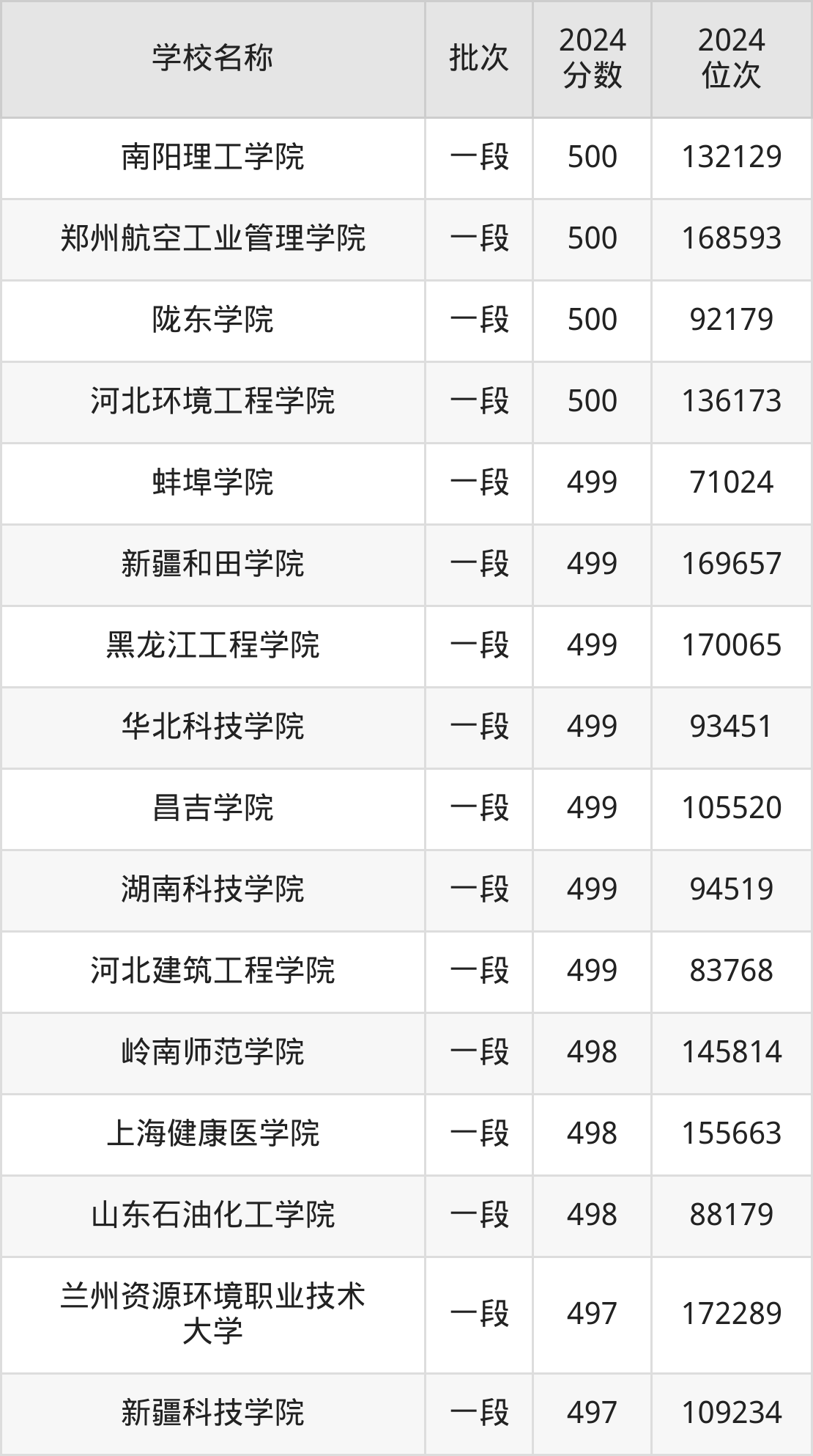 一、400到500分的二本公办大学最低分一览表