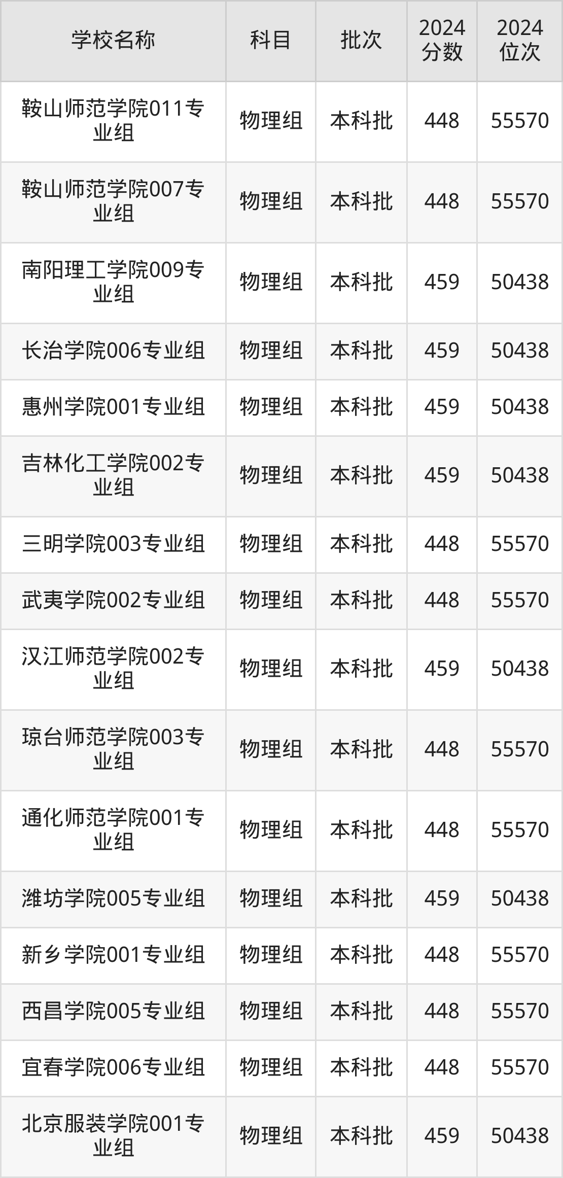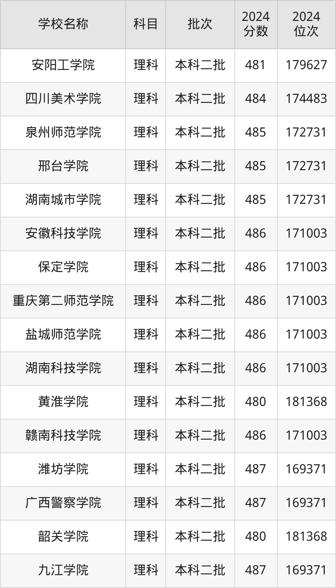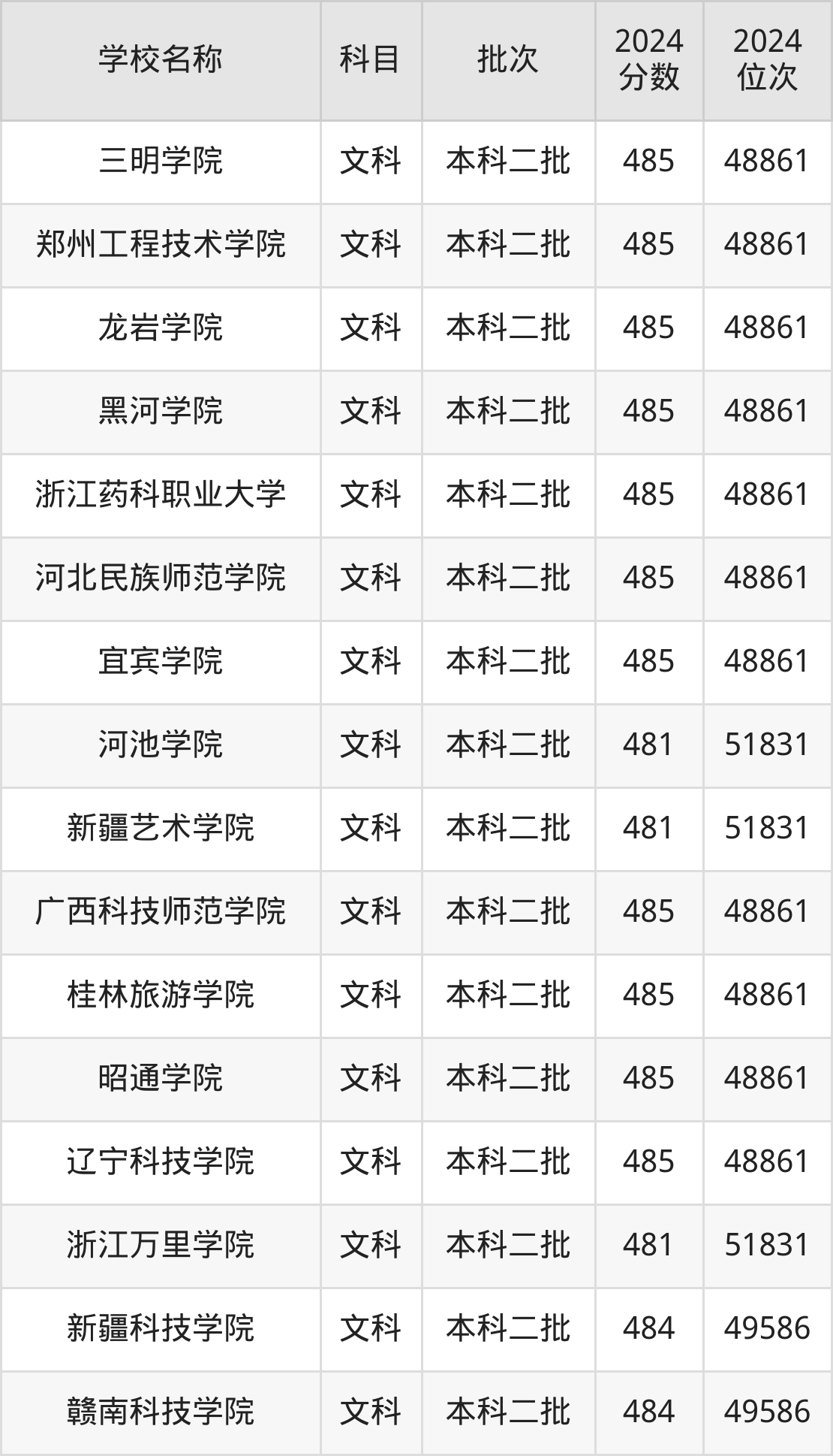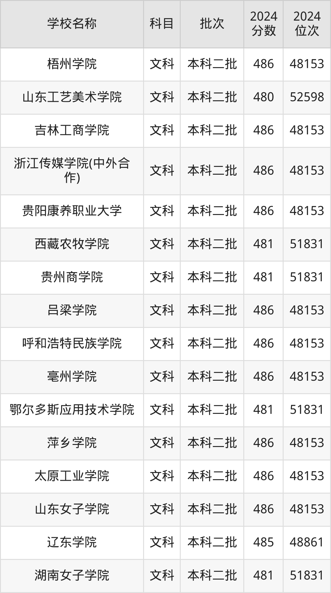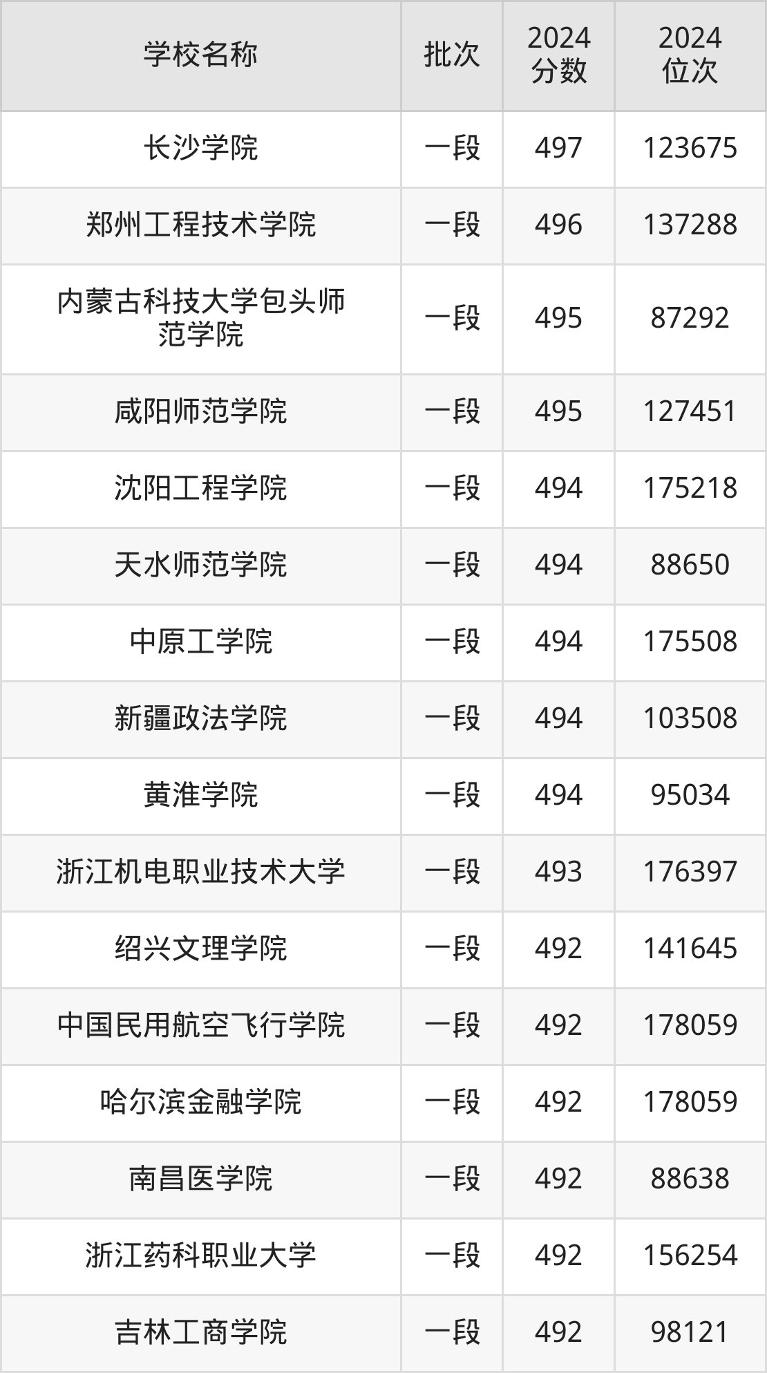 一、400到500分的二本公办大学最低分一览表