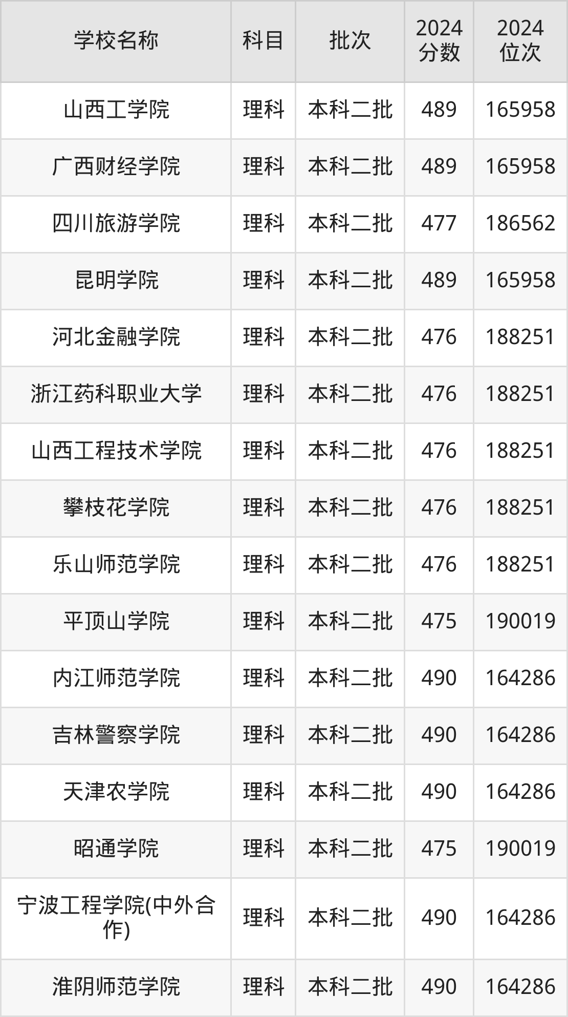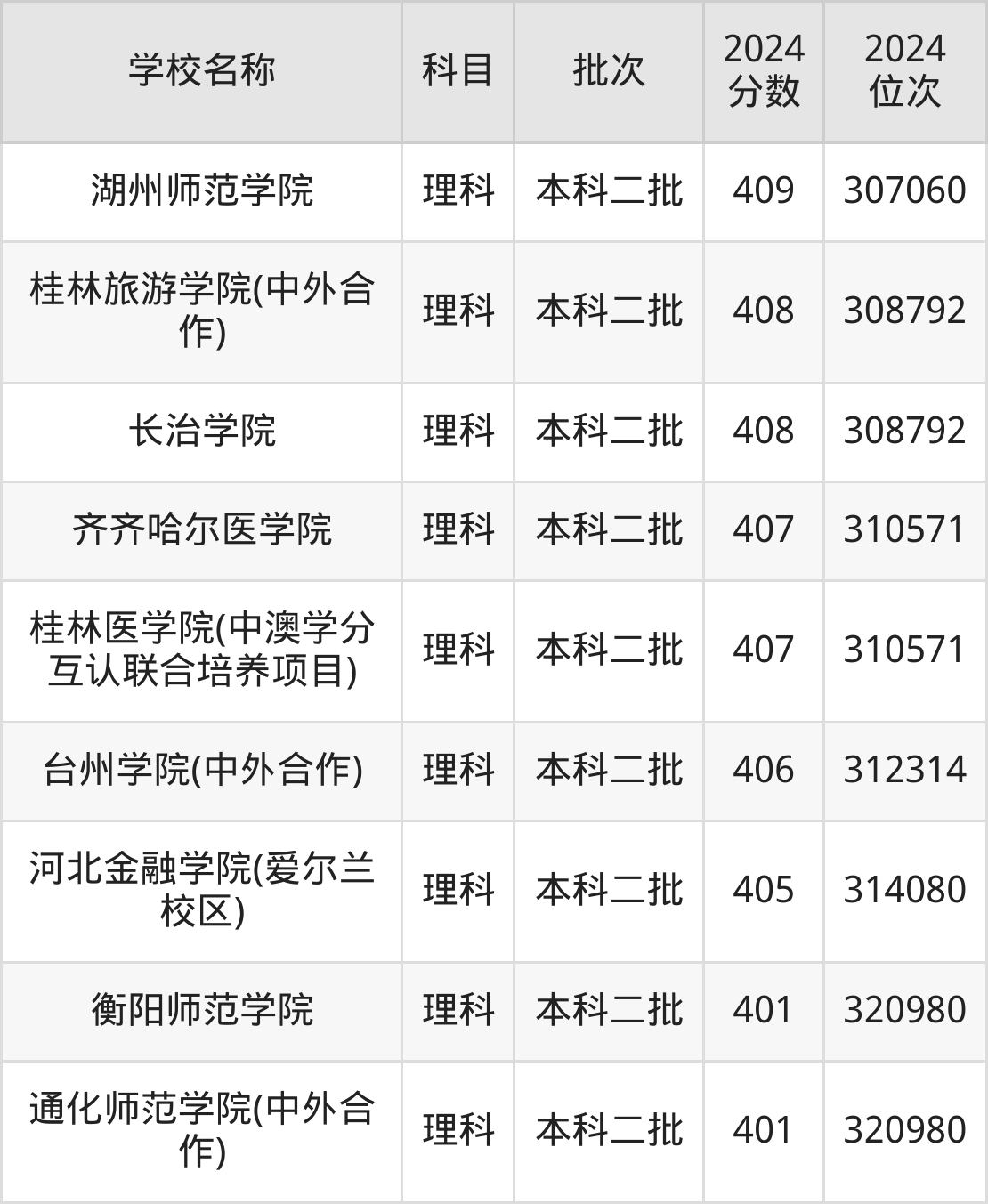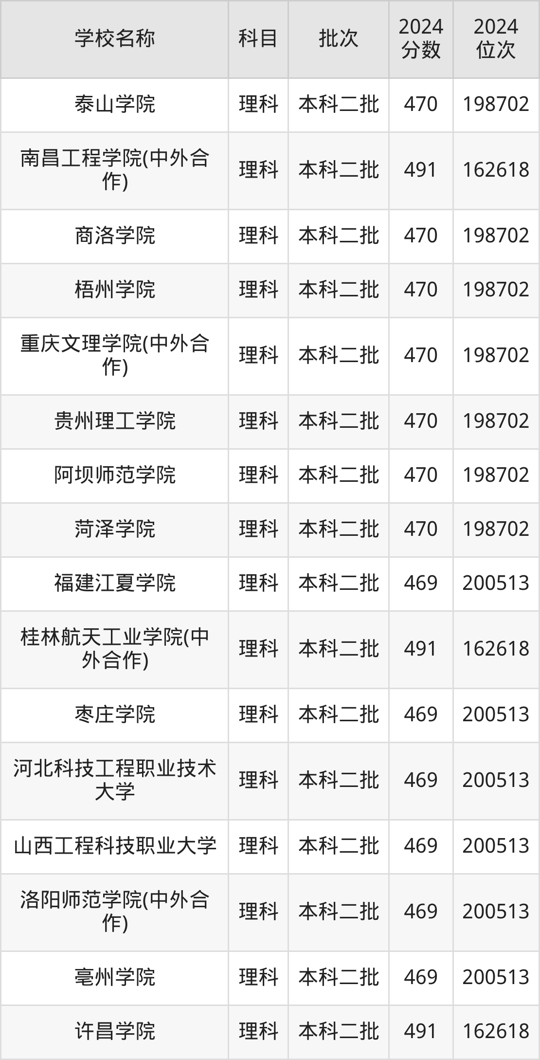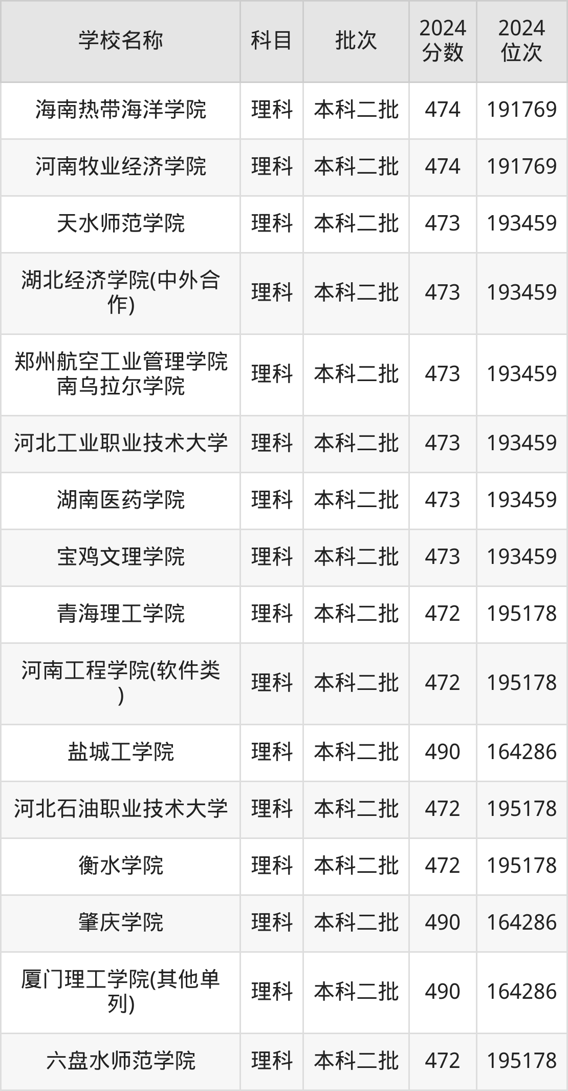 河南高考理科共有360所二本公办大学在400到500分之间录取,包含华北科技学院、浙江传媒学院、丽水学院、北华航天工业学院(其他单列)、桂林航天工业学院、北京服装学院、重庆文理学院、北华航天工业学院、河南理工大学(与平顶山工业职业技术学院联办)、山东交通学院。